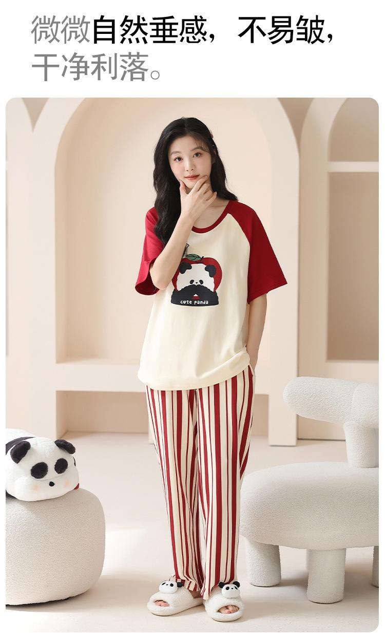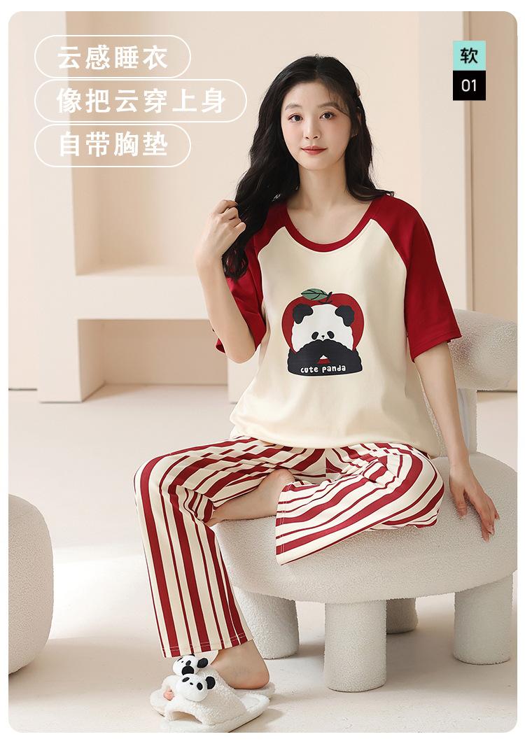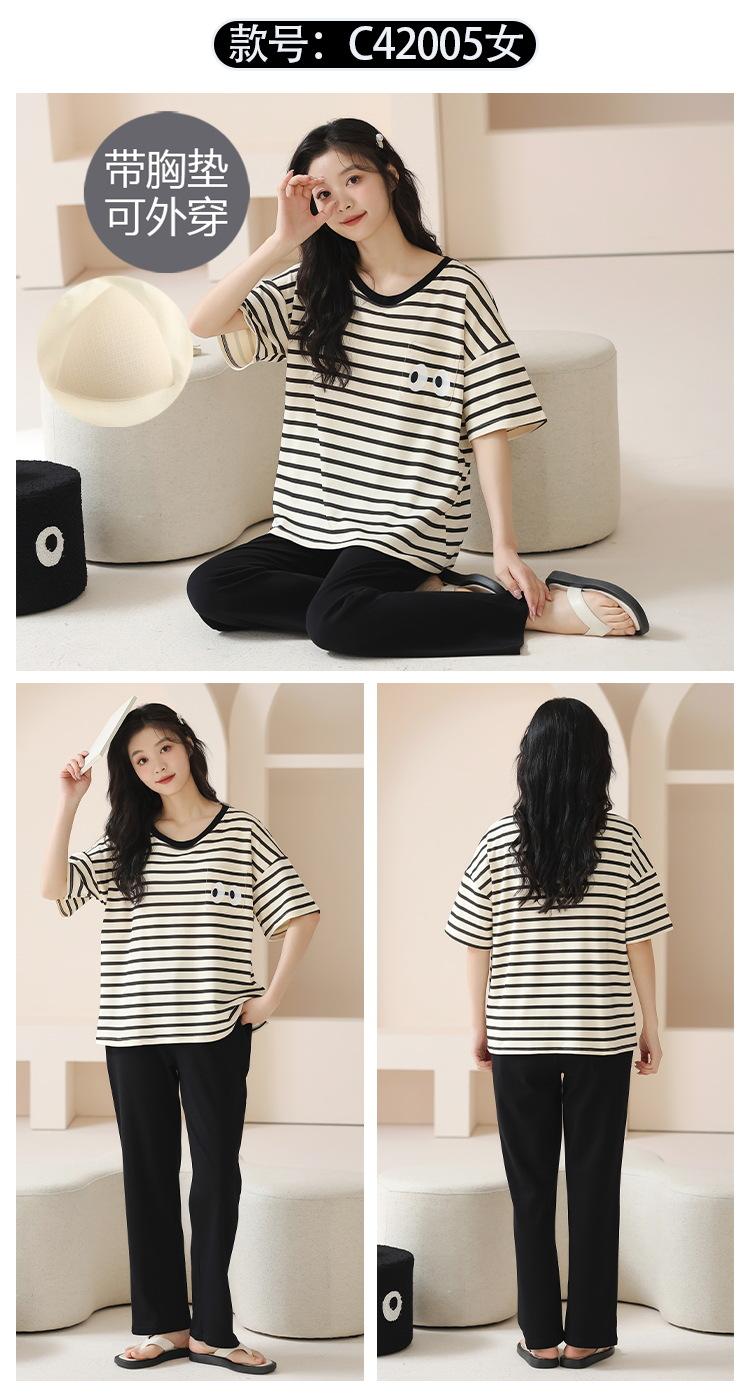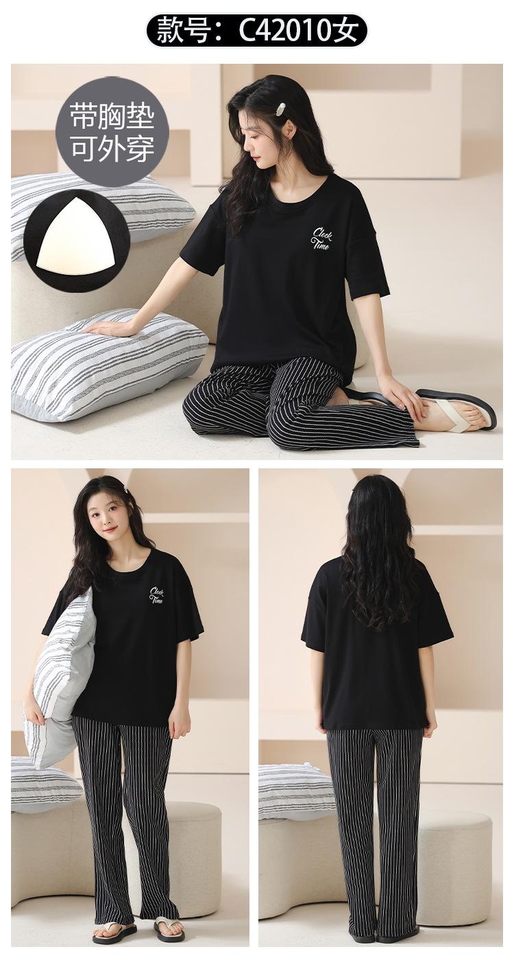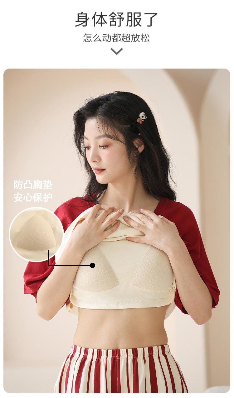 Pijama de verano con almohadilla para el pecho para mujer, de verano, de algodón puro, de manga corta, para mujer, ropa de hogar suave y profesional, primavera y otoño.