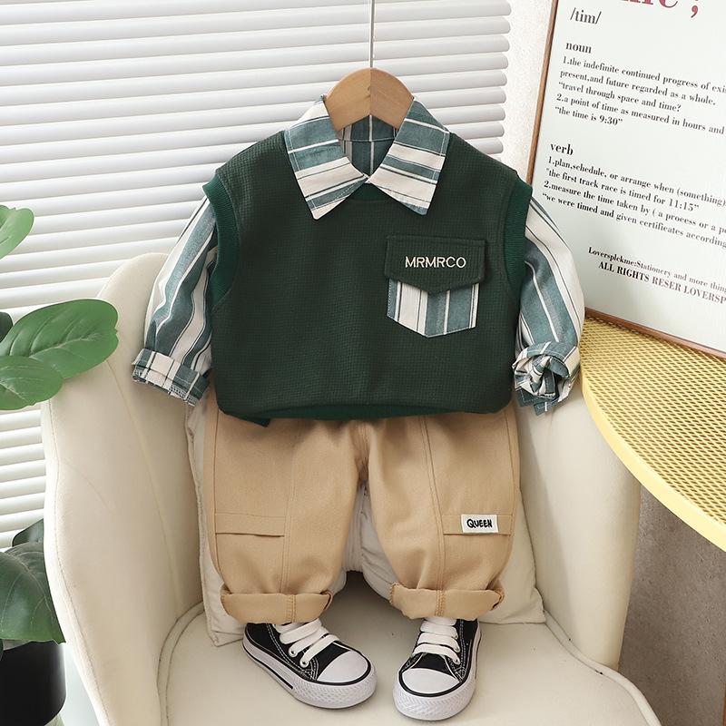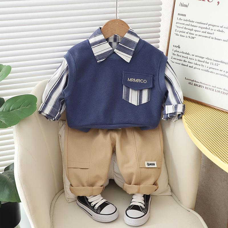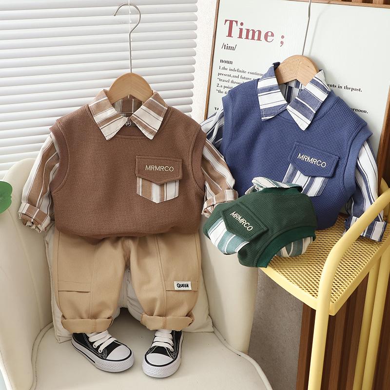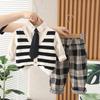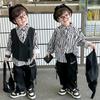 Traje de otoño para niño 2023, nueva camisa para niño, chaleco puro, traje de tres piezas, estilo británico, ropa para bebé y niño, moda