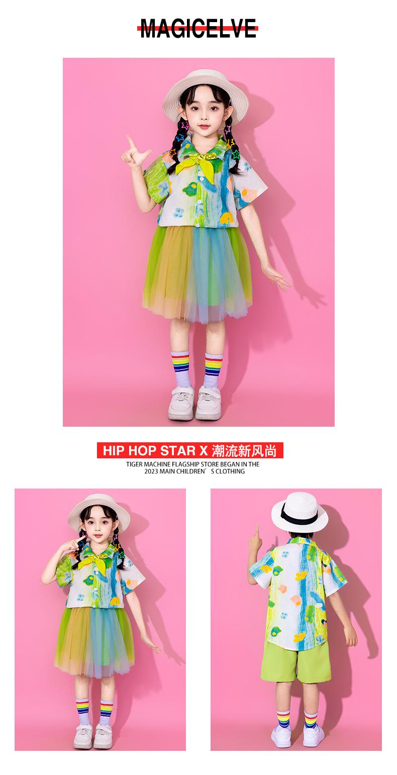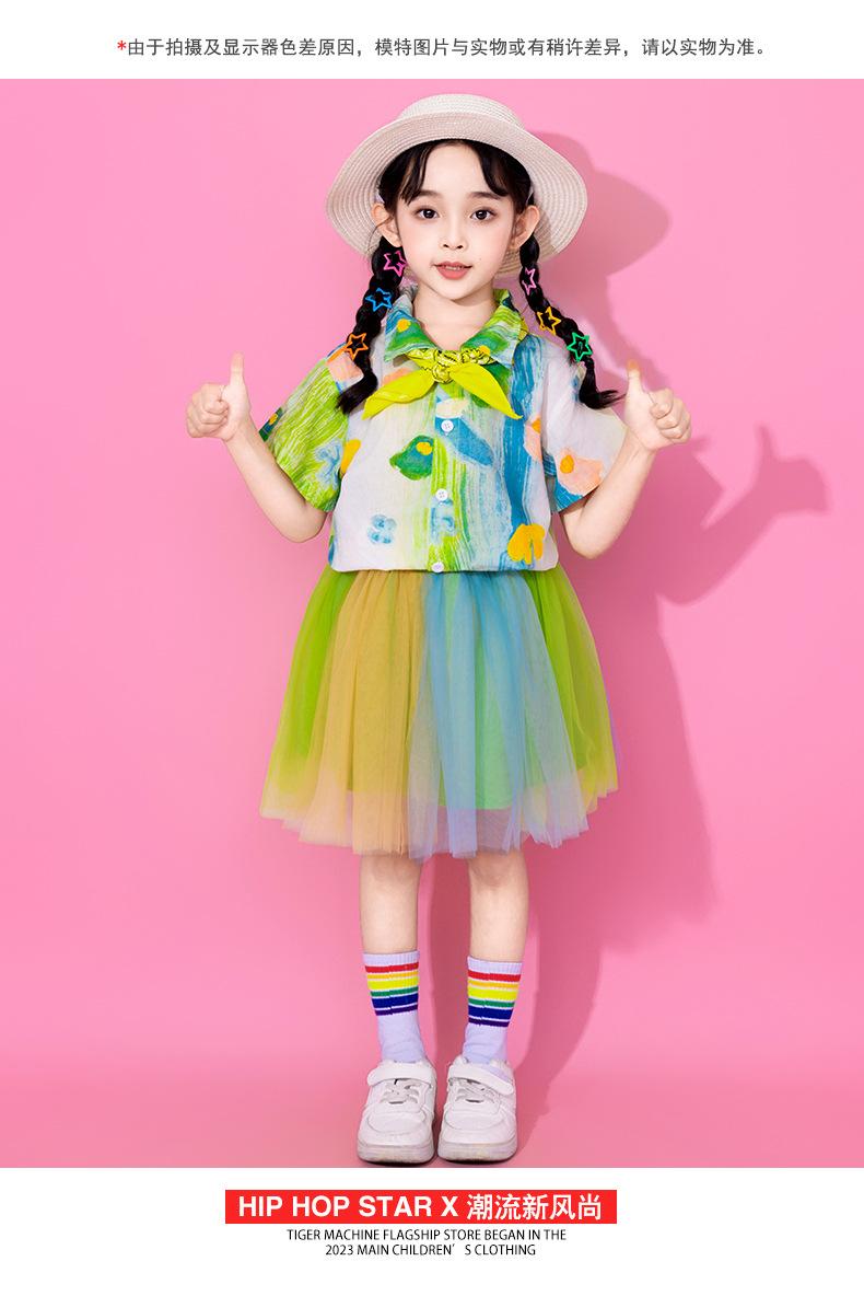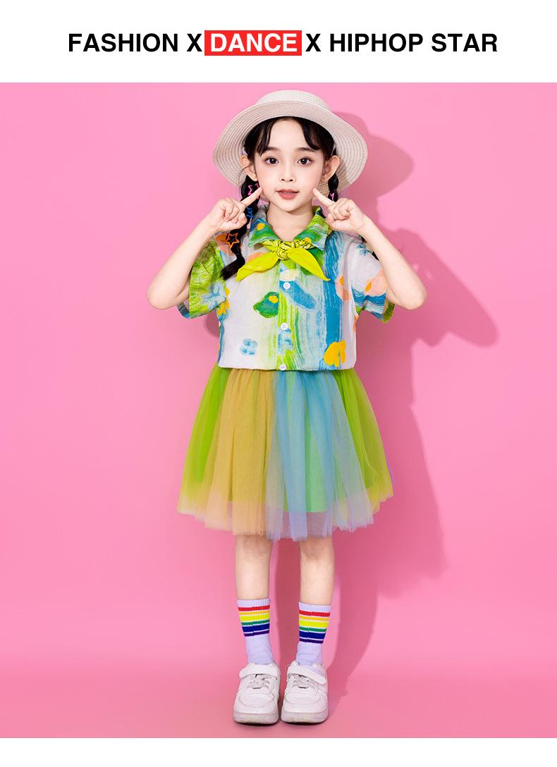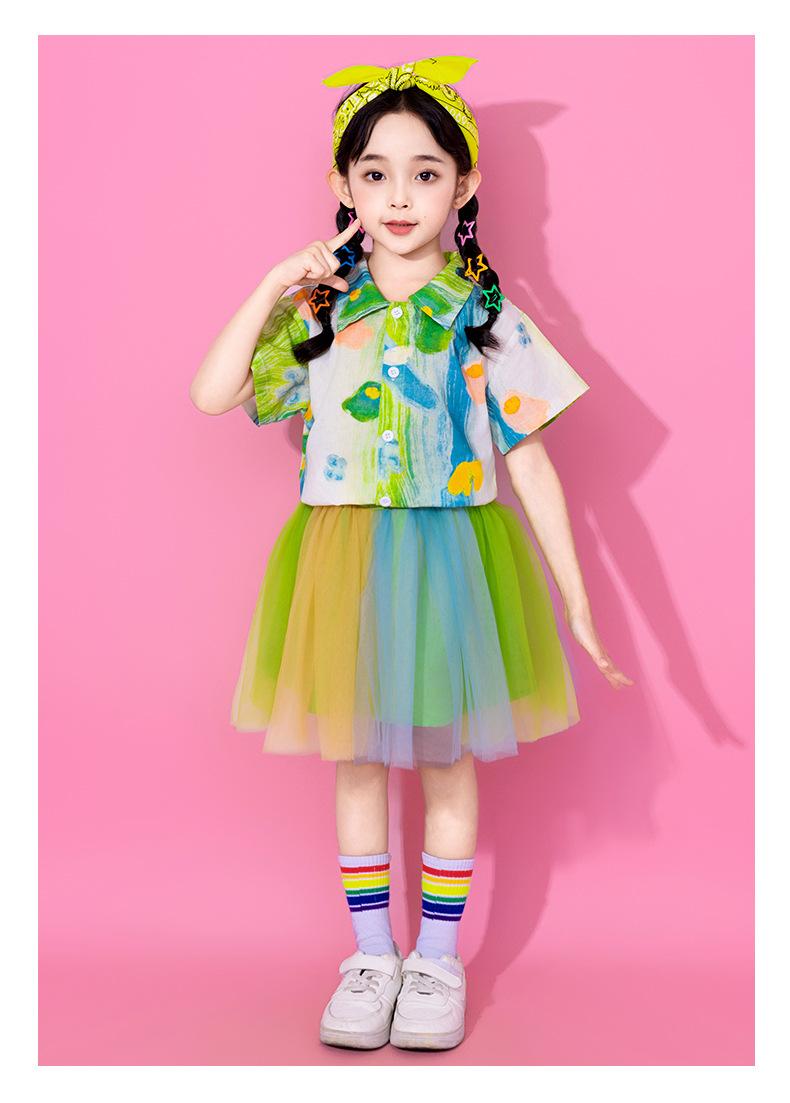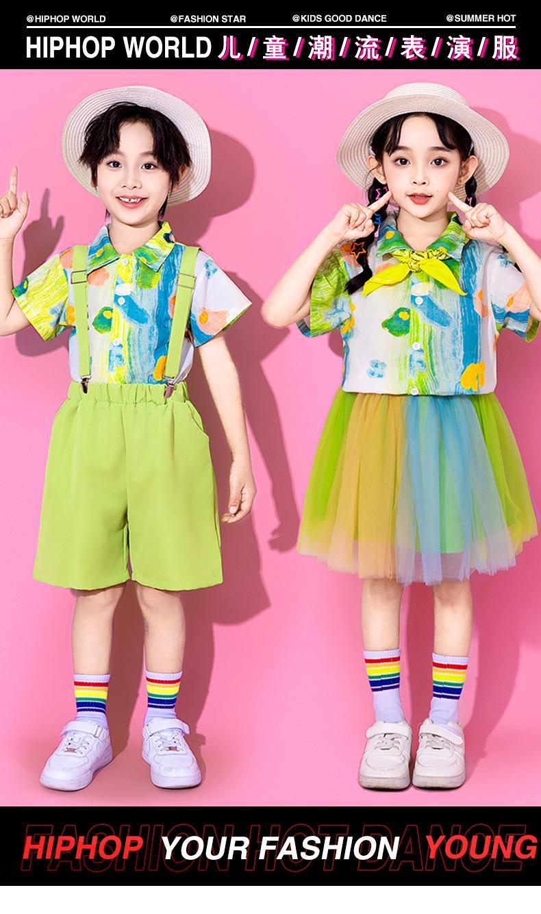 One-Piece A497 Green Shirt, A496 green detachable suspenders, B299 color gauze skirt, A497 green shirt A496 gr...