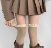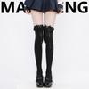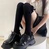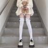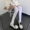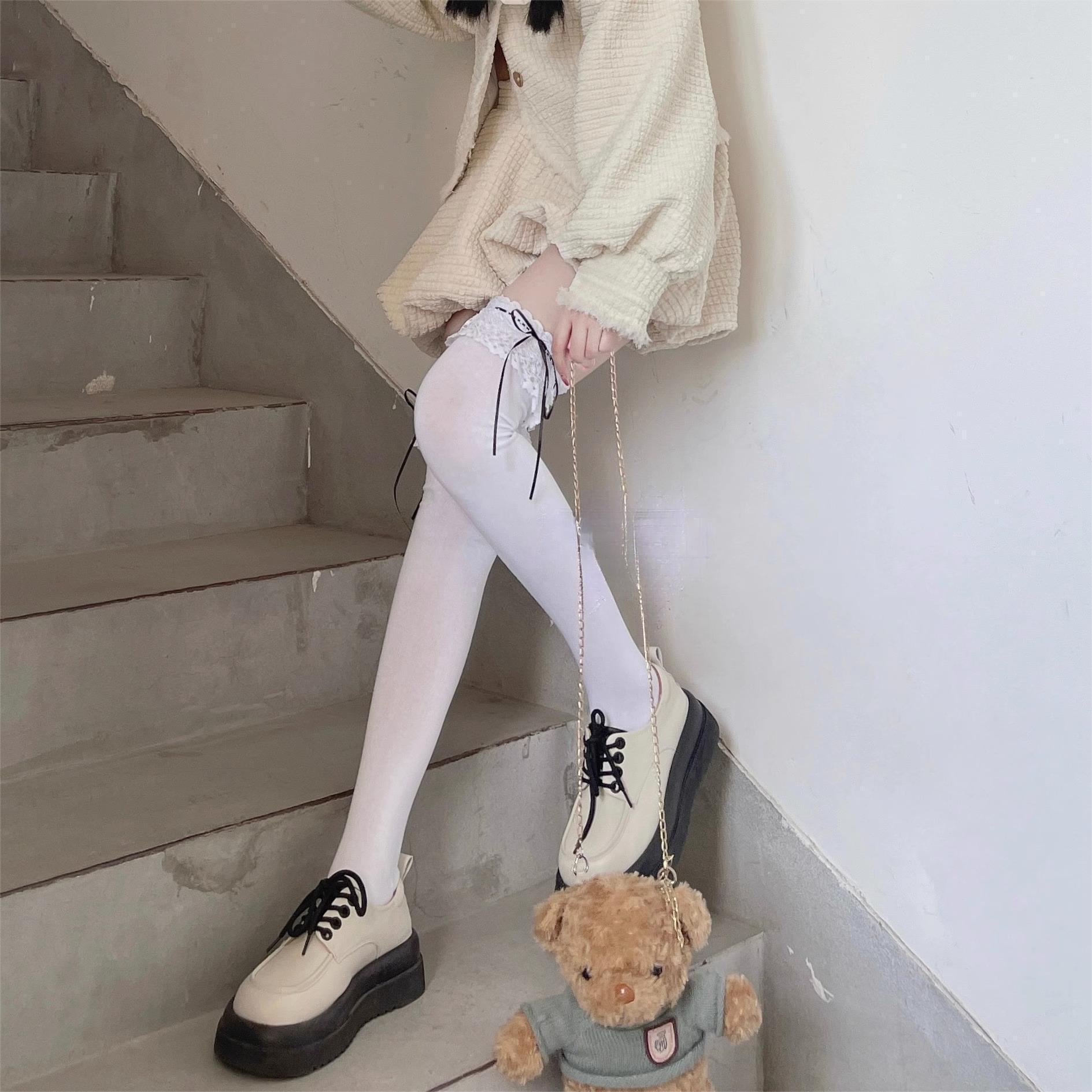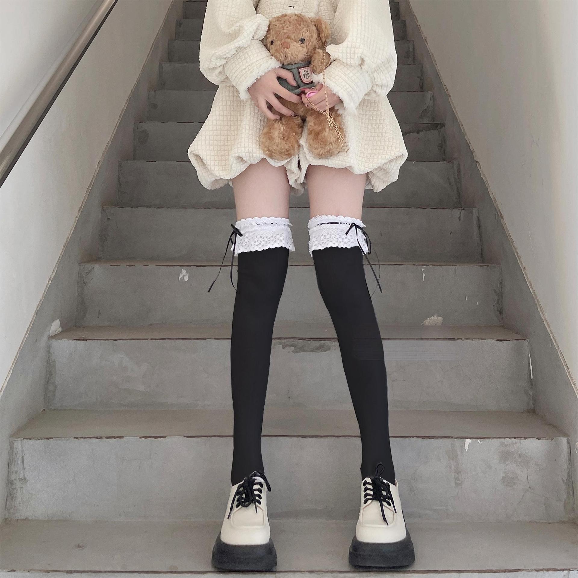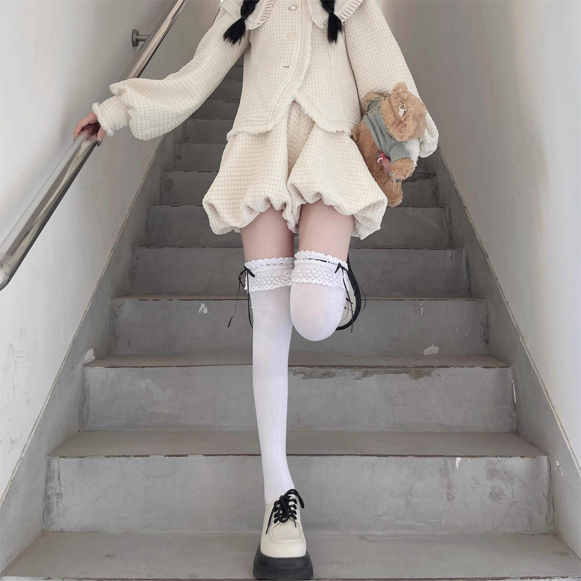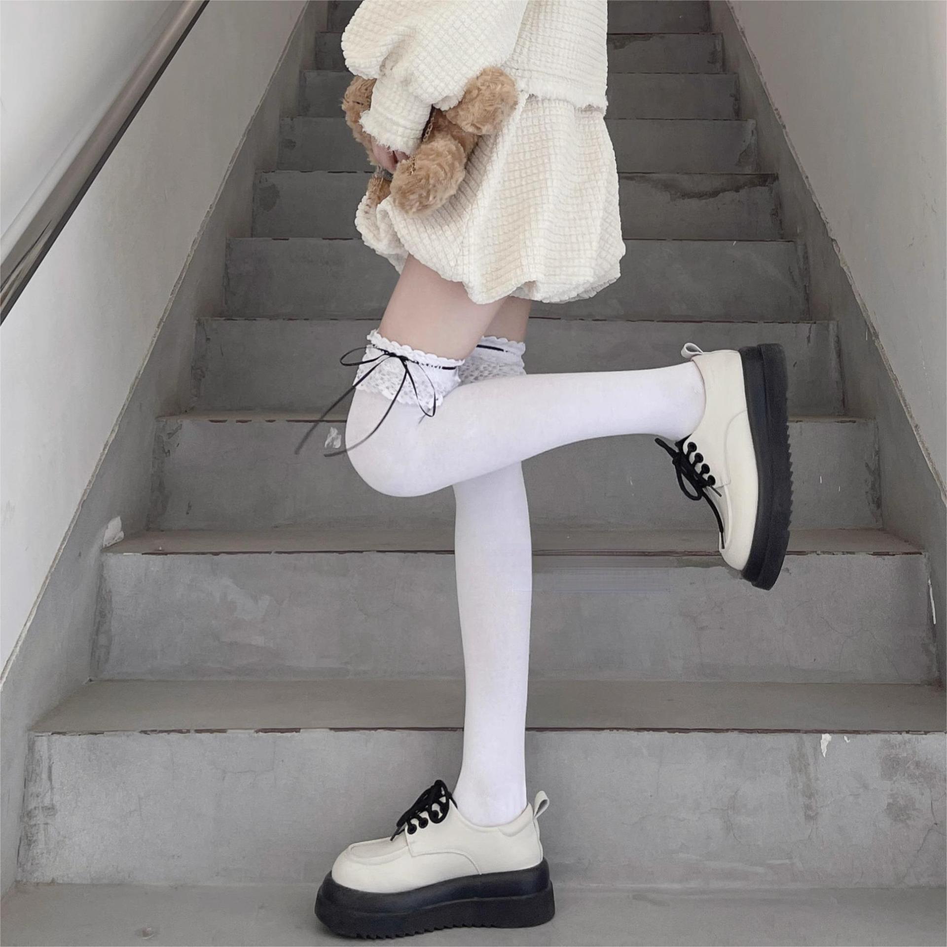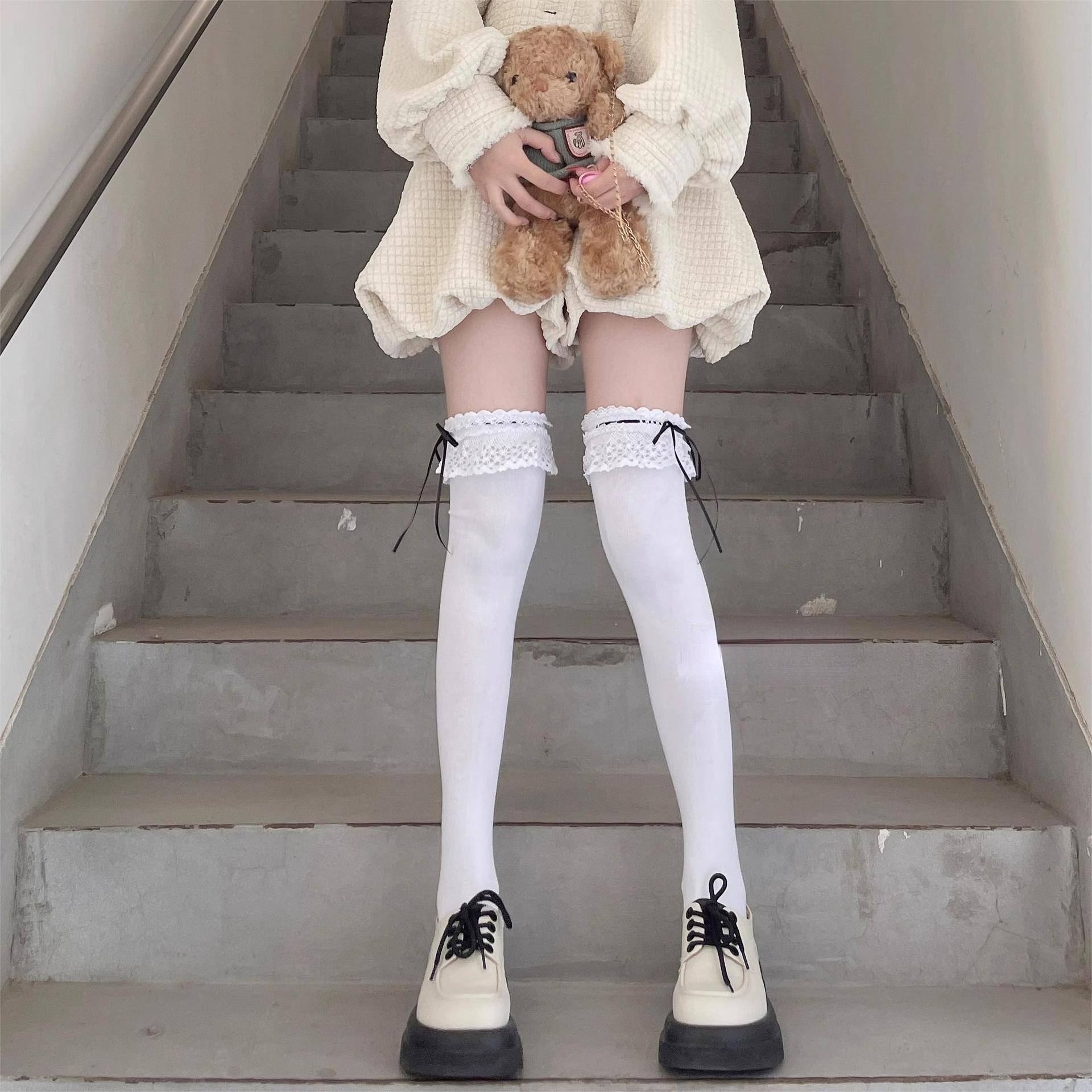 Calcetines de encaje por encima de la rodilla para mujer, de algodón blanco, para otoño e invierno, estilo Lolita, japoneses, con tiras de lazo JK.