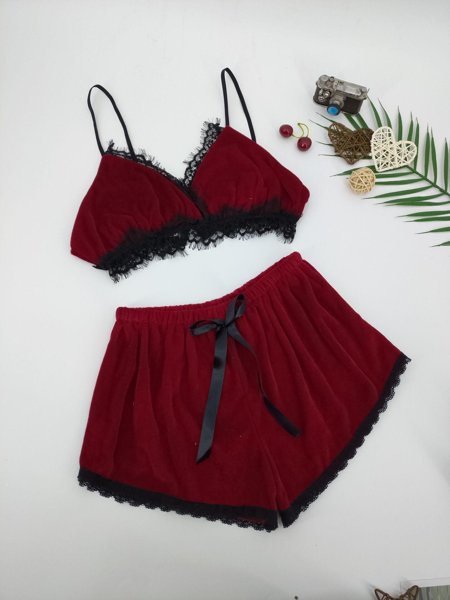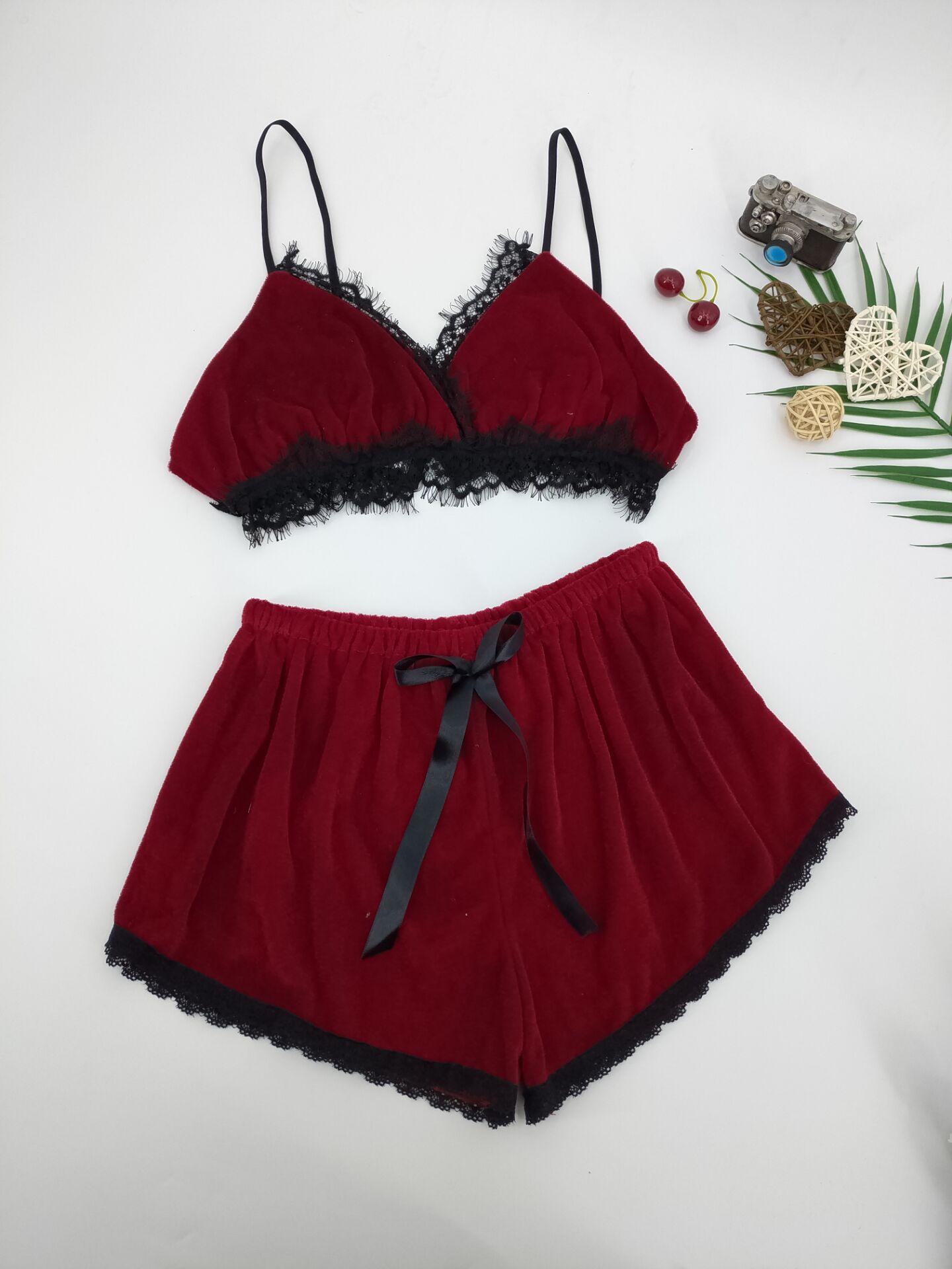 Conjunto de lencería sexy de comercio exterior para mujer, lencería sexy de encaje dividido de tres puntos, novedad de 2019