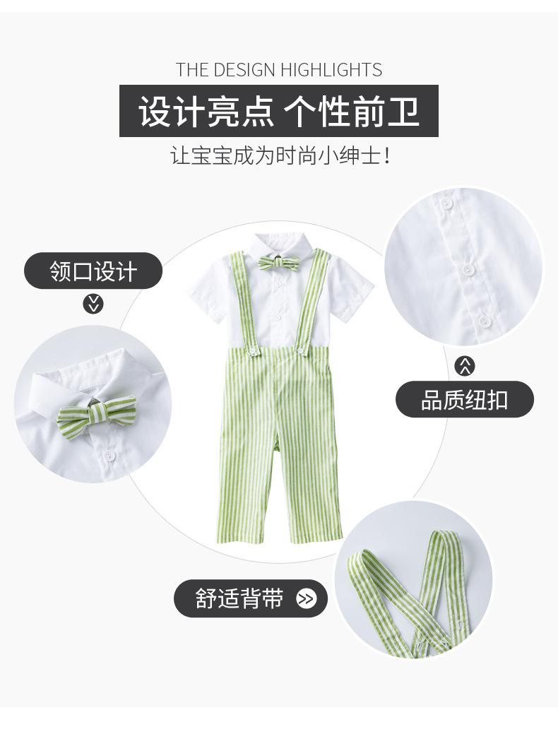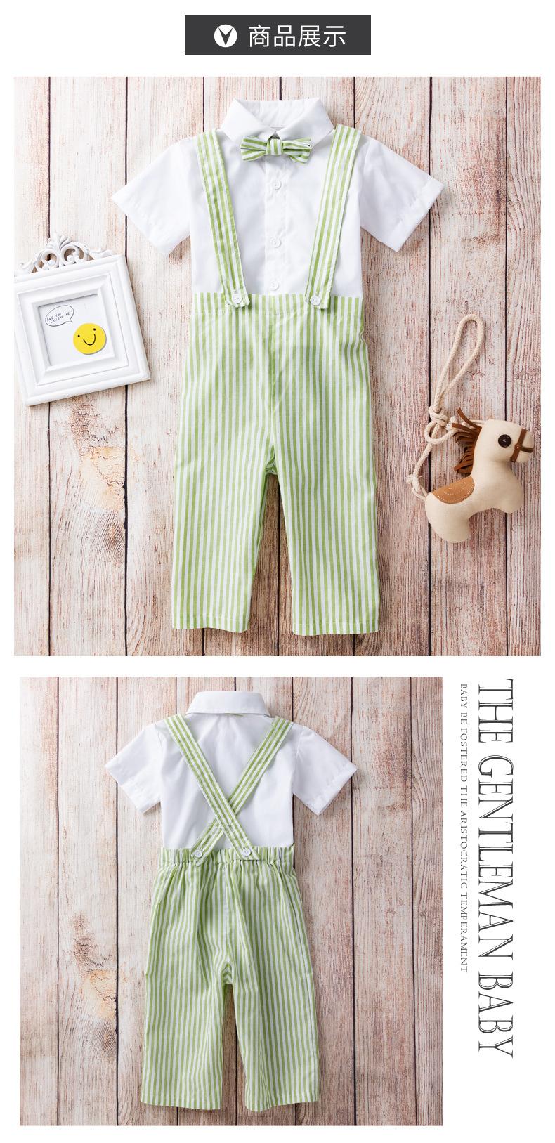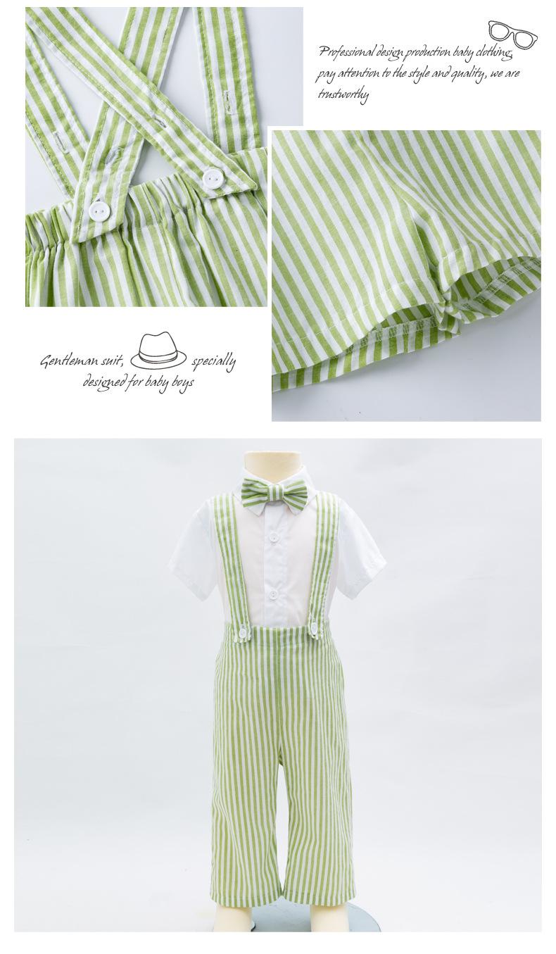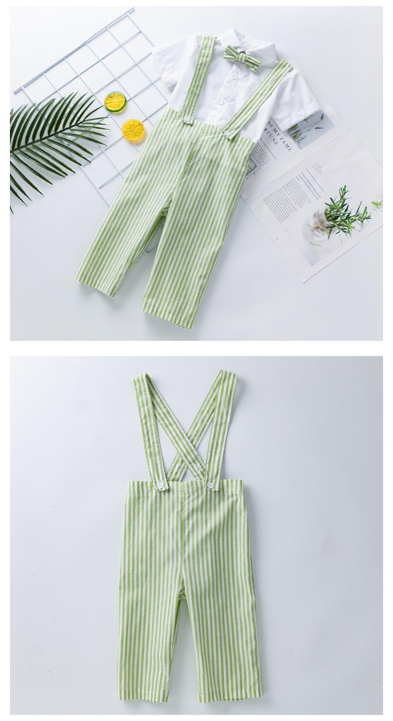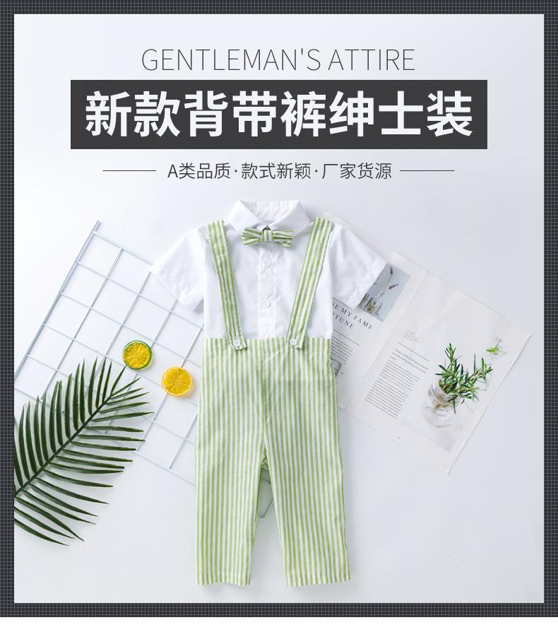 Comercio Exterior Lote Caliente Verano Estilo Coreano Traje para Niños Bebé Caballero Camiseta Pantalones con Tirantes Estilo Fresco Pequeño Ropa de Caballero para Niño Moderna