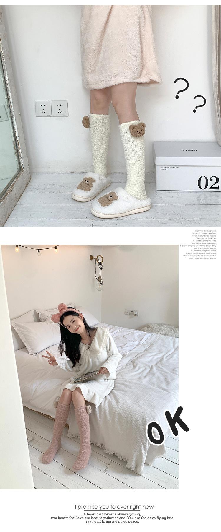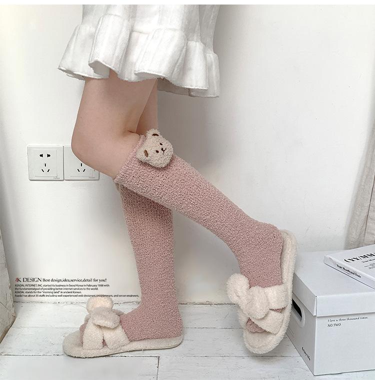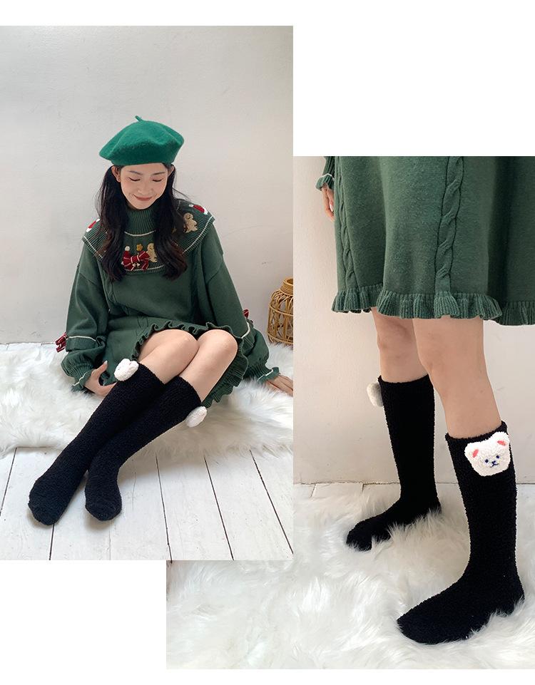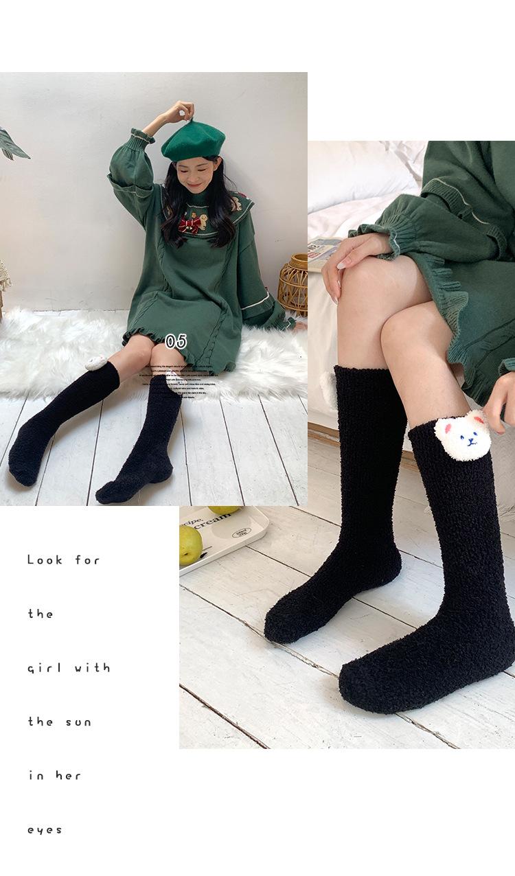 Calcetines de terciopelo coral, calcetines de pantorrilla gruesos hasta media pantorrilla para mujer, calcetines de invierno gruesos con forro polar para dormir en casa.