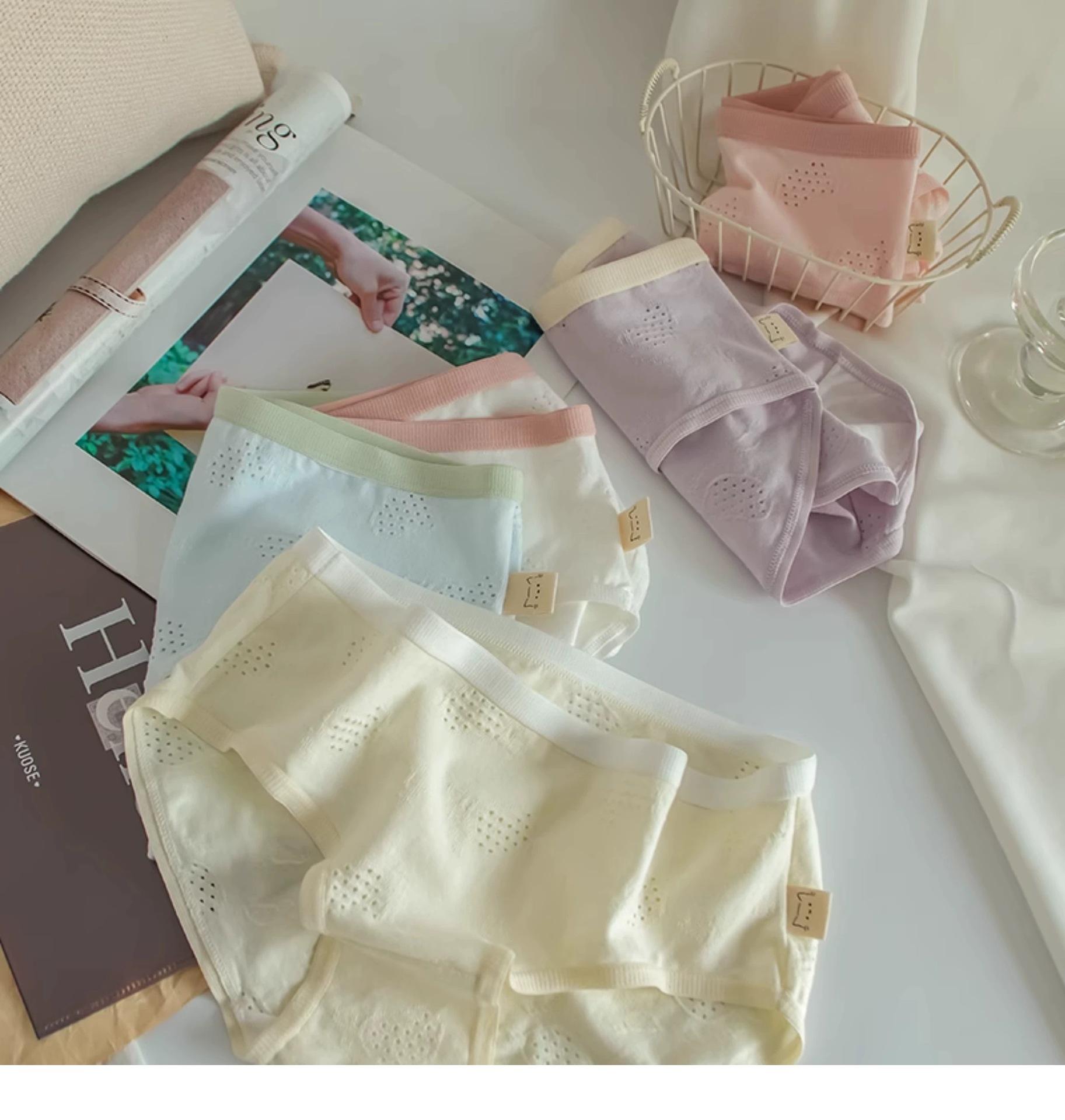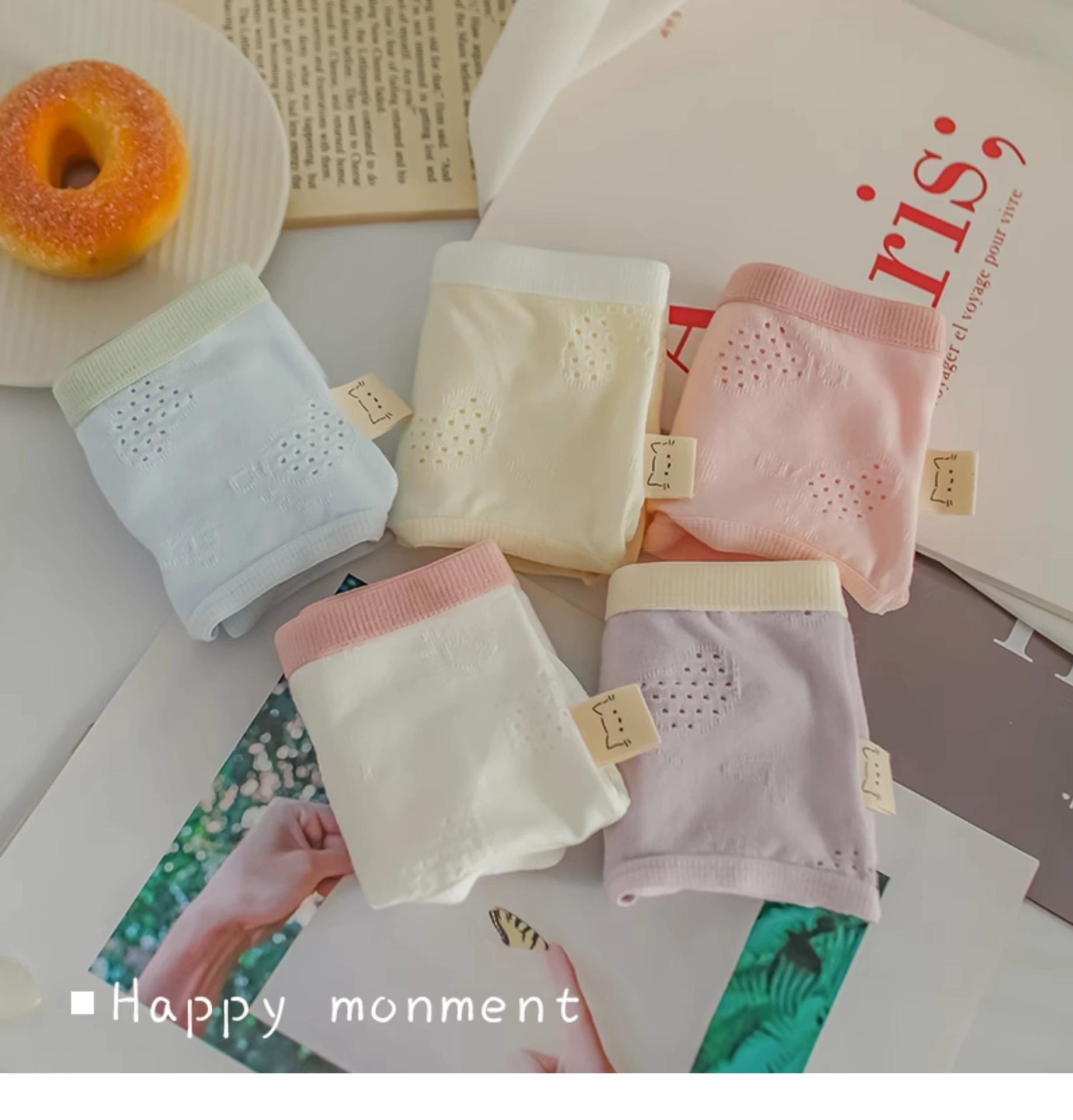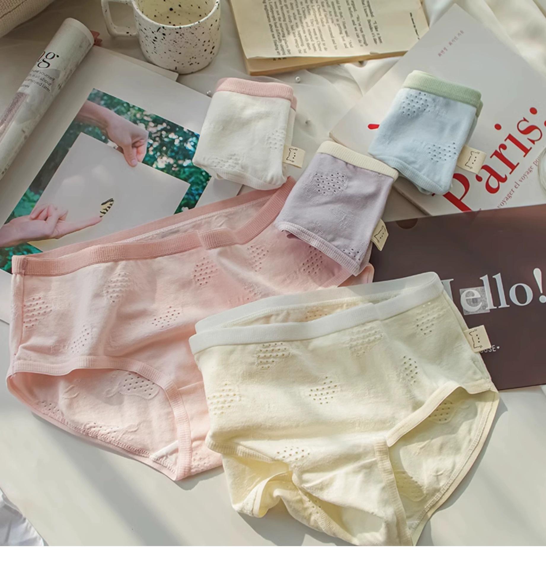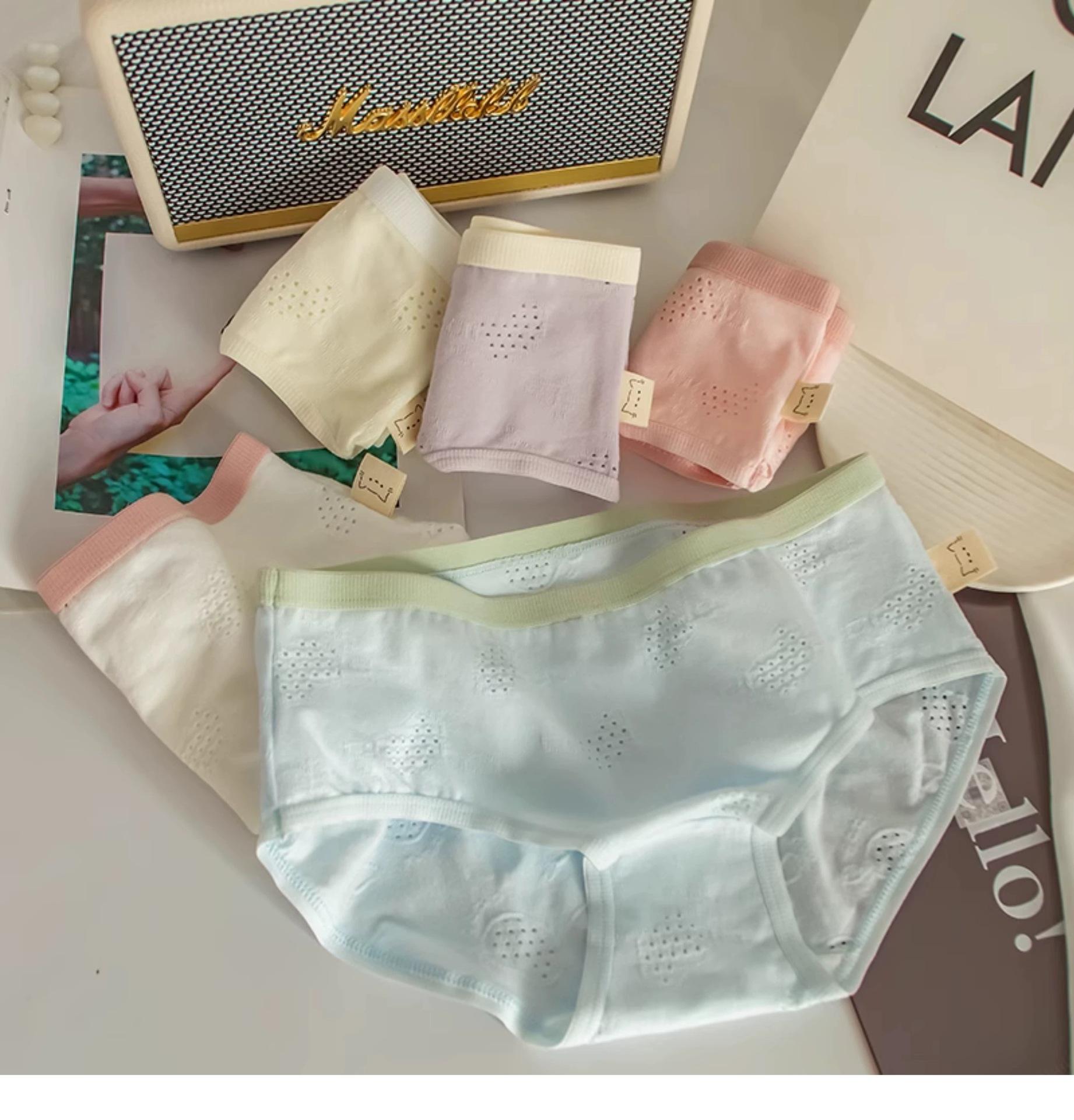 Ropa interior para mujer Clase A Algodón para bebé color crema algodón puro antibacteriano color sólido simple chica japonesa Dulce Hueco estudiante