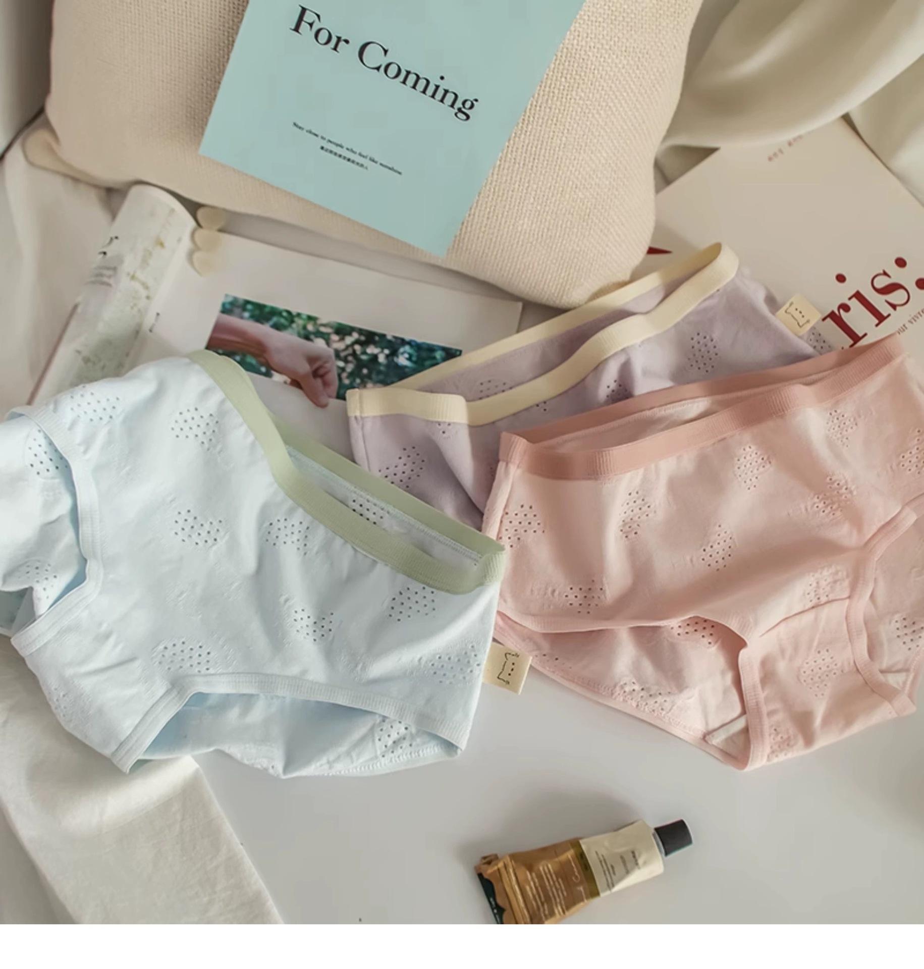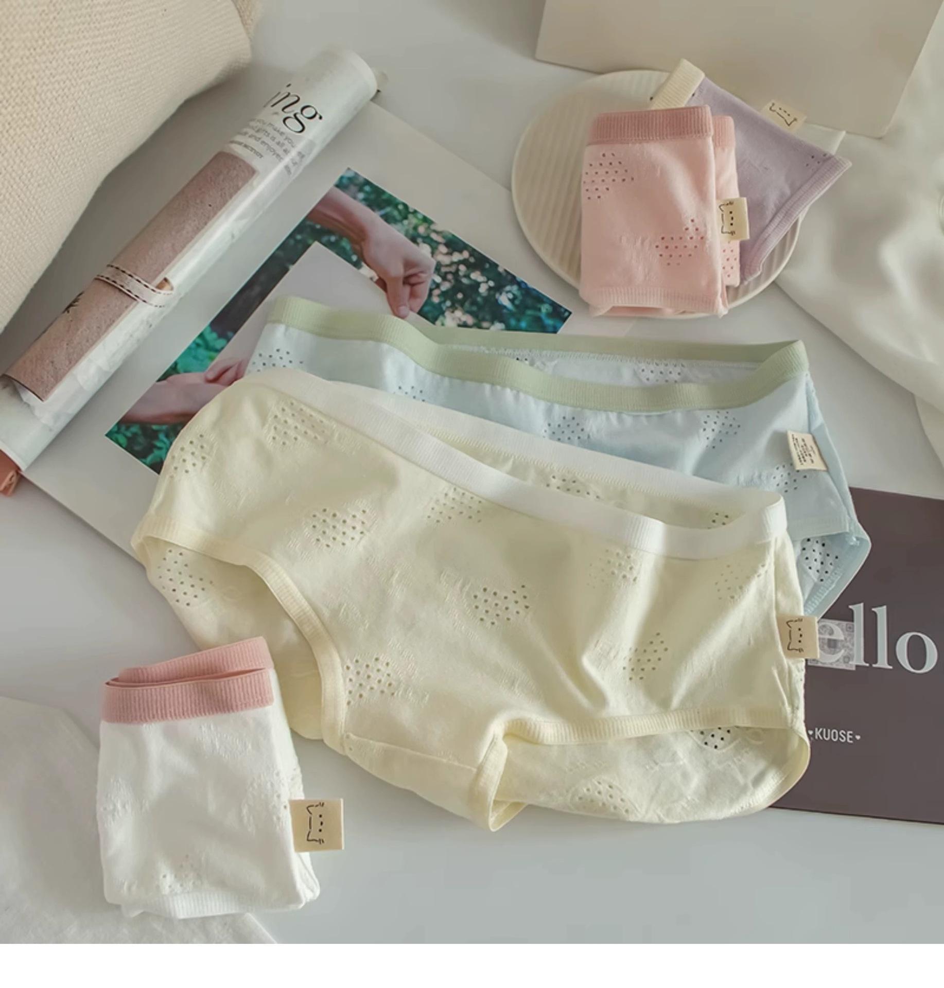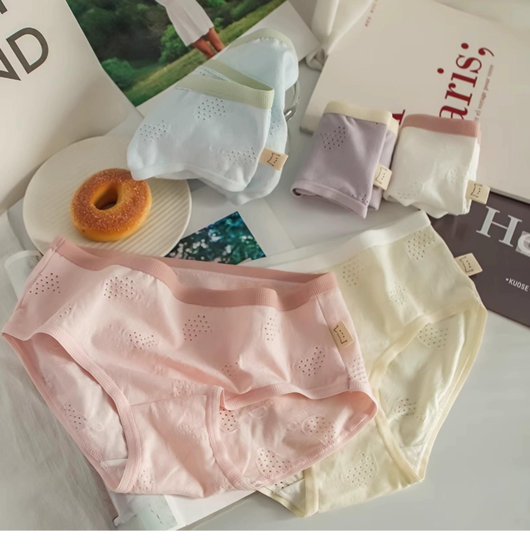 Ropa interior para mujer Clase A Algodón para bebé color crema algodón puro antibacteriano color sólido simple chica japonesa Dulce Hueco estudiante