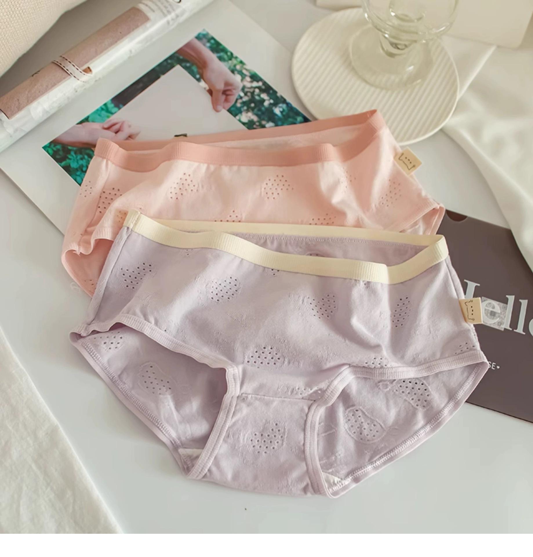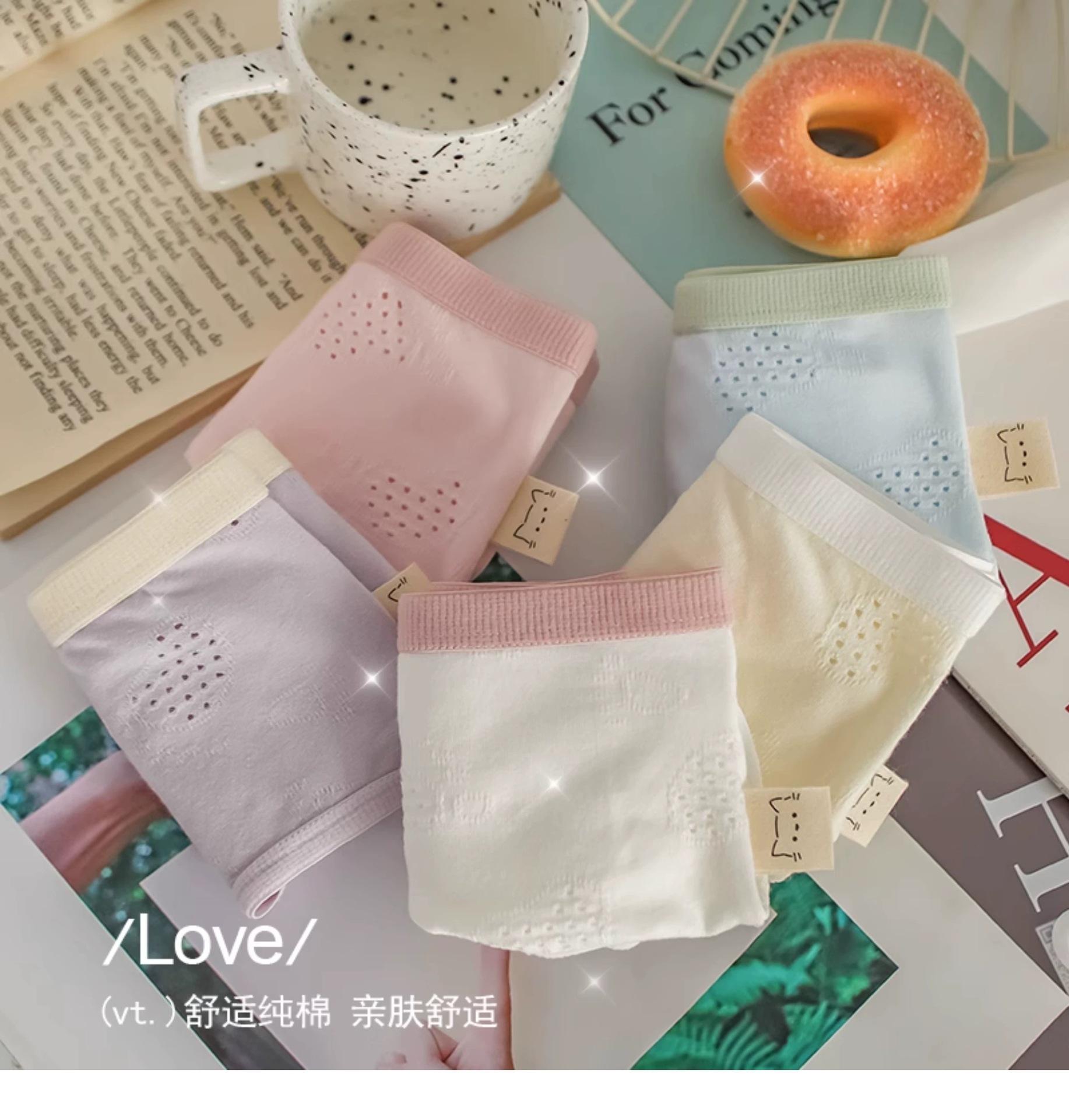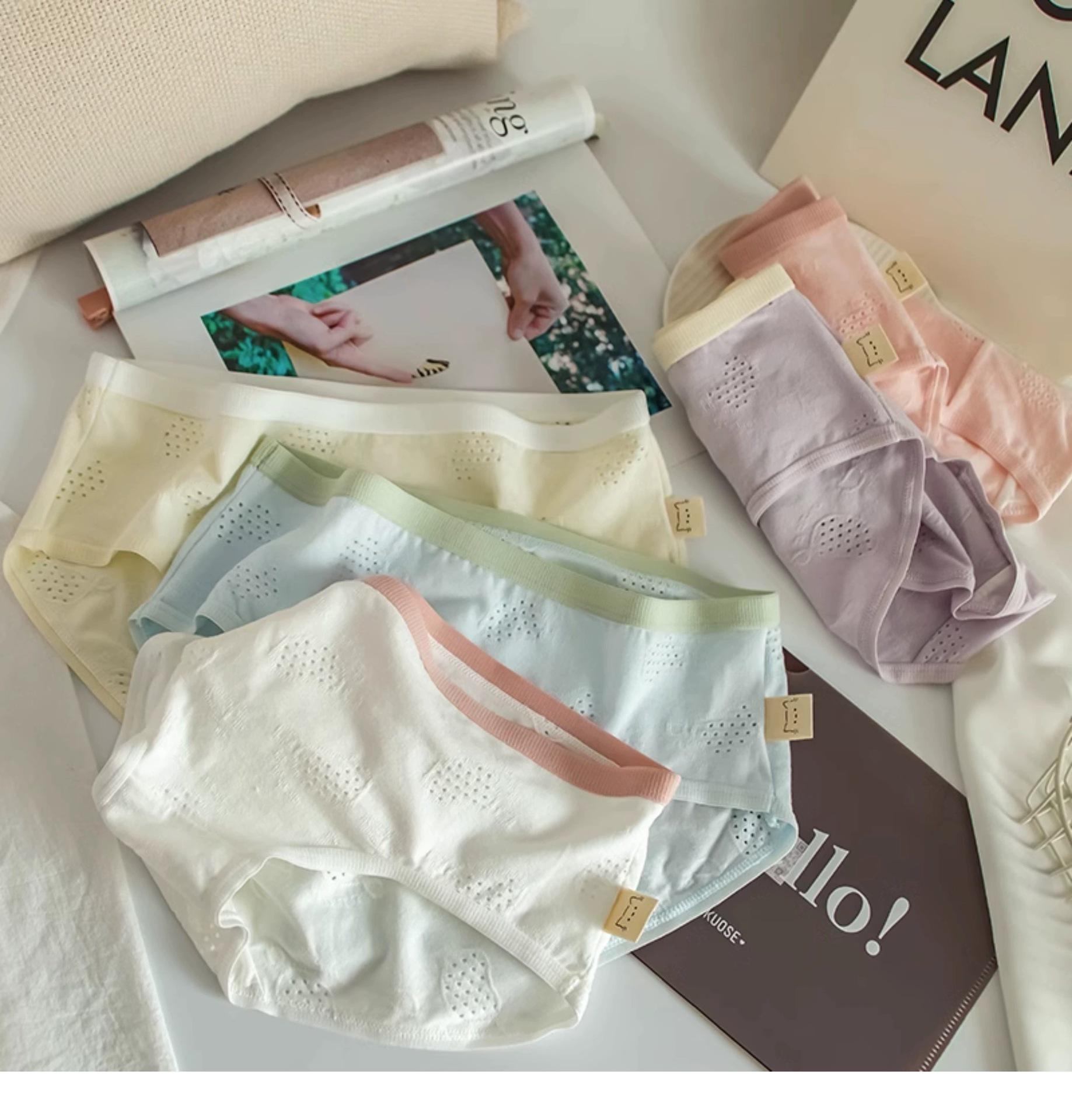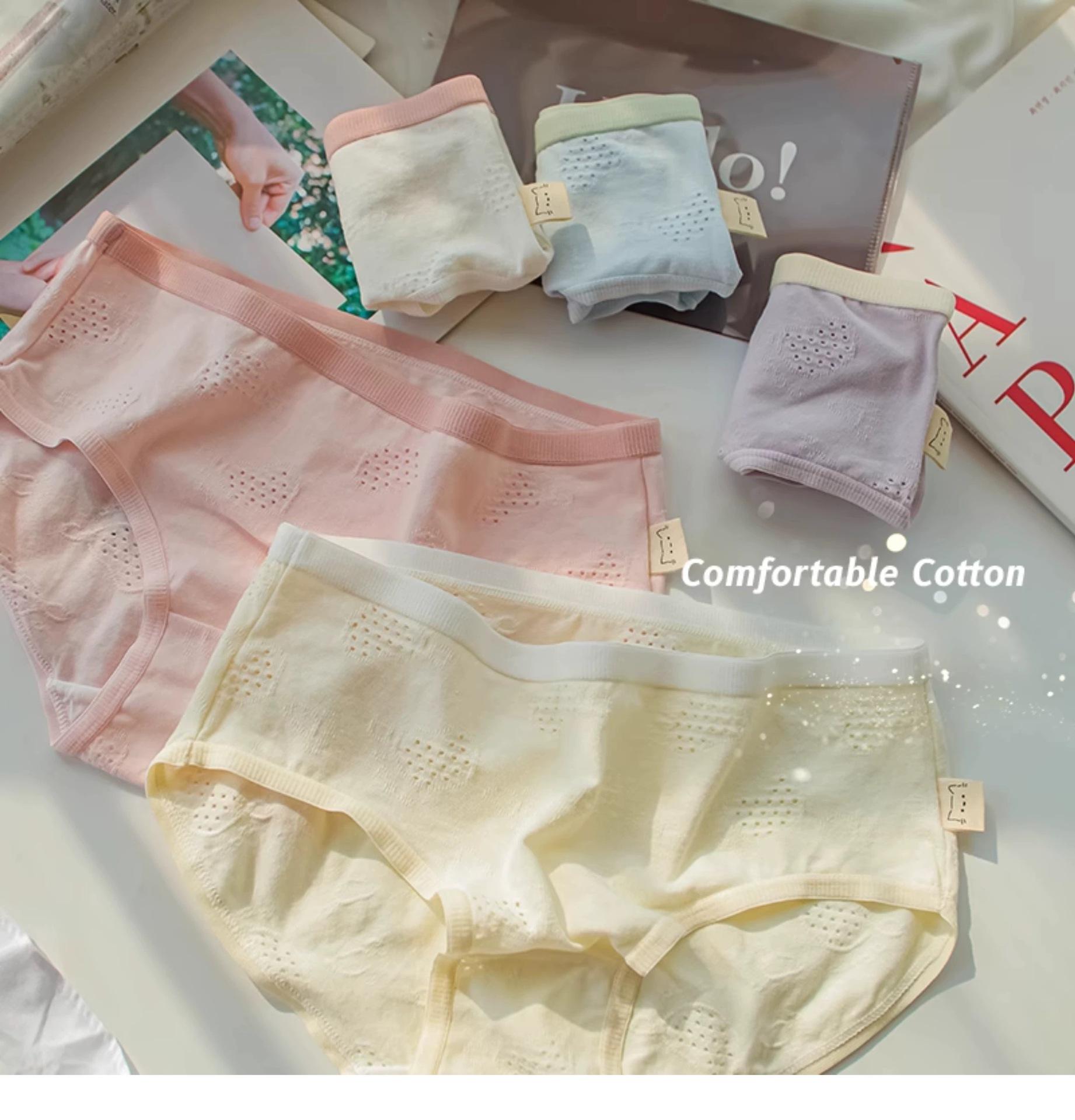 Ropa interior para mujer Clase A Algodón para bebé color crema algodón puro antibacteriano color sólido simple chica japonesa Dulce Hueco estudiante