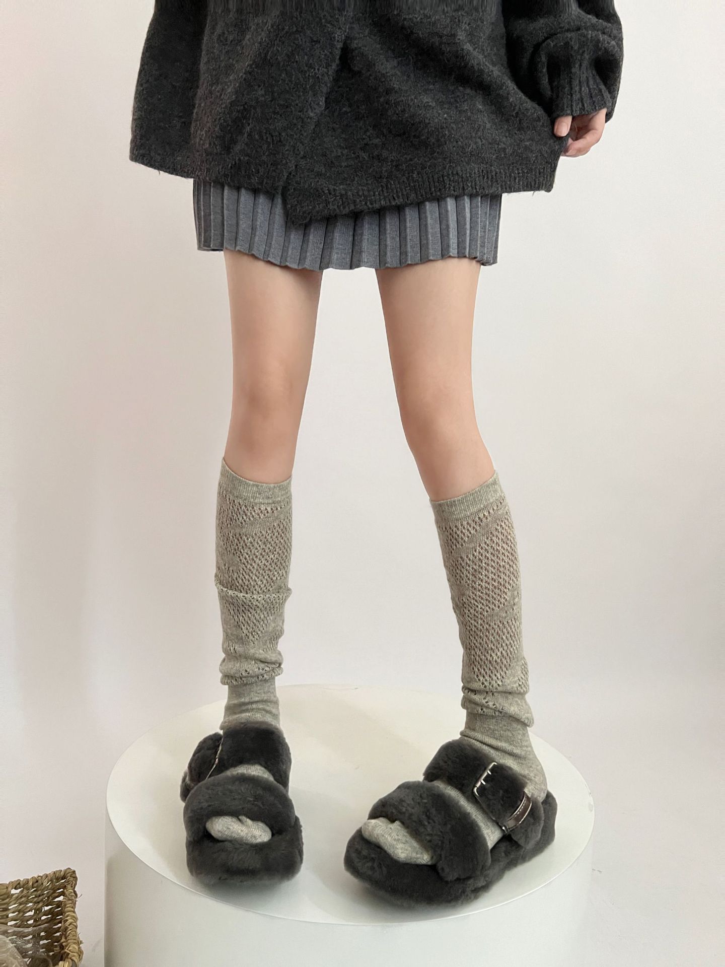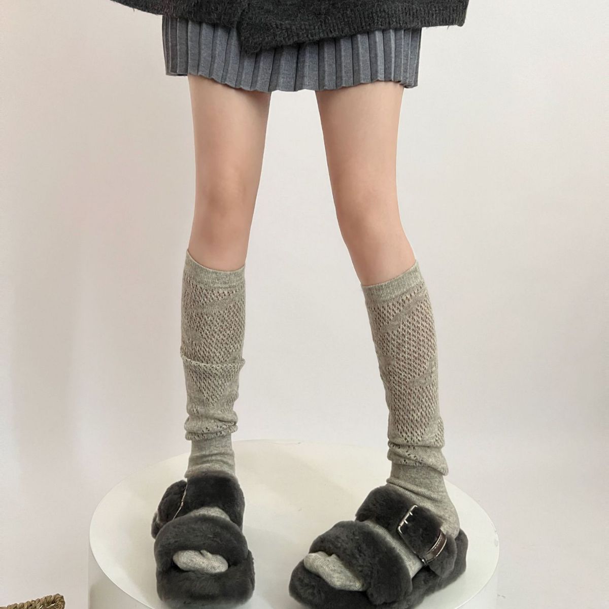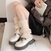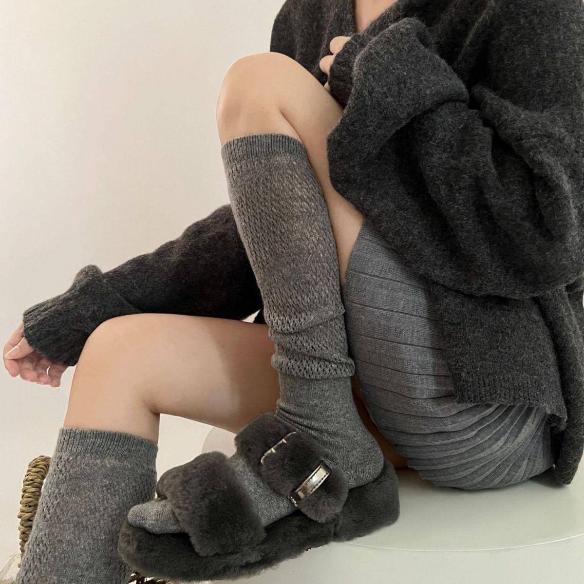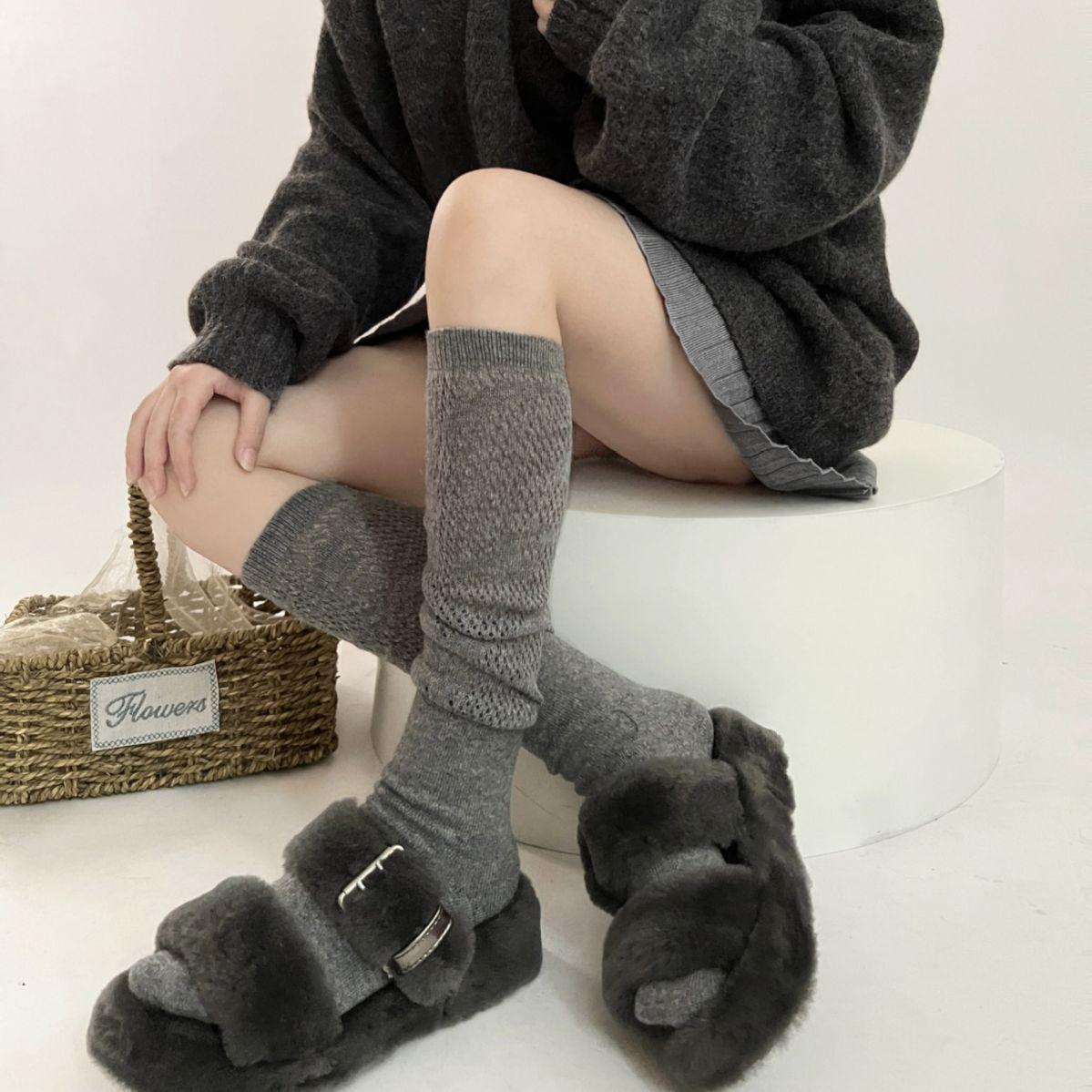Calcetines blancos de punto suaves de lana de otoño e invierno para mujer, calcetines de pantorrilla, calcetines de pila JK, medias grises para niña, botas