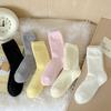 Calcetines básicos de plumas de invierno para mujer, de color liso japonés, hasta media pantorrilla, cálidos, súper suaves y multicolores.