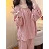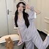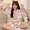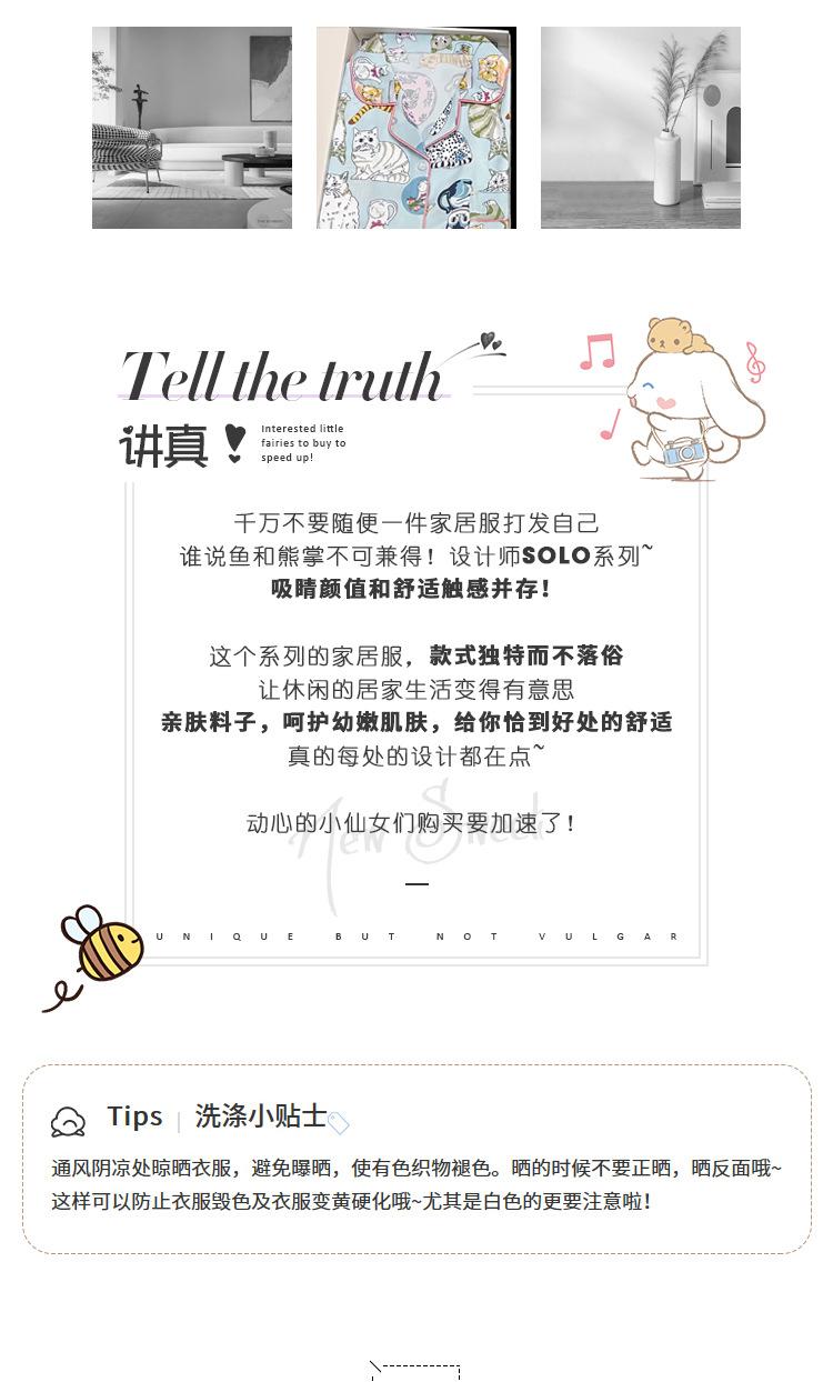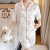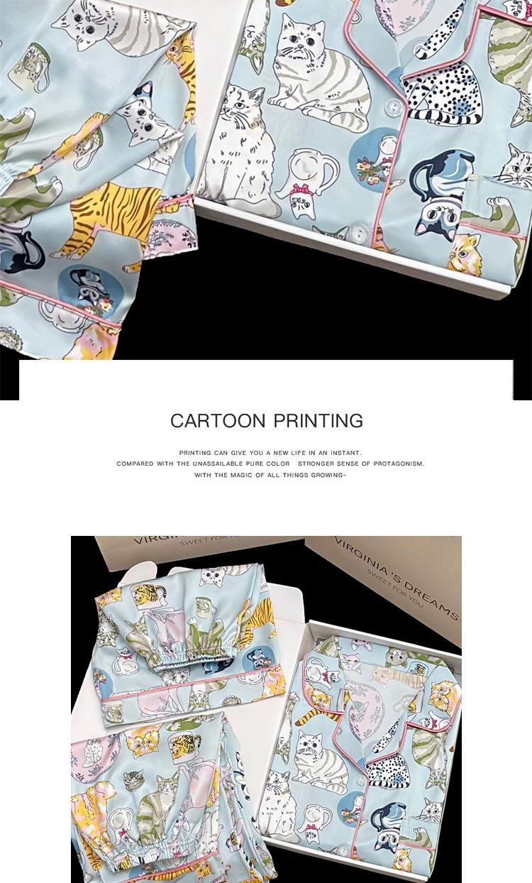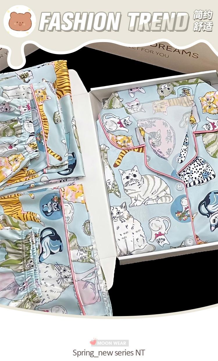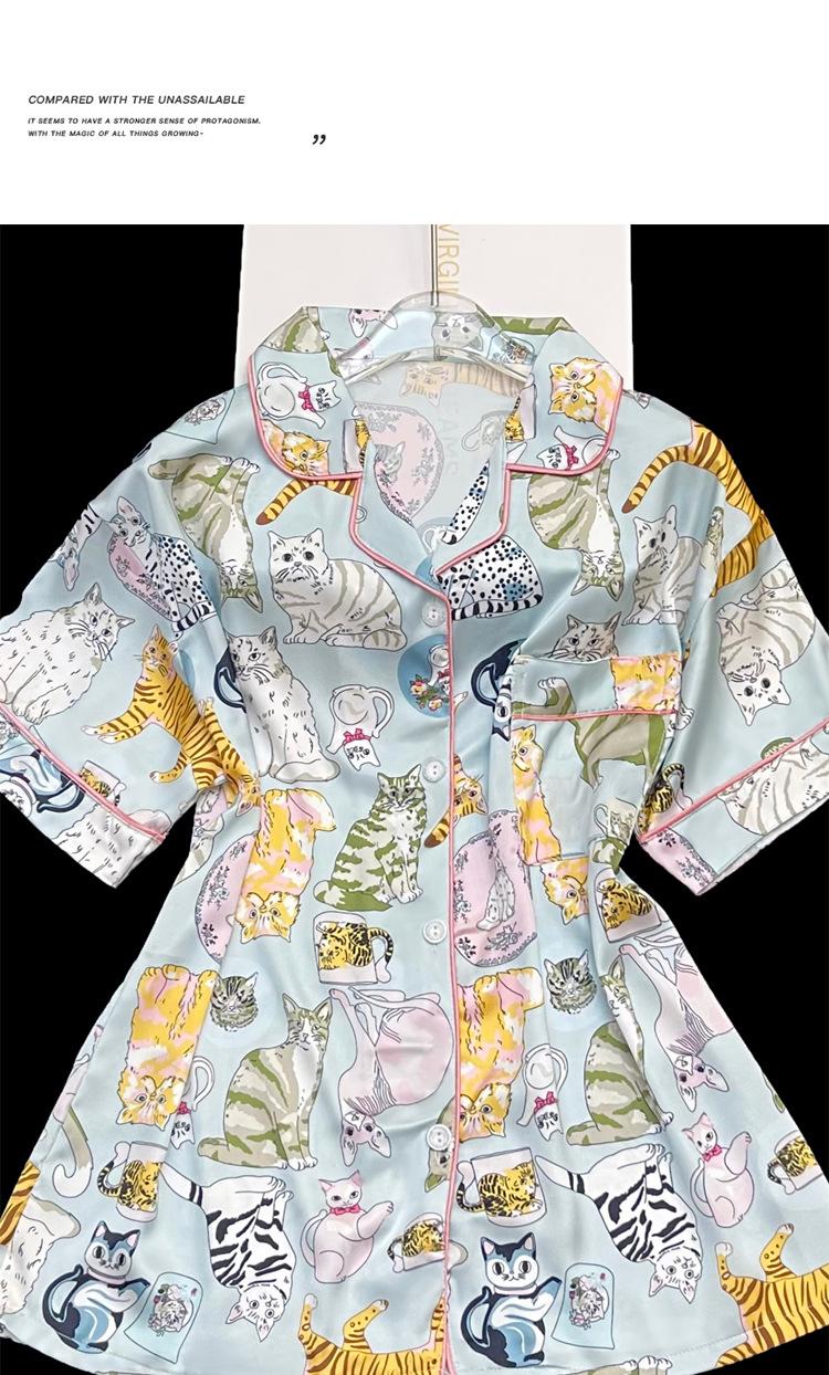 Pijama nuevo de primavera transfronterizo de seda de hielo de manga corta dulce y lindo de niña gato ropa para el hogar conjunto de tres piezas foto real venta al por mayor