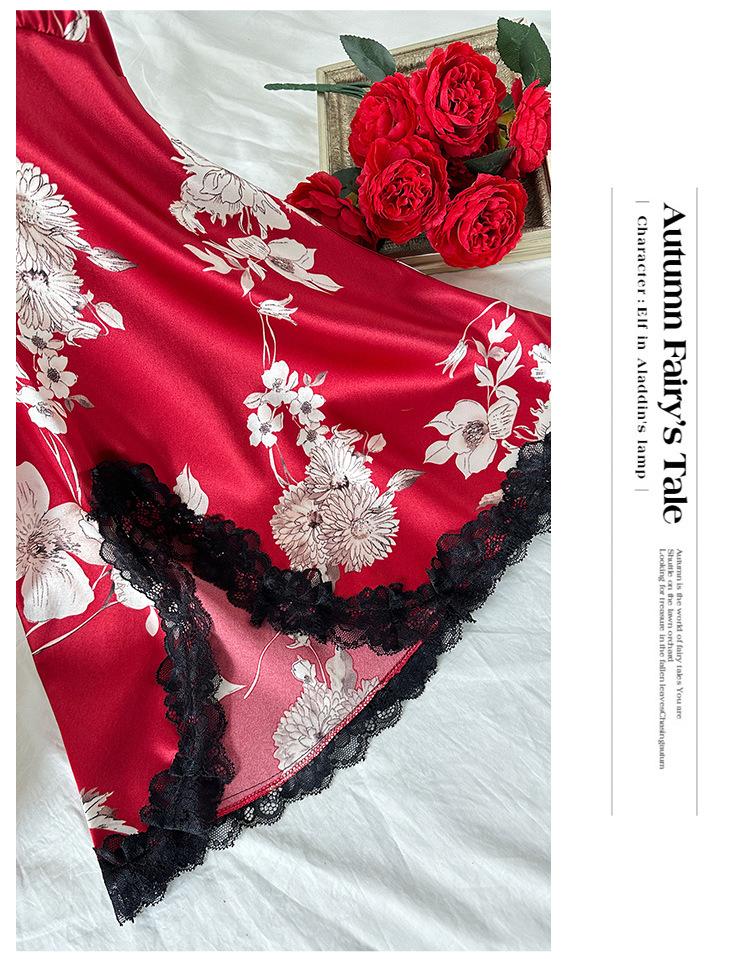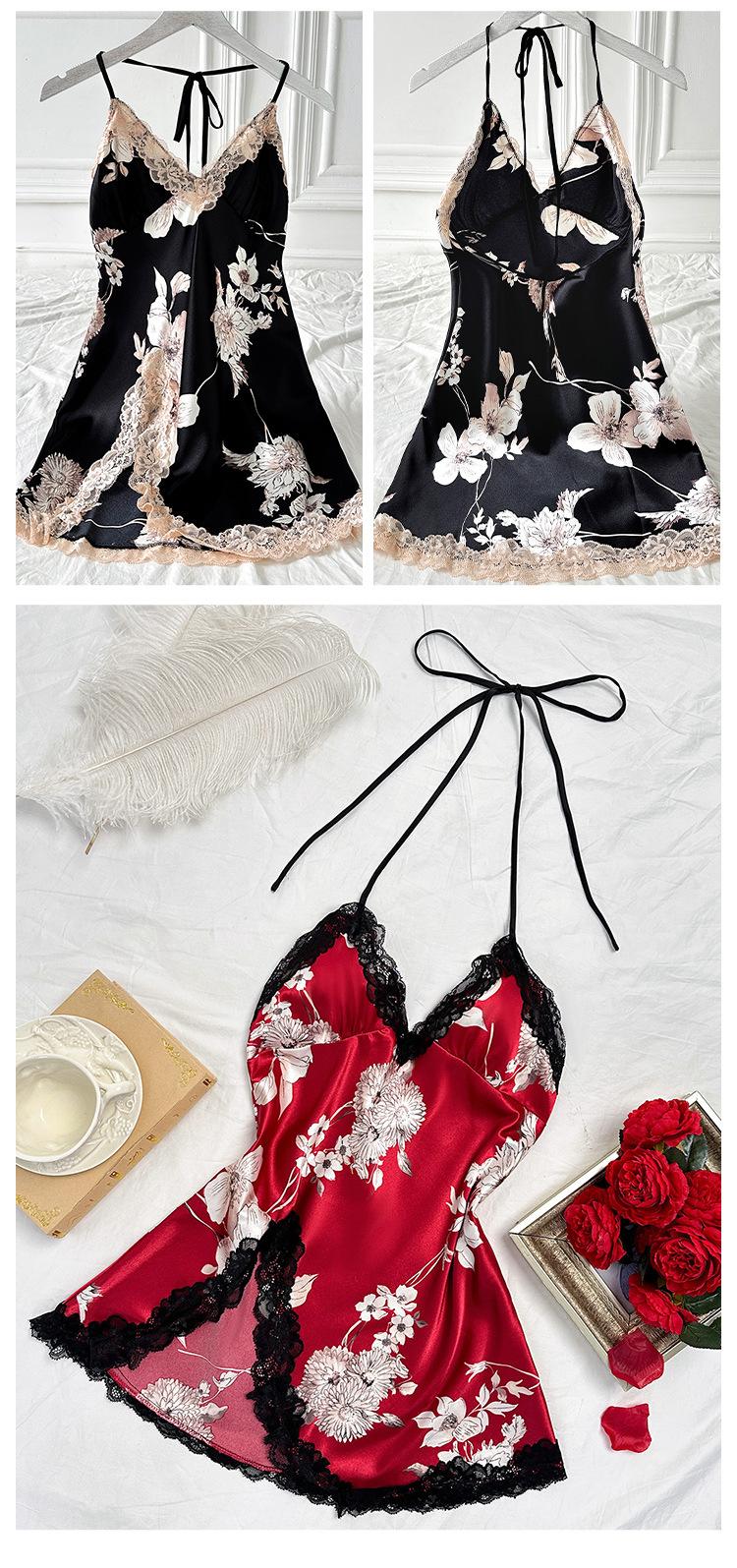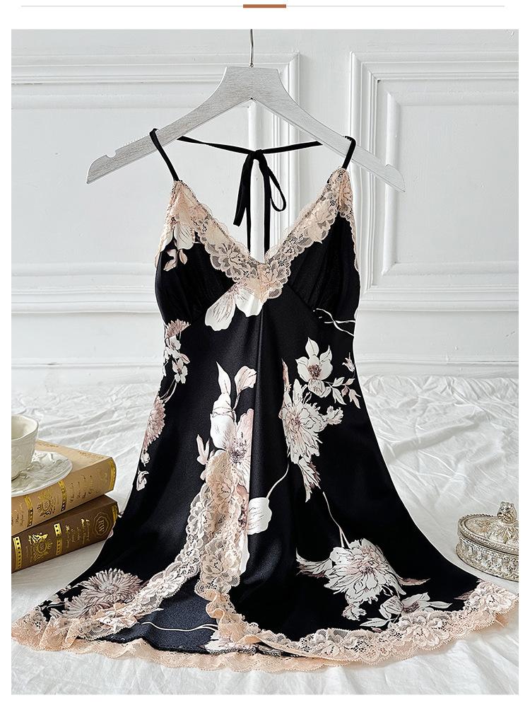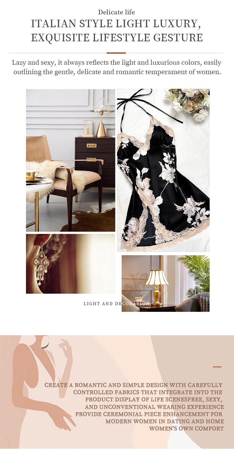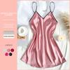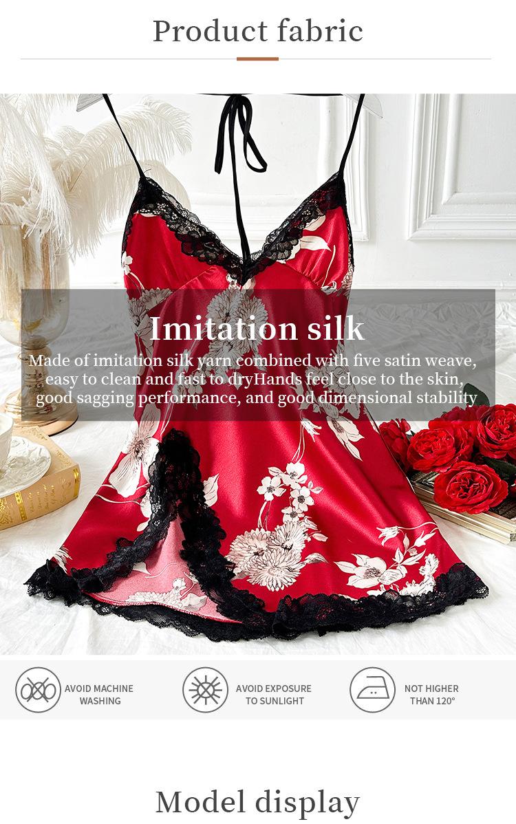 Bata de Noche de Seda de Hielo New Denny Lin Transfronteriza Transpirable Delgada Falda Corta Ropa de Casa para Mujer Camisón de Seda Sexy