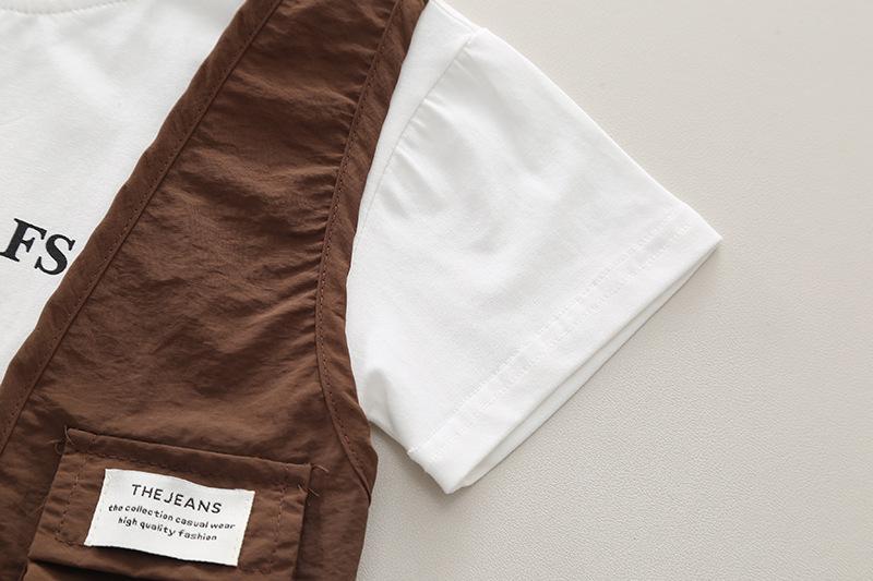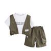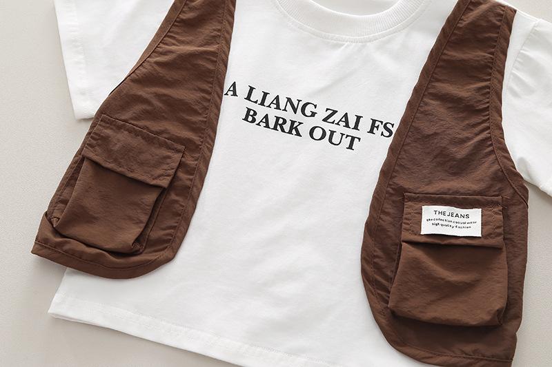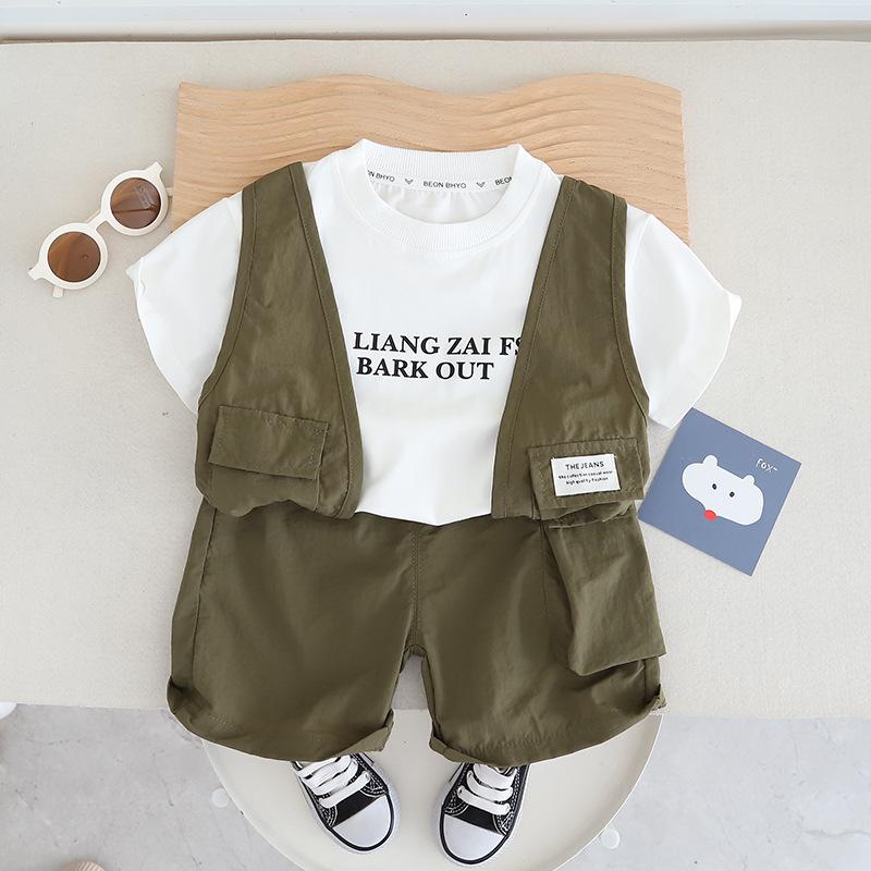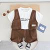 Conjunto de ropa de trabajo para niño, chaleco de cuello redondo y manga corta, pantalones cortos informales para bebé, conjunto de dos piezas para el cabello, novedad de verano de 2024