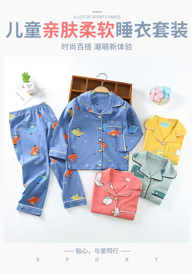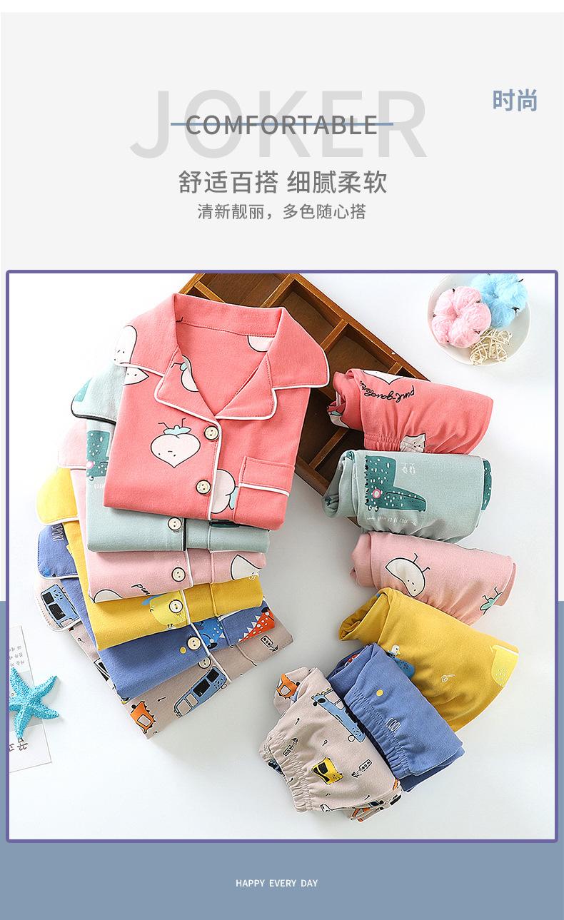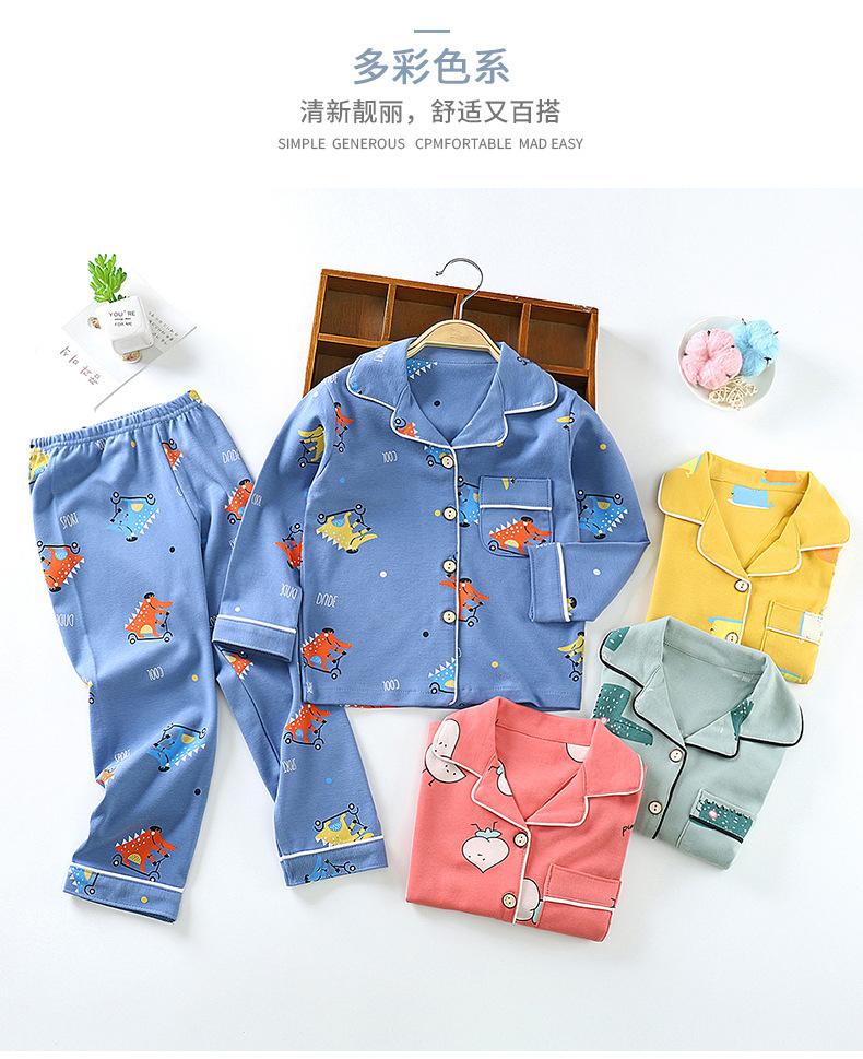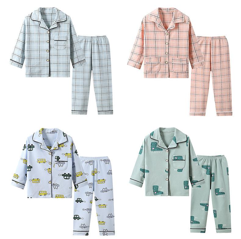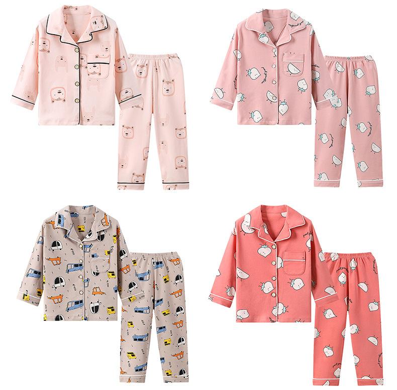 Ropa de Casa de Algodón Puro para Niños para Primavera y Otoño, Pijama con Solapa para Niñas y Conjunto de Pijama, Conjunto de Dos Piezas Folio para Niños