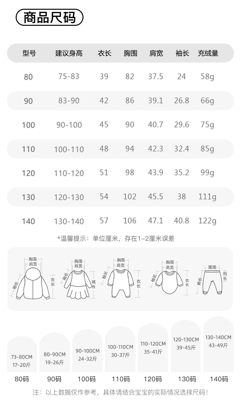 80 filling capacity 58g, 90 down filling capacity 66g, 100 down filling capacity 75g, 110 down filling capacit...