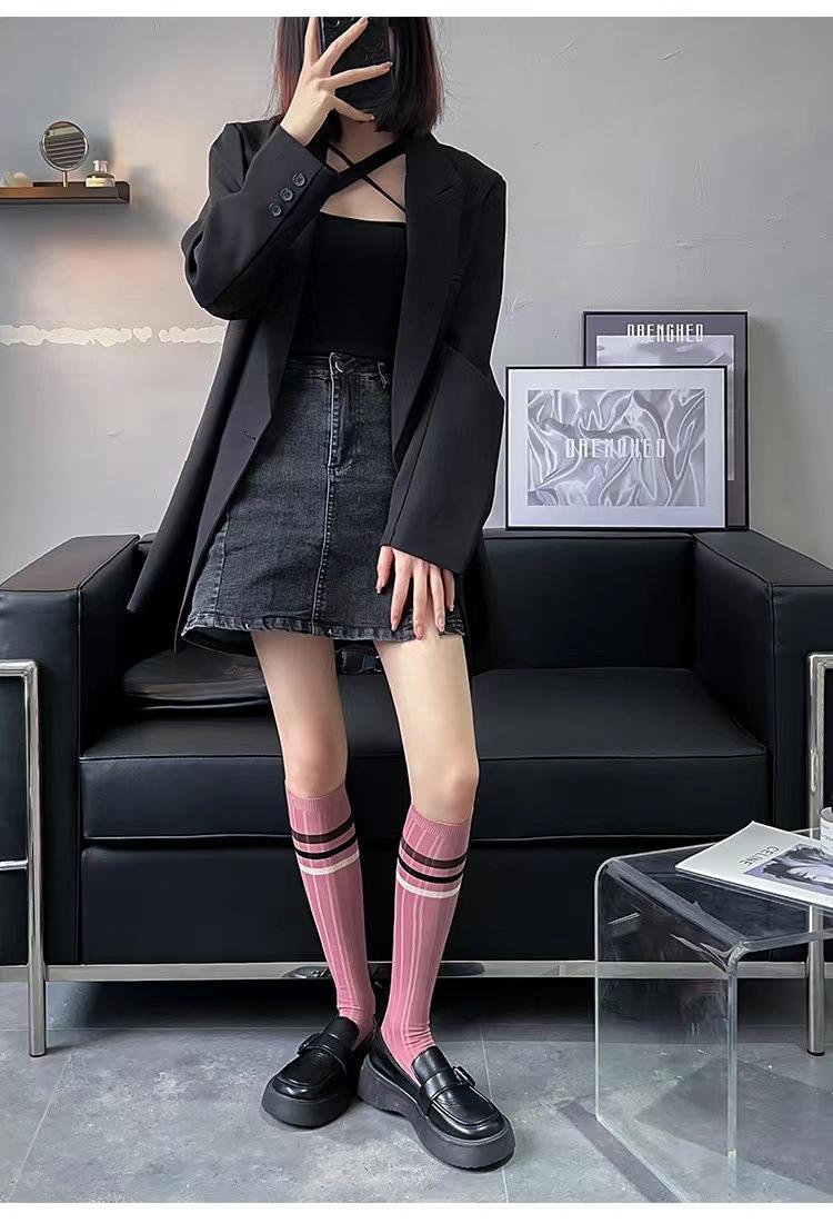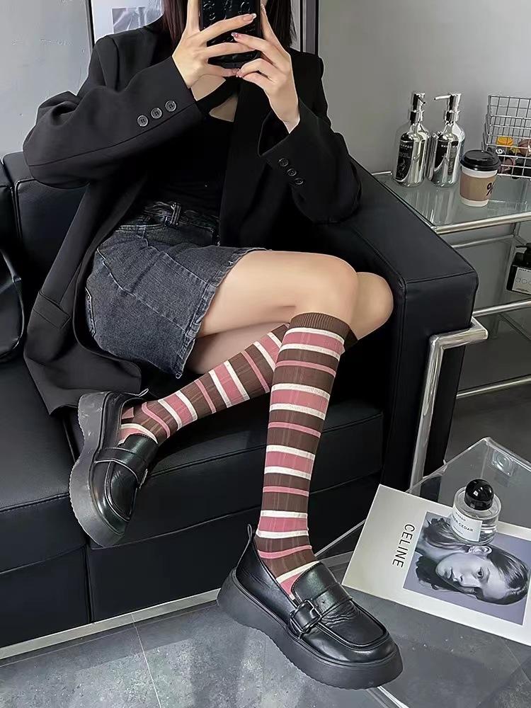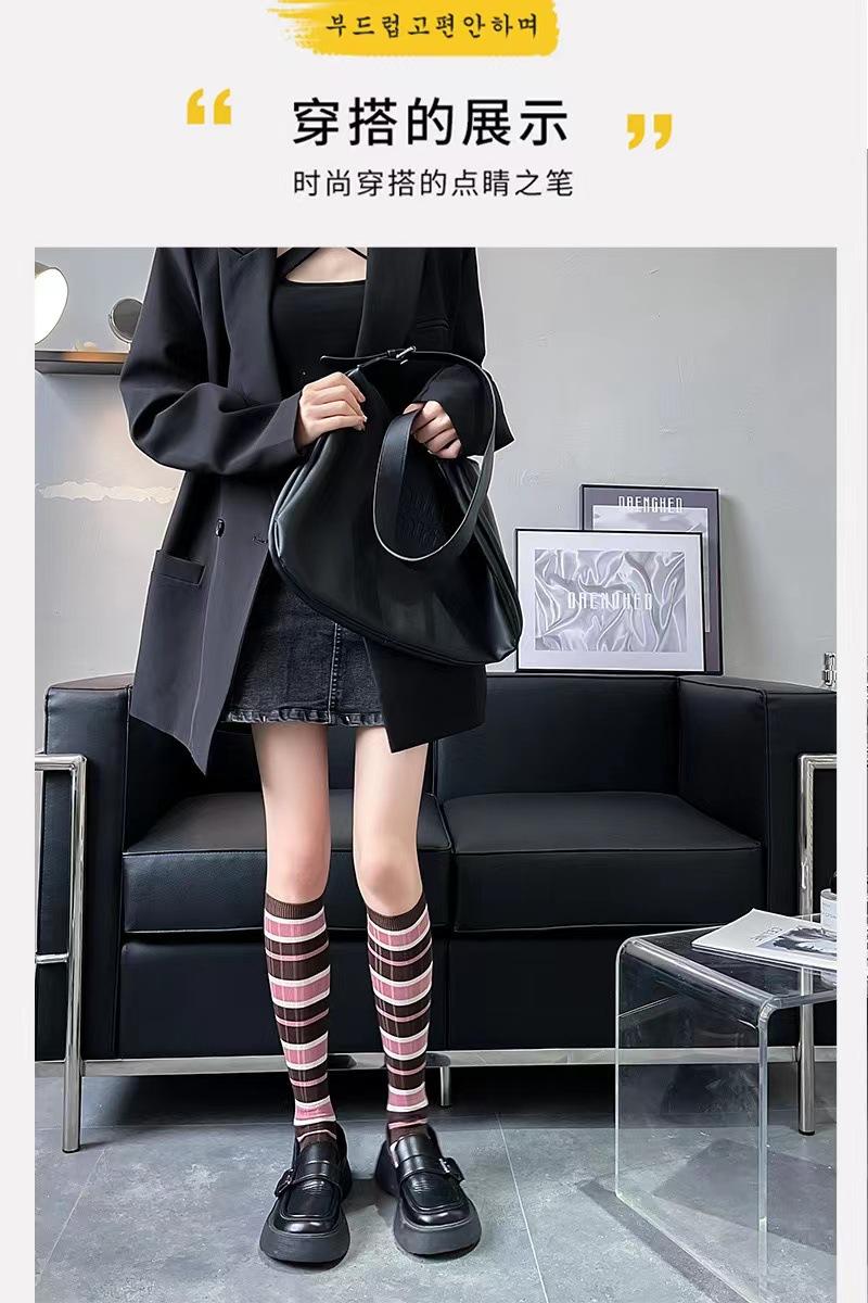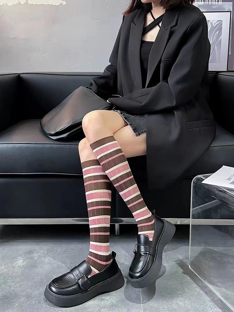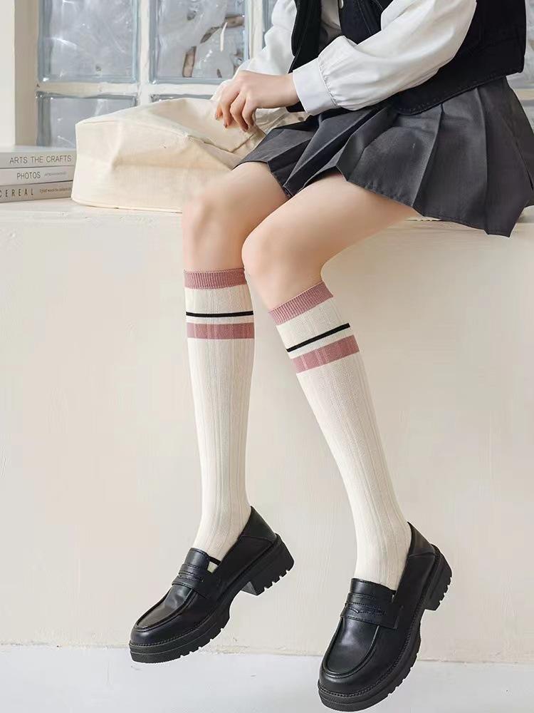 Calcetines de Pantorrilla Rayados Rosas para Mujer, Calcetines Largos de Uniforme Jk de Primavera y Otoño, Calcetines Dulces de Tubo Alto, Calcetines de Tubo Alto de Verano