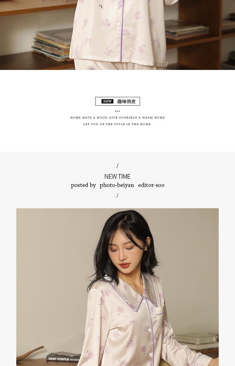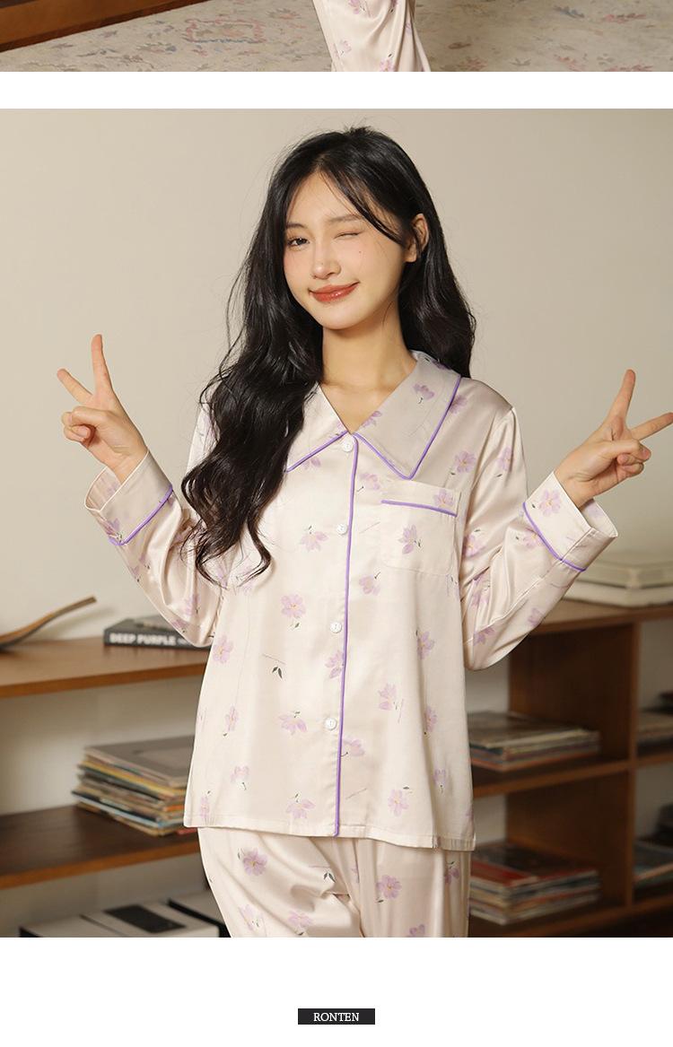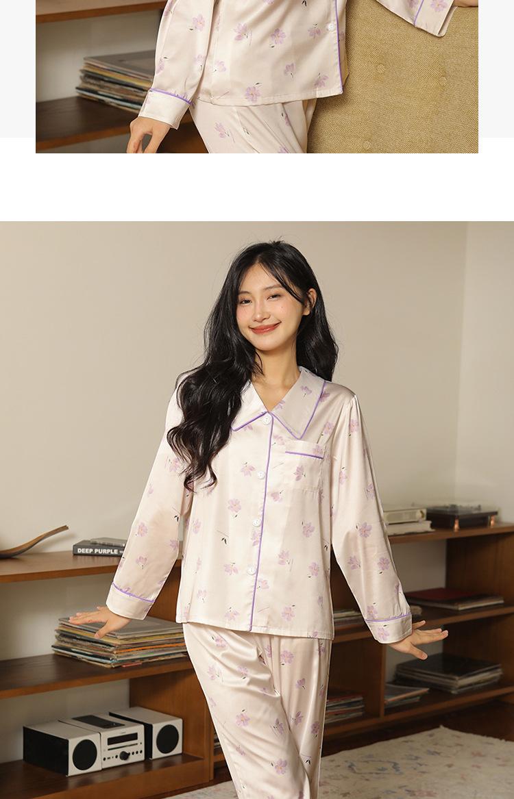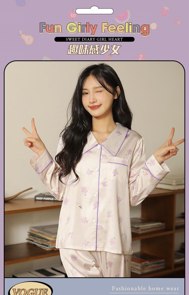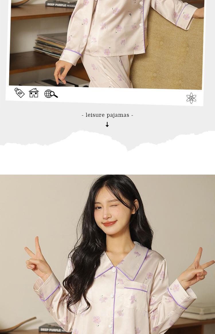 Pijamas de seda helada de magnolia morada para mujer, primavera y verano, manga larga, finos, de alta gama, estilo puro deseo, ropa para el hogar, traje al por mayor