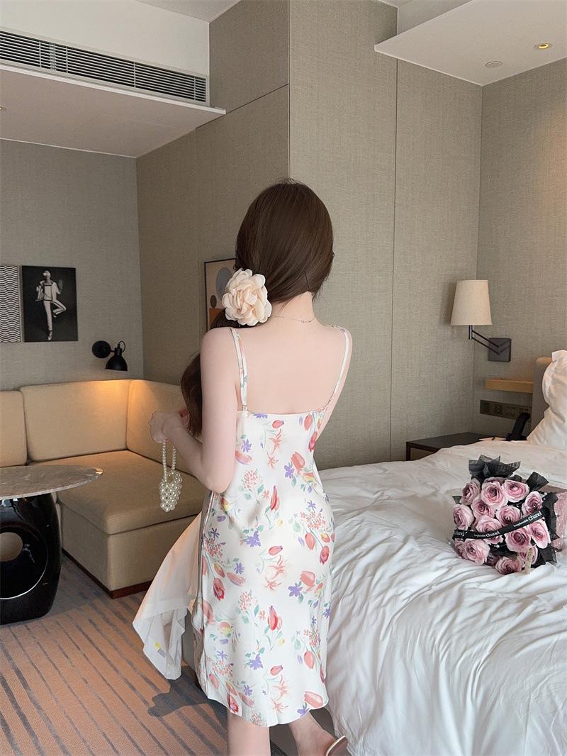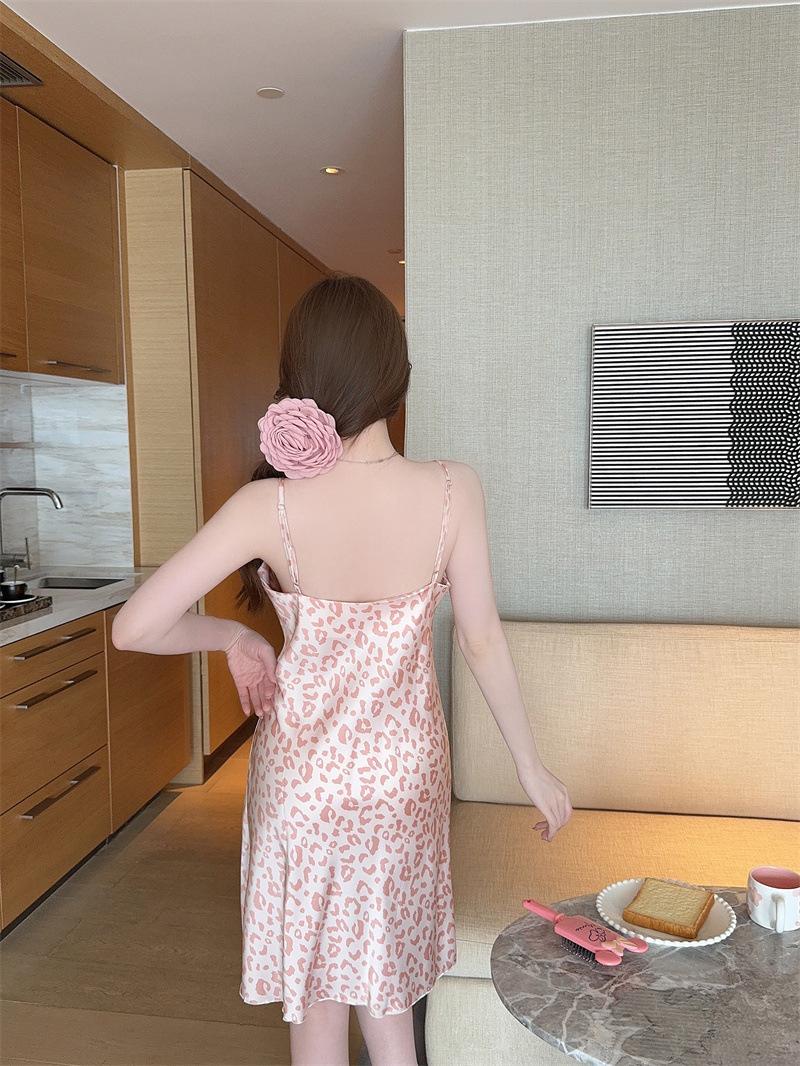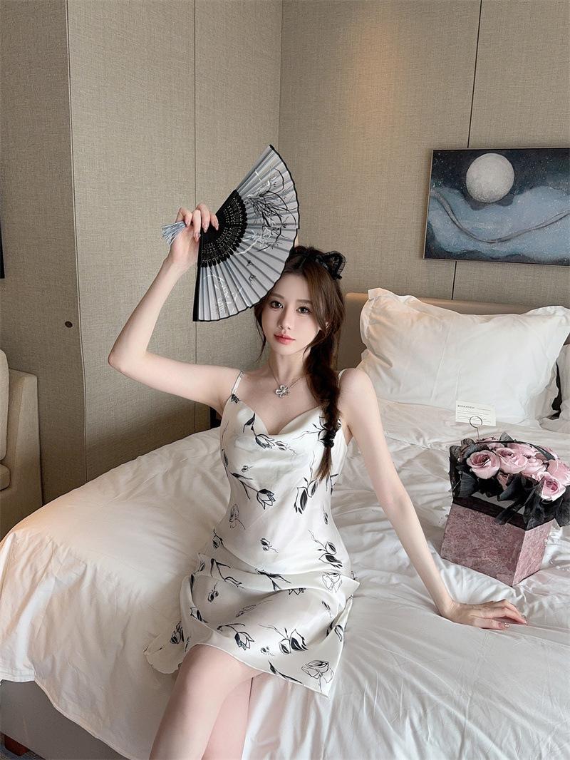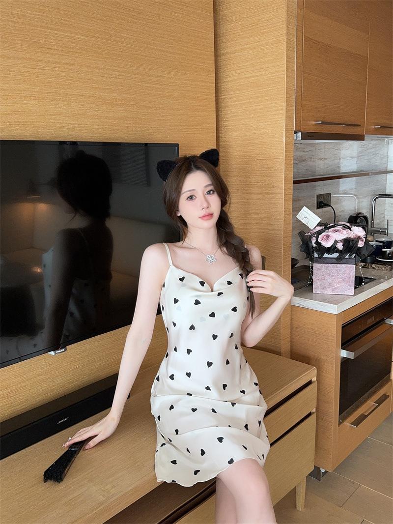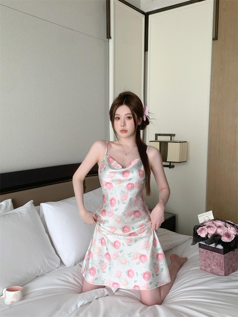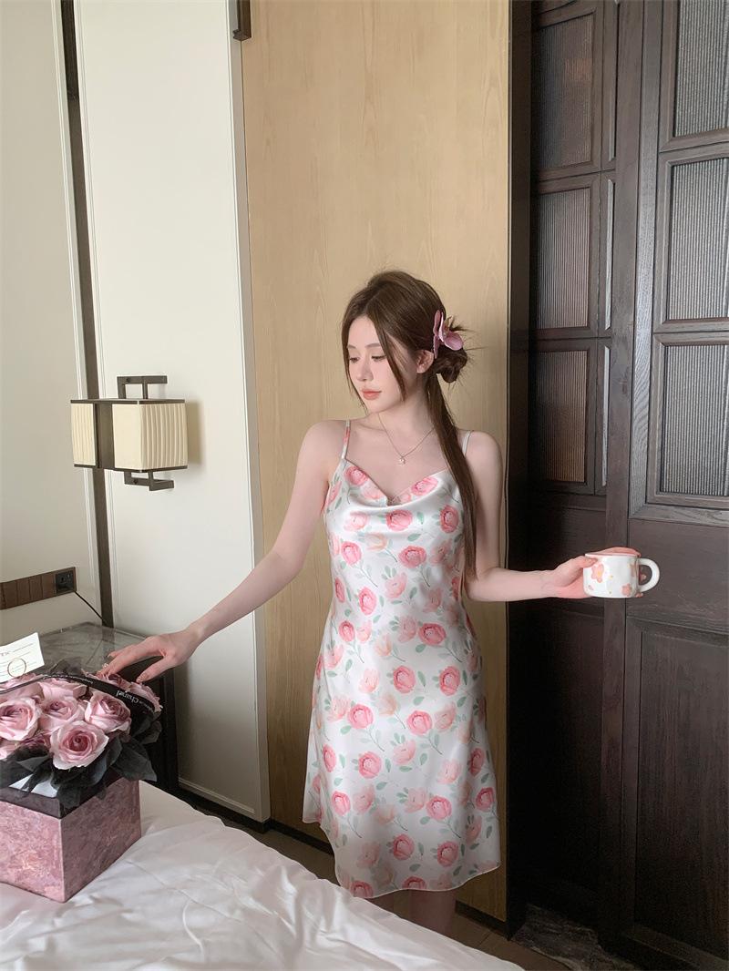 Camisón sexy con cuello halter para mujer, estampado de seda hielo, Pure Desire, con tirantes, primavera 2024, ropa de hogar nueva, transfronteriza