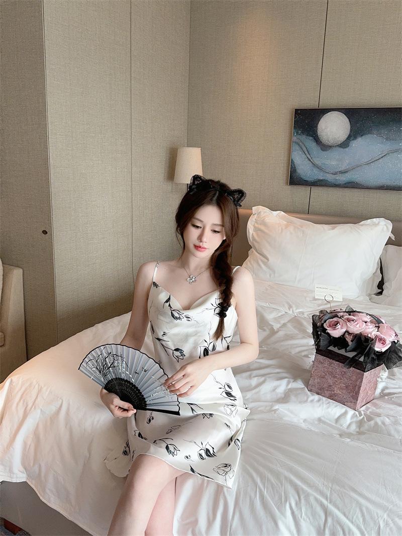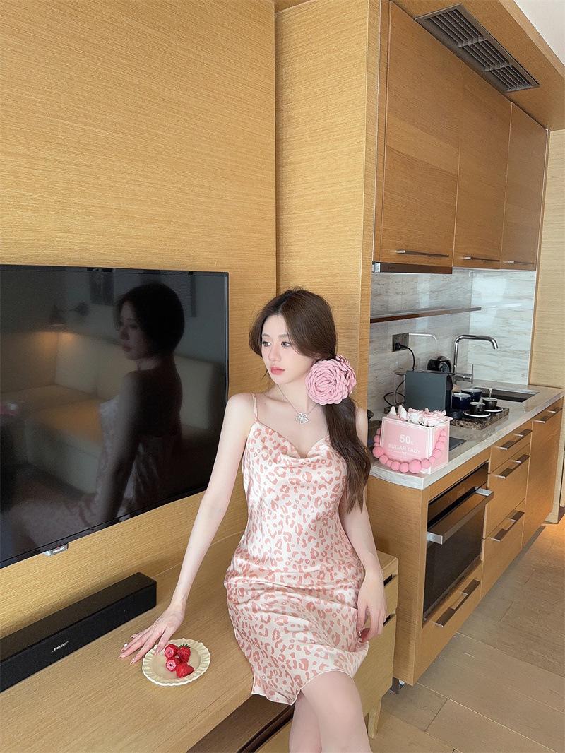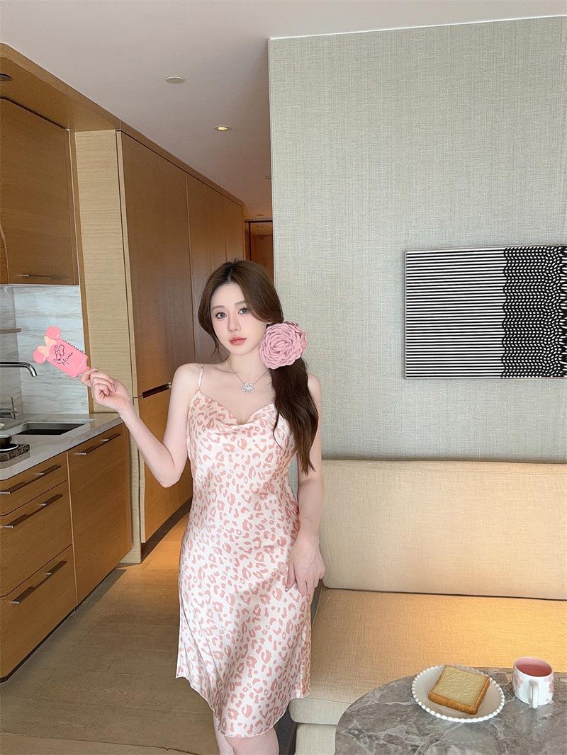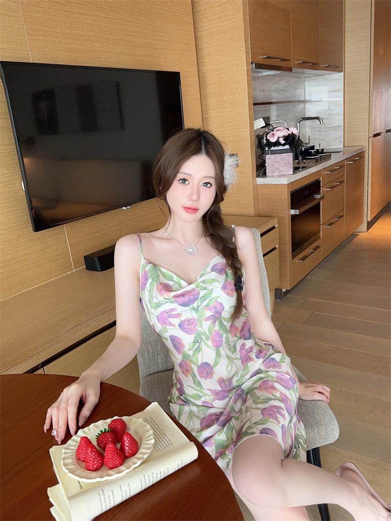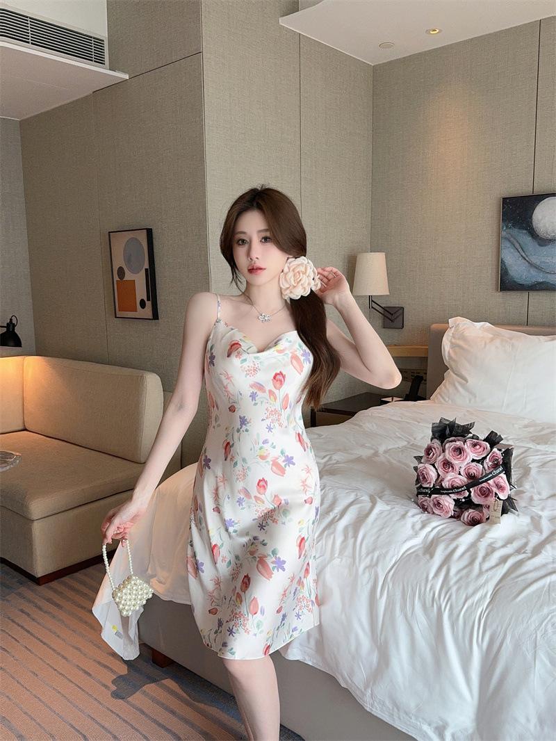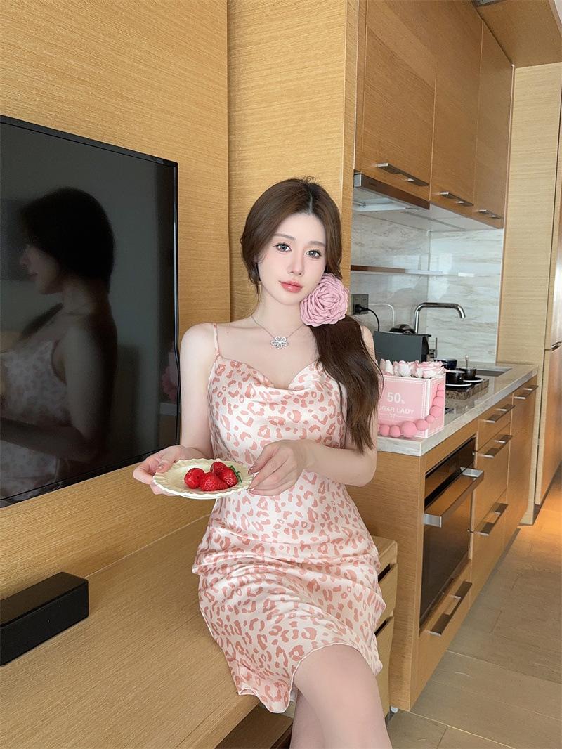 Camisón sexy con cuello halter para mujer, estampado de seda hielo, Pure Desire, con tirantes, primavera 2024, ropa de hogar nueva, transfronteriza