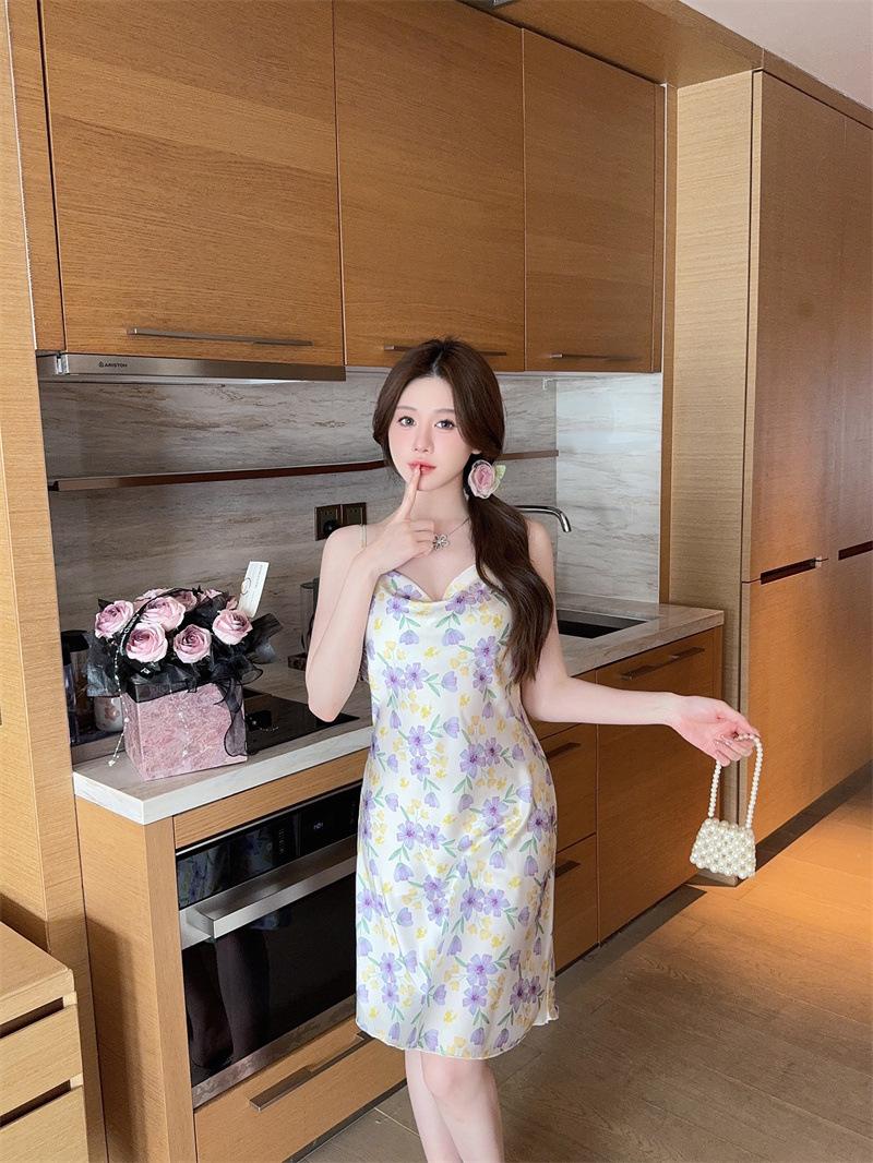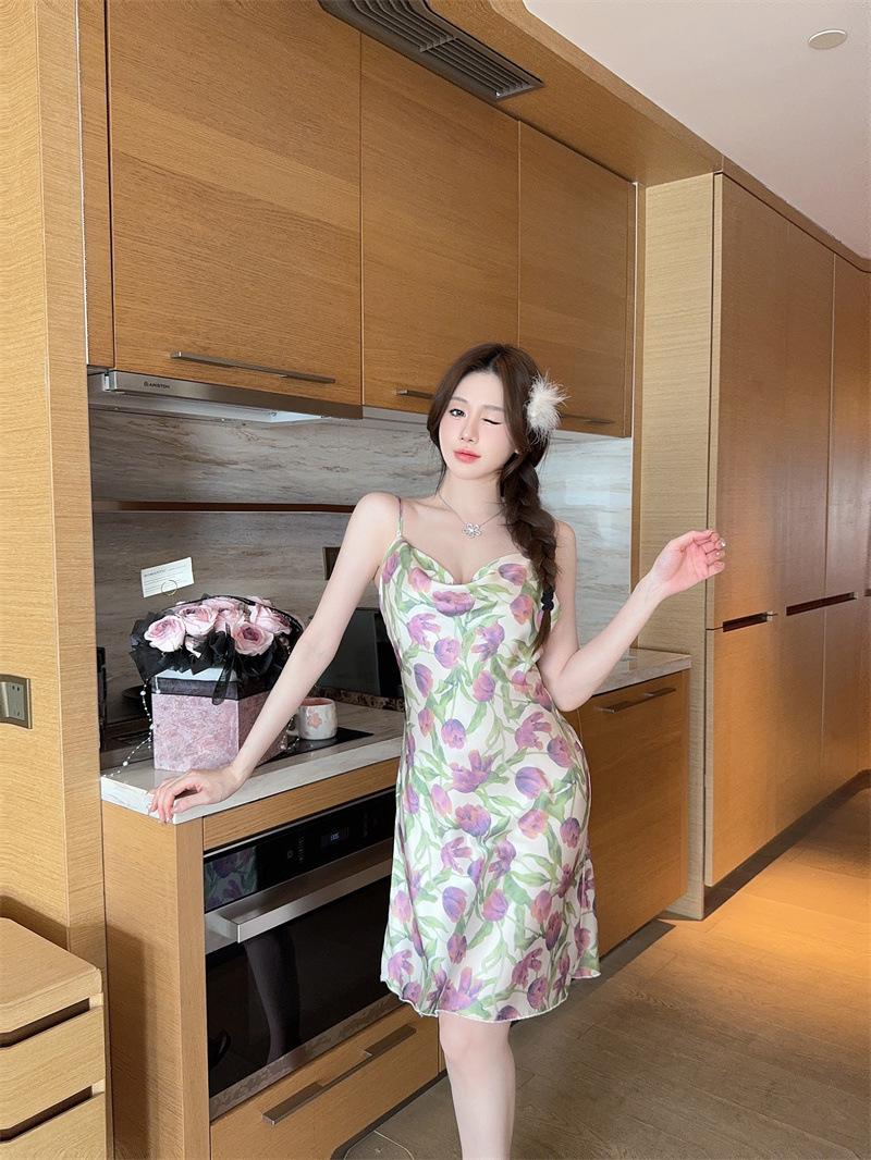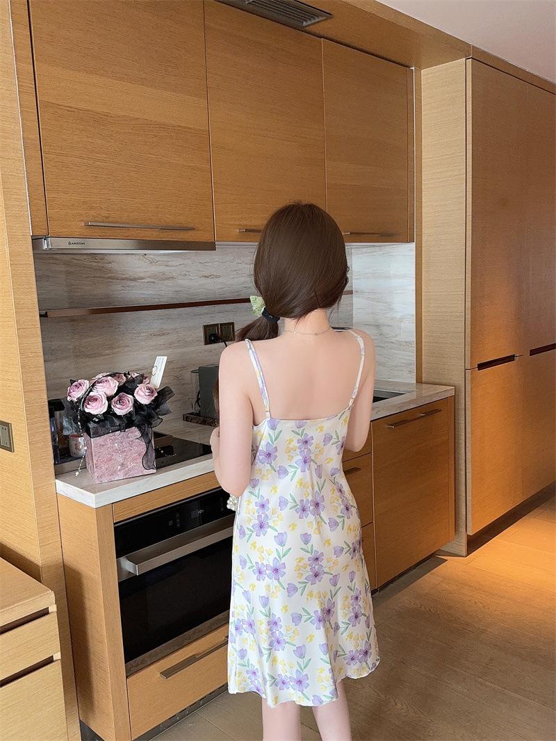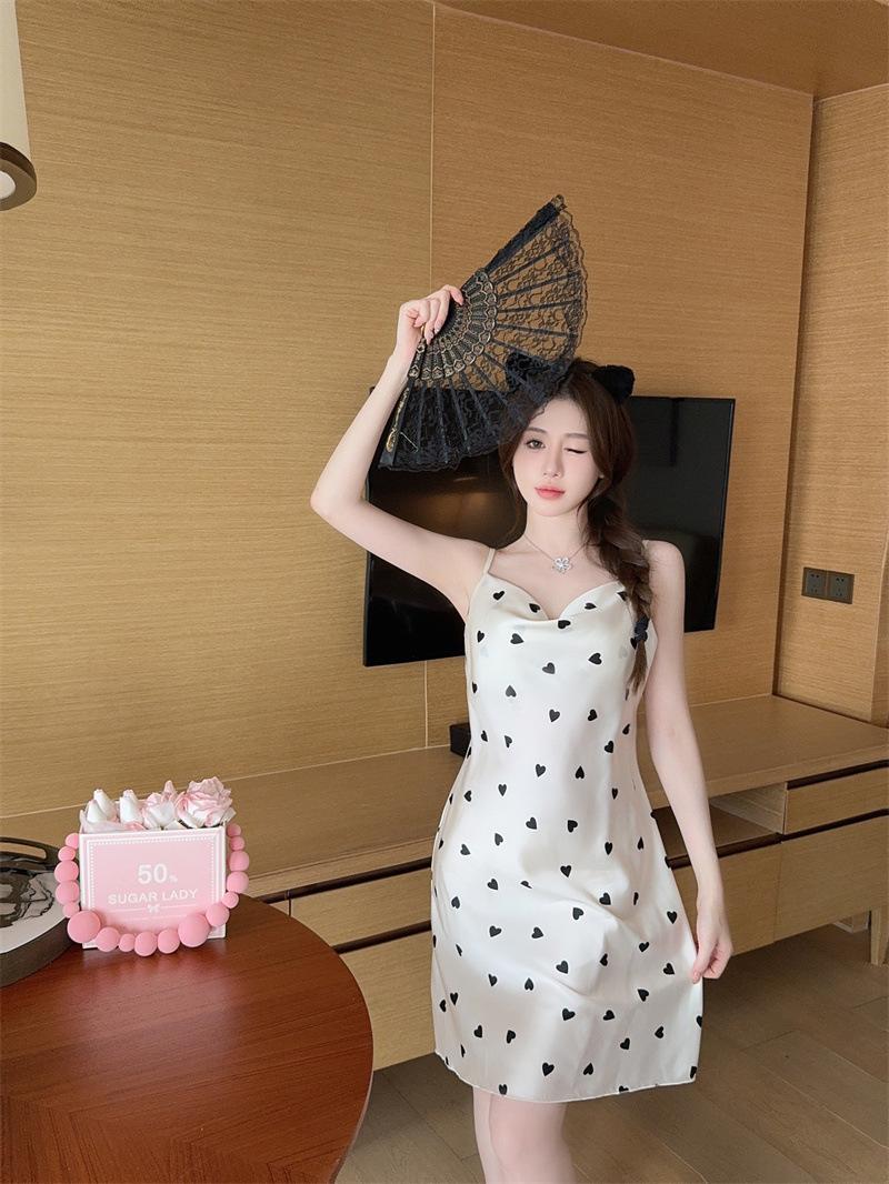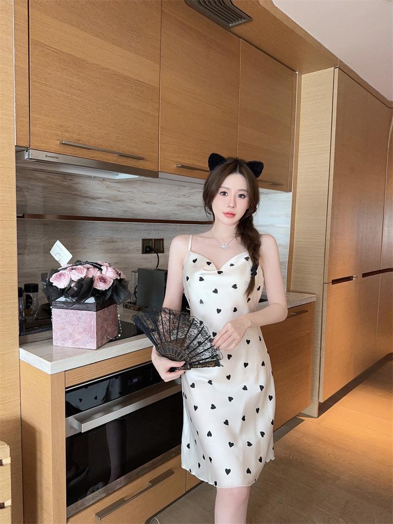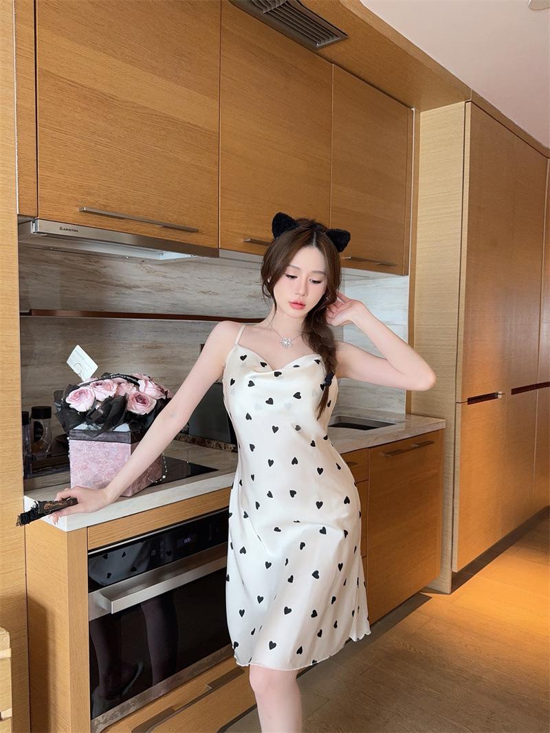 Camisón sexy con cuello halter para mujer, estampado de seda hielo, Pure Desire, con tirantes, primavera 2024, ropa de hogar nueva, transfronteriza