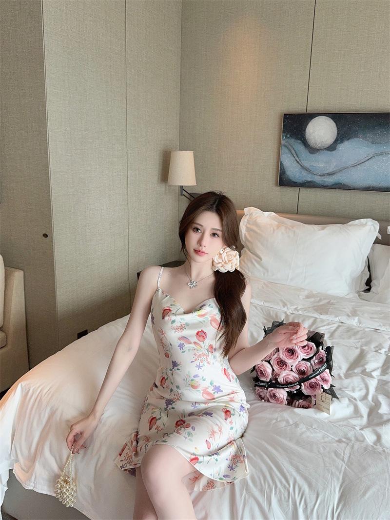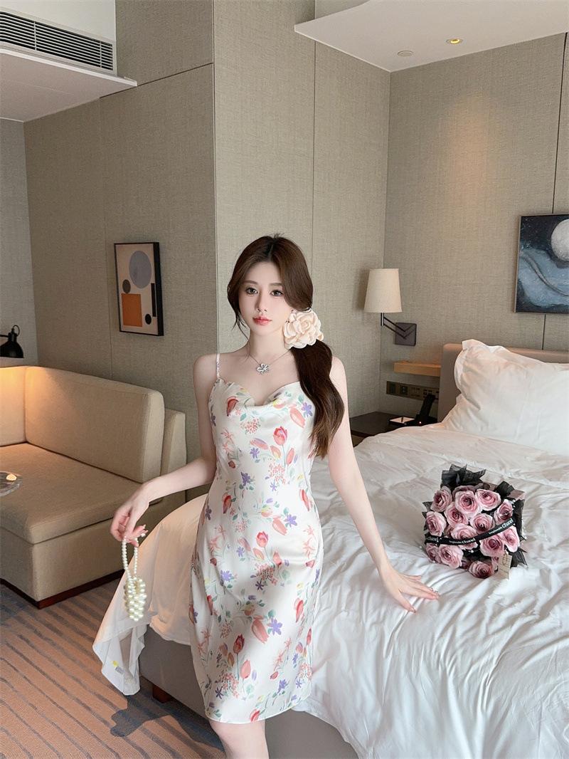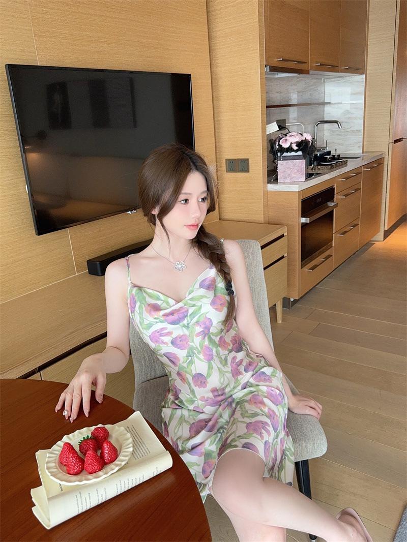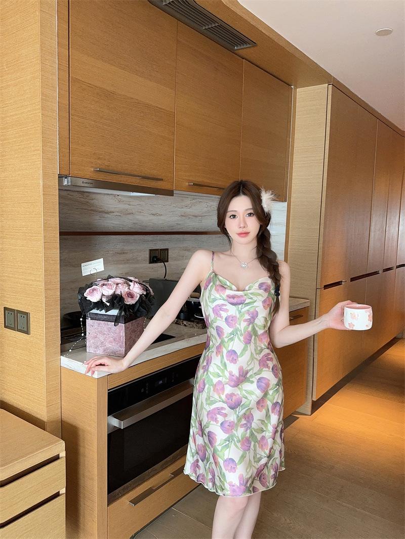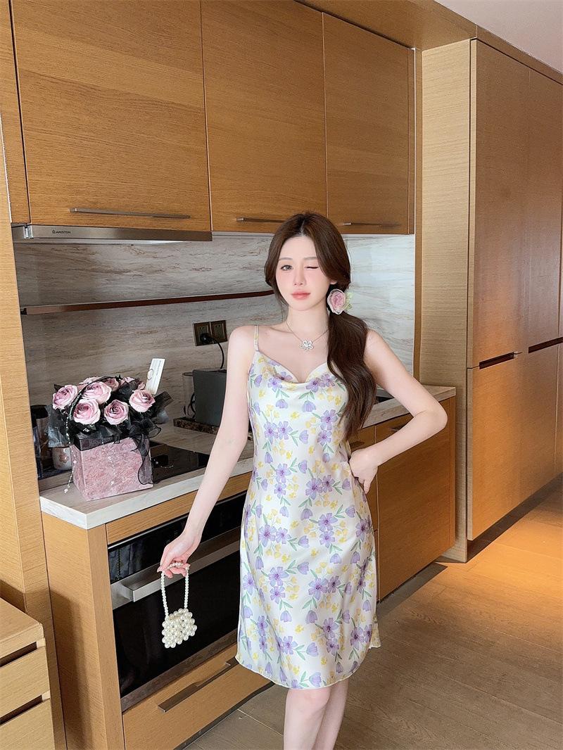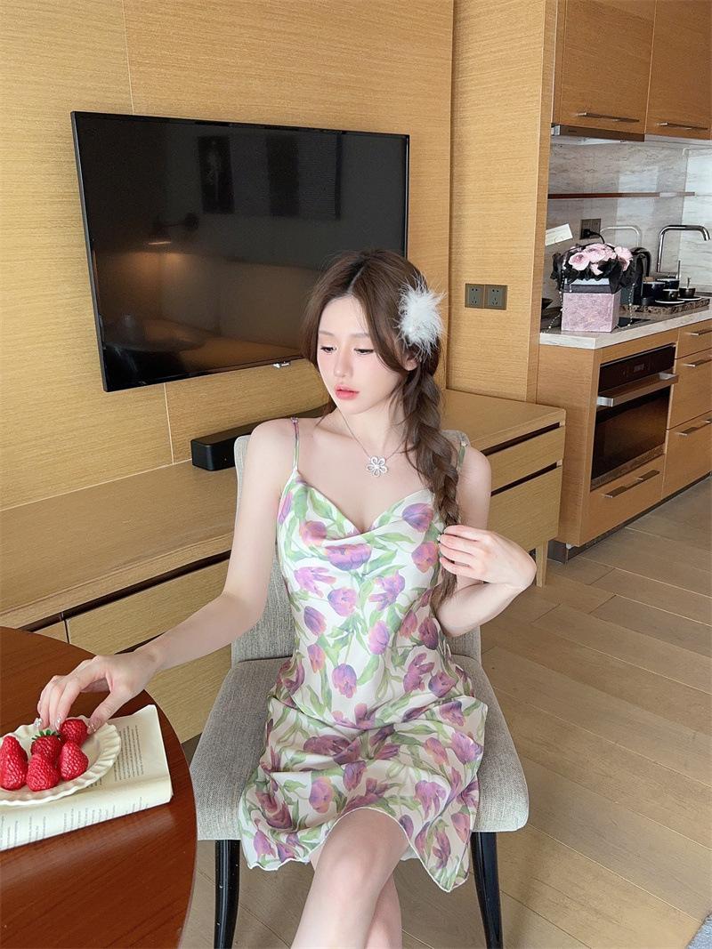Camisón sexy con cuello halter para mujer, estampado de seda hielo, Pure Desire, con tirantes, primavera 2024, ropa de hogar nueva, transfronteriza