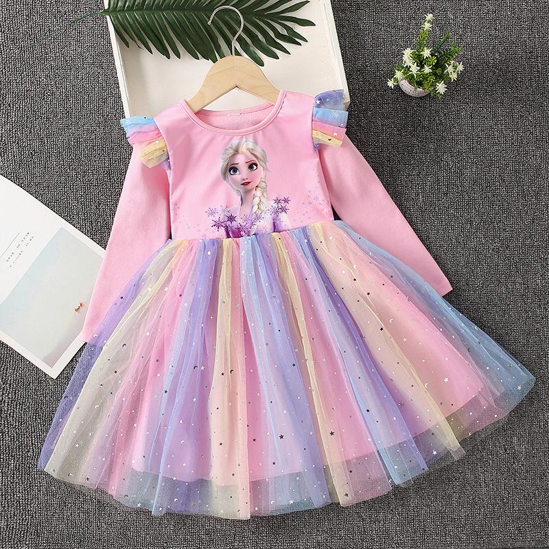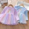 Vestido para niña, novedad de 2024, vestido de princesa Elsa para niña, vestido de bebé de manga larga, vestido infantil de primavera y otoño.