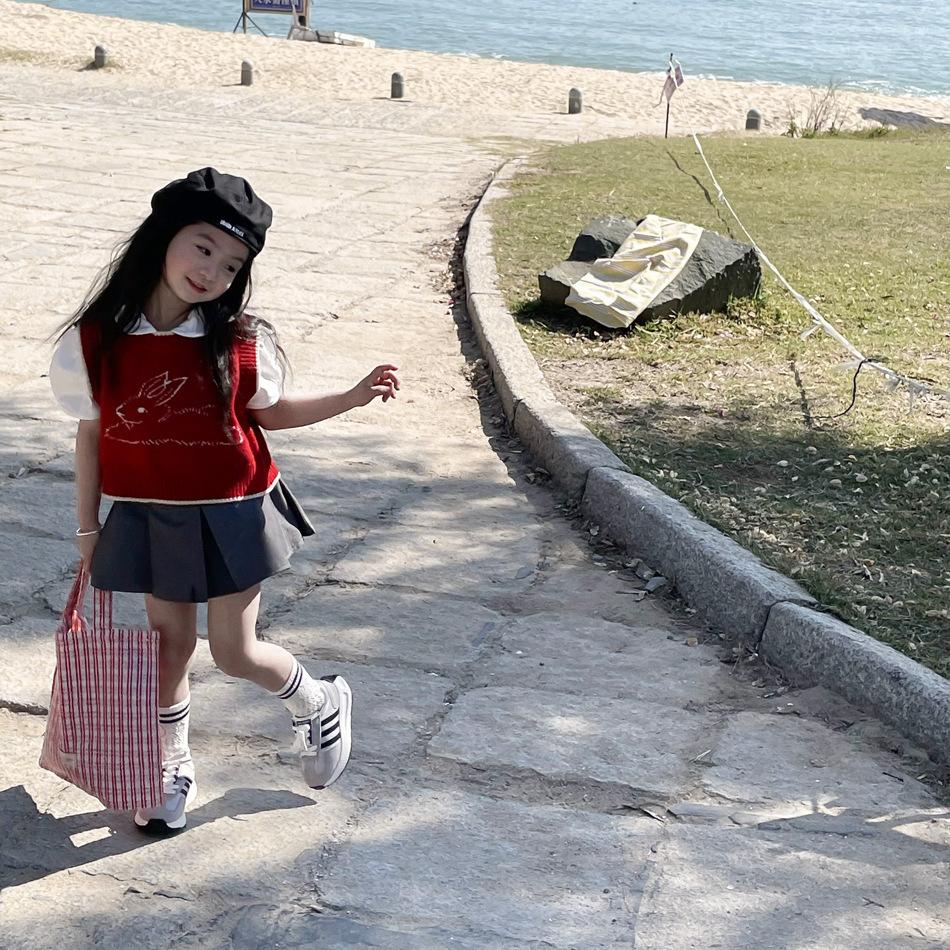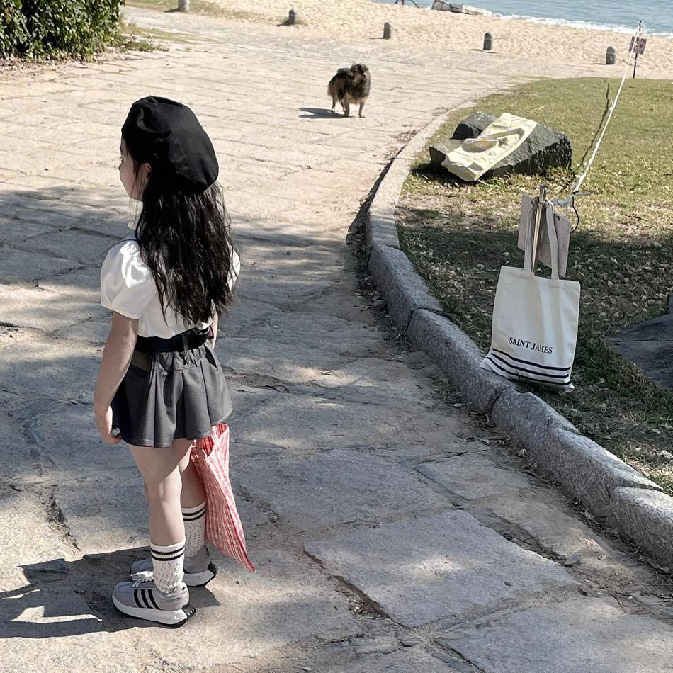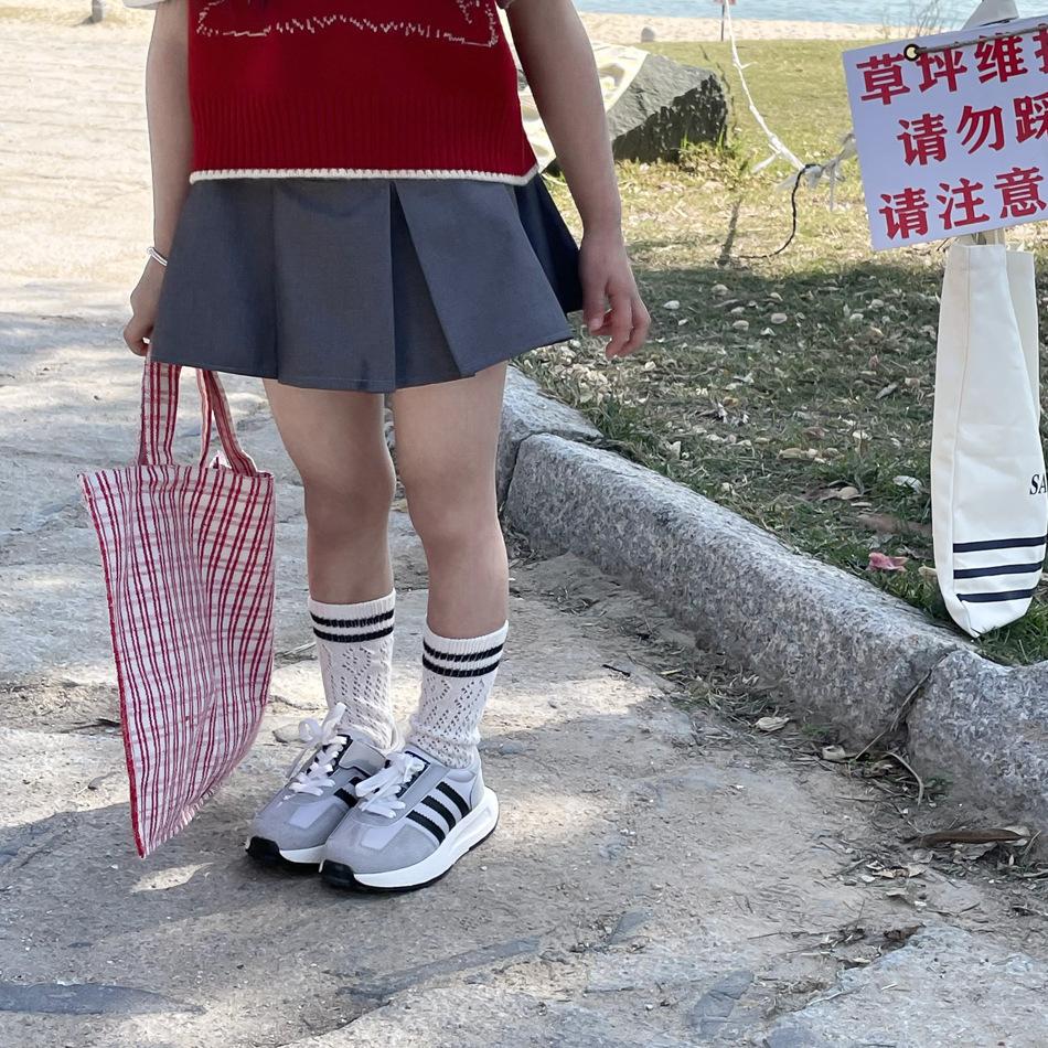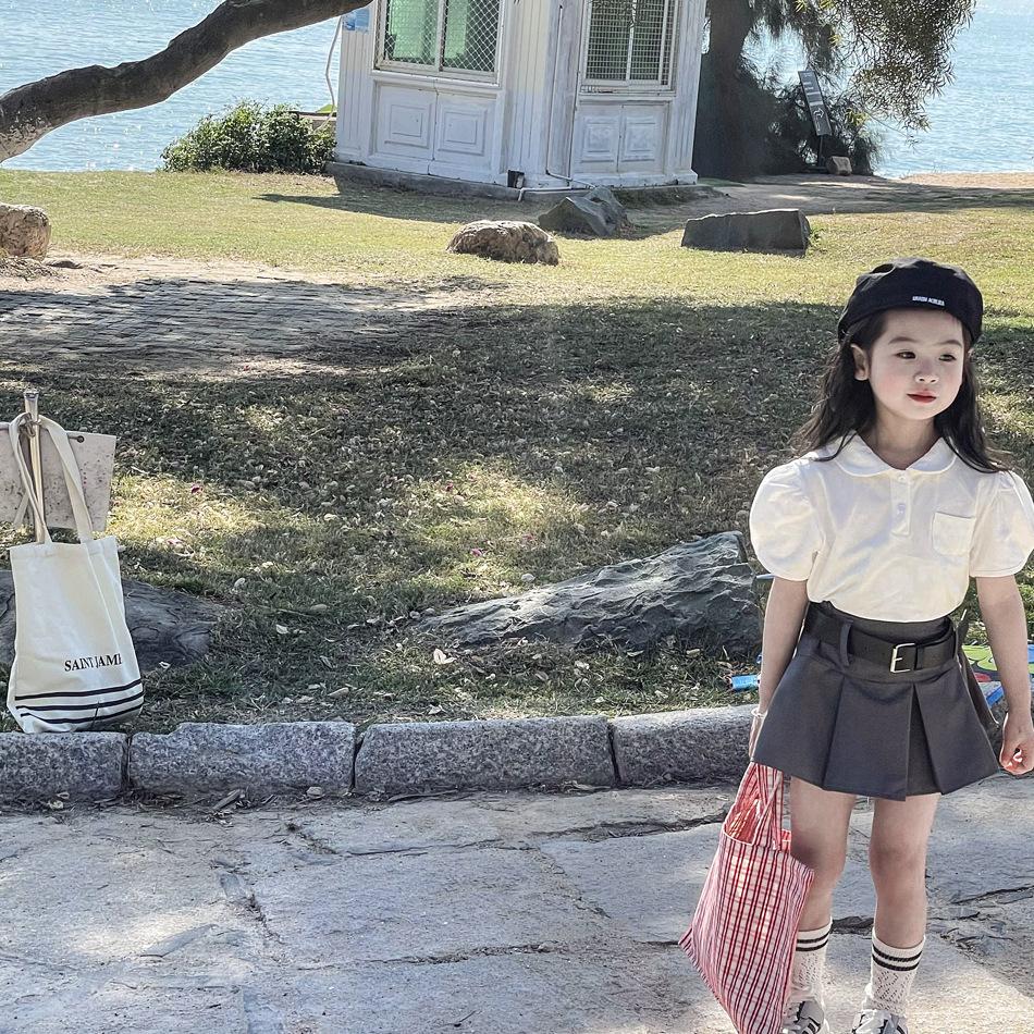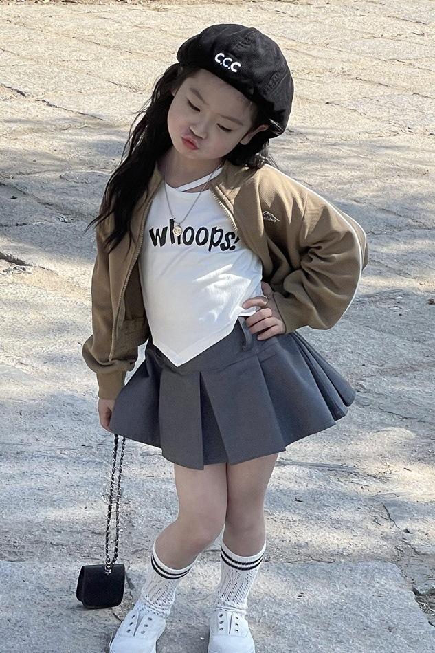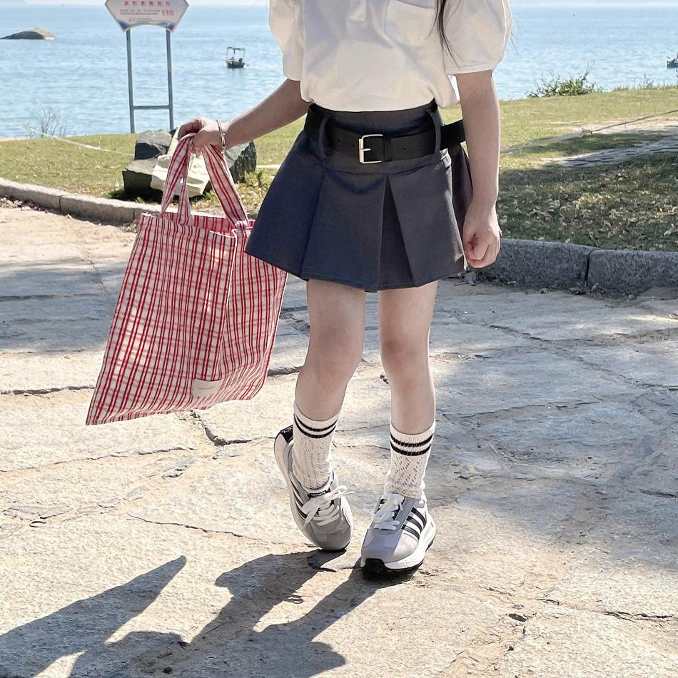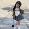 Falda Plisada Nueva de Primavera y Verano 2024 para Niñas Estilo Coreano Color Puro Niña Bebé Cintura Alta Línea A Falda Paraguas Traje Falda