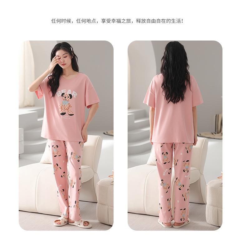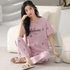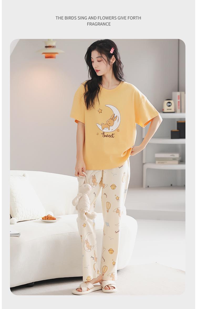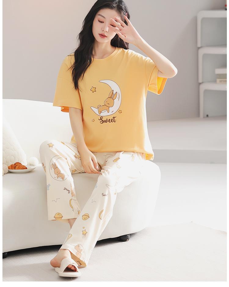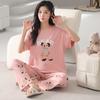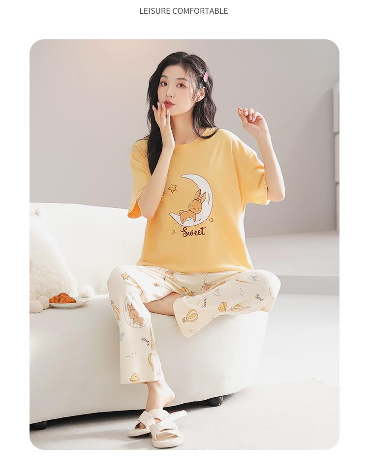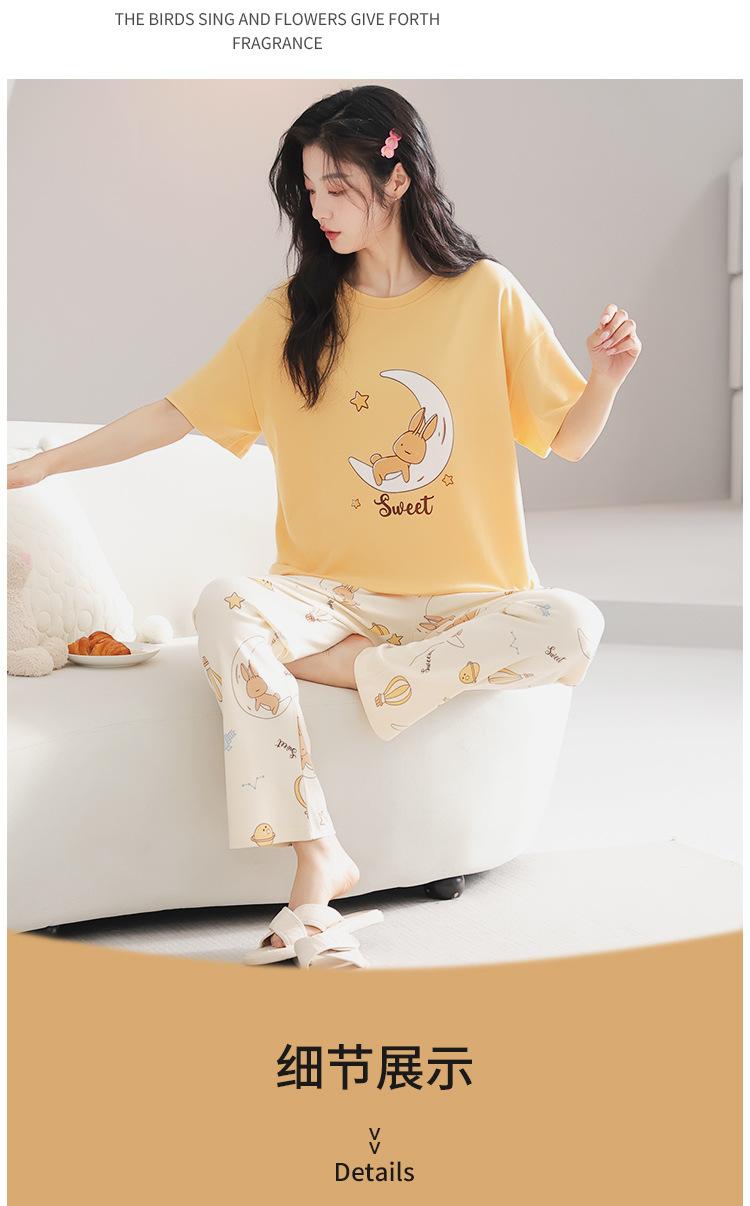 Pijama de algodón para mujer, pantalones de manga corta, cuello redondo, holgado, para exteriores, ropa de casa, traje sencillo