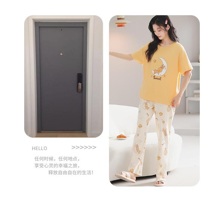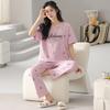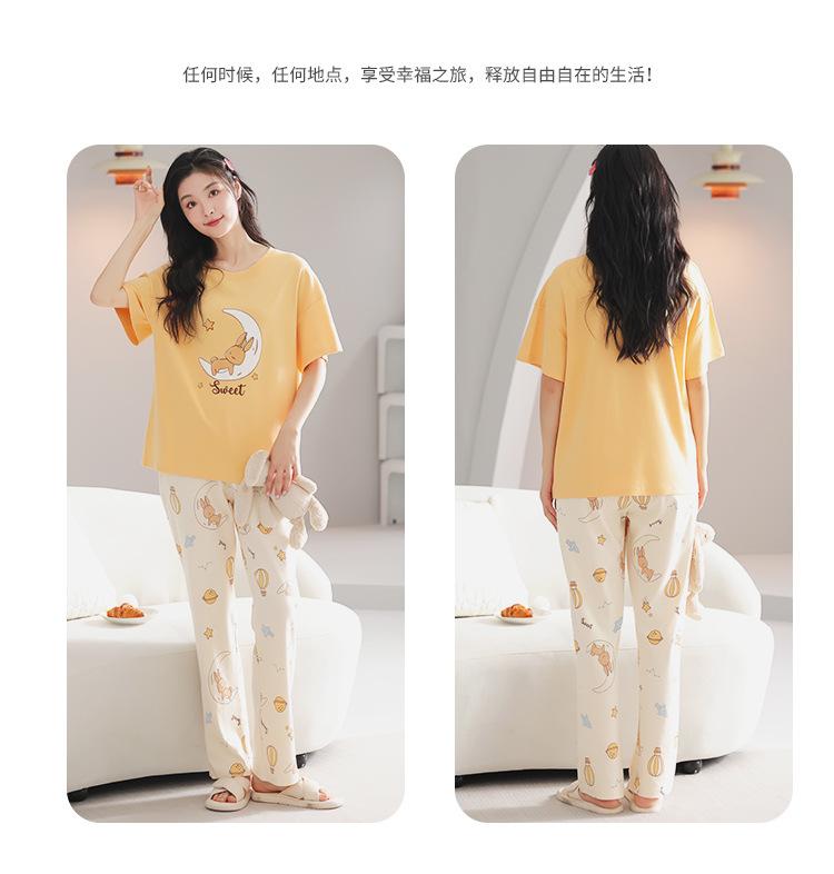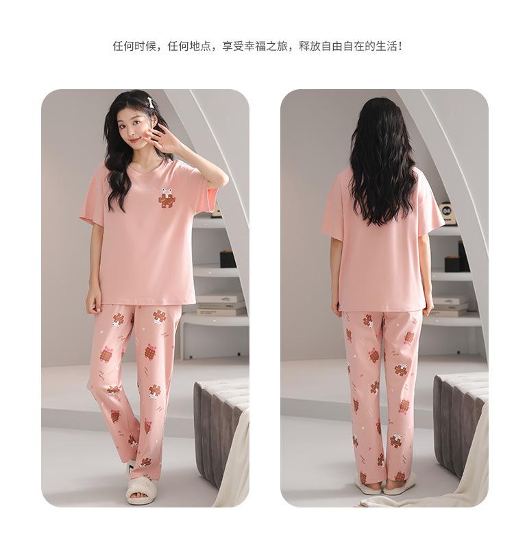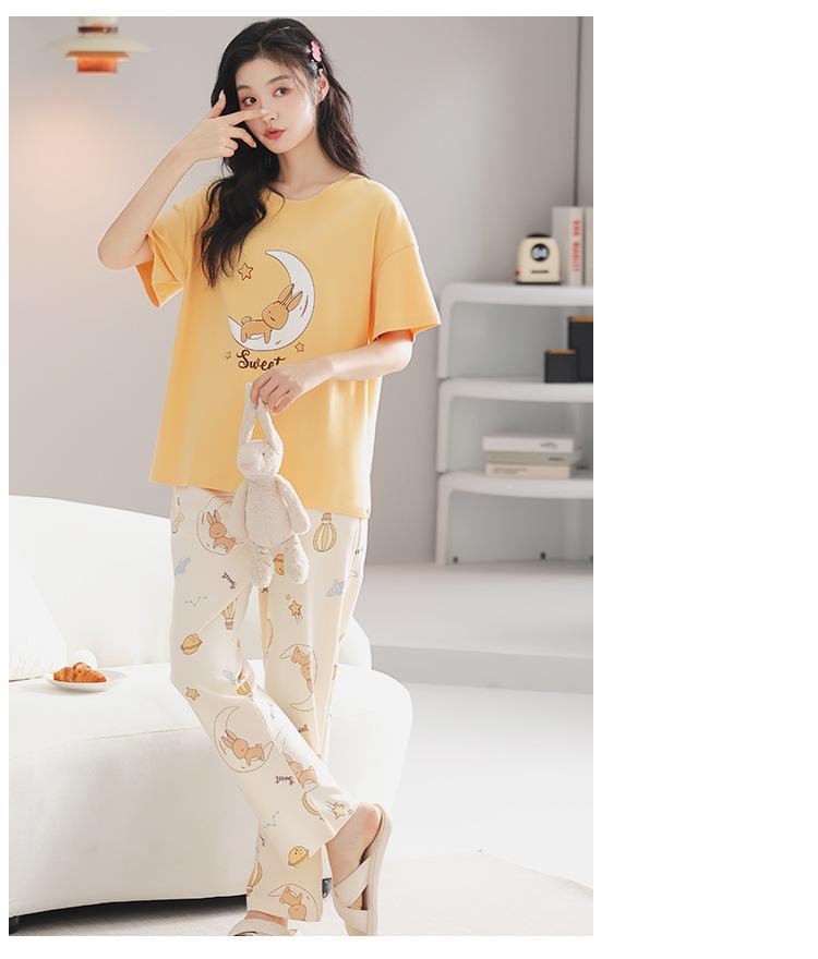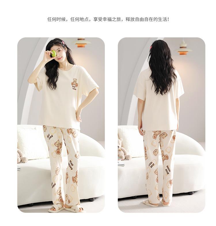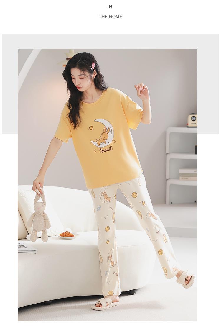 Pijama de algodón para mujer, pantalones de manga corta, cuello redondo, holgado, para exteriores, ropa de casa, traje sencillo
