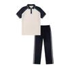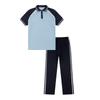 Blue Short Sleeve Top, creamy-white short-sleeved top, dark blue long pants, Blue Short Sleeve suit, creamy-wh...
