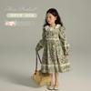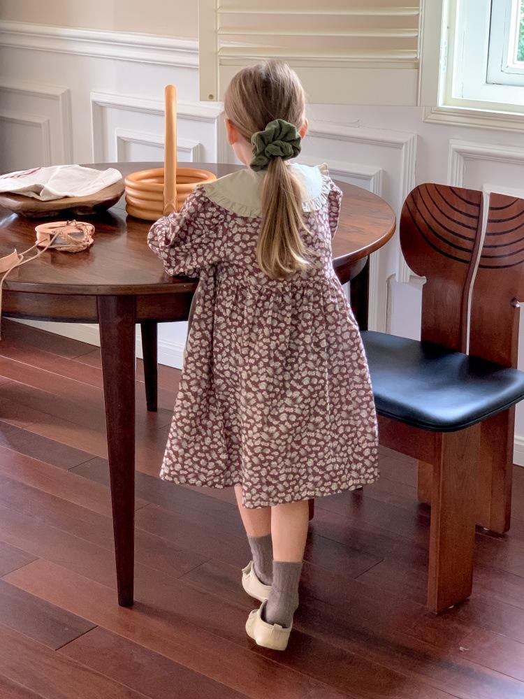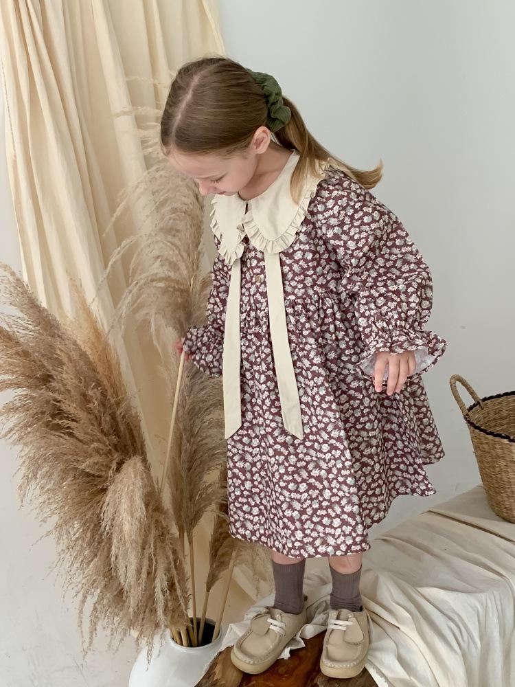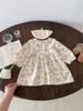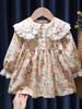 Vestido de princesa floral de estilo occidental para niña, primavera 2024, nuevo vestido de estilo coreano con solapa grande para bebé, vestido para niña pequeña