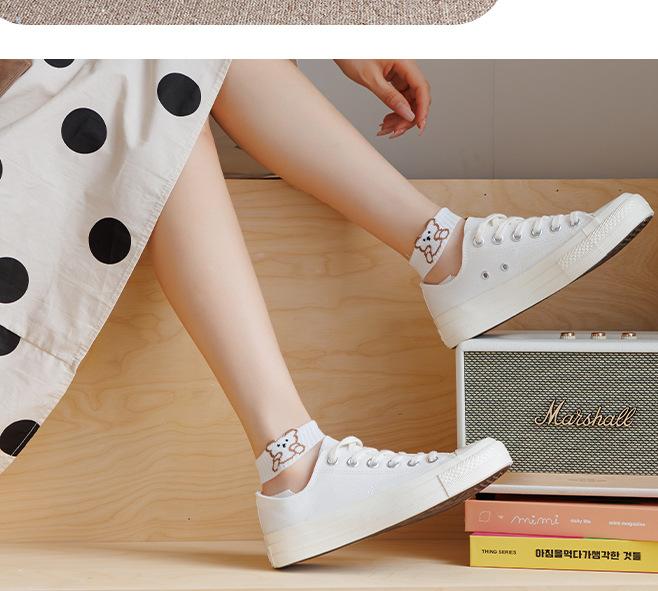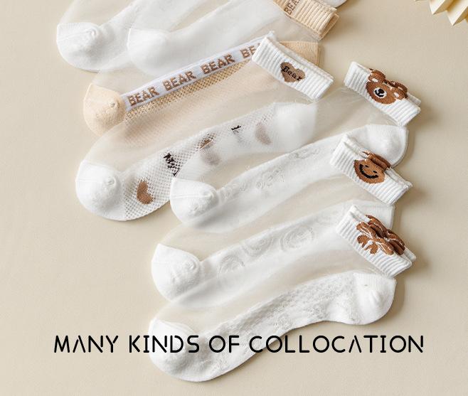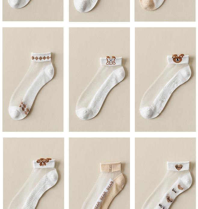 24 calcetines nuevos de primavera y verano para mujer, calcetines de estilo universitario japonés con dibujos de tarjetas, calcetines invisibles de seda de vidrio con boca baja para barco.