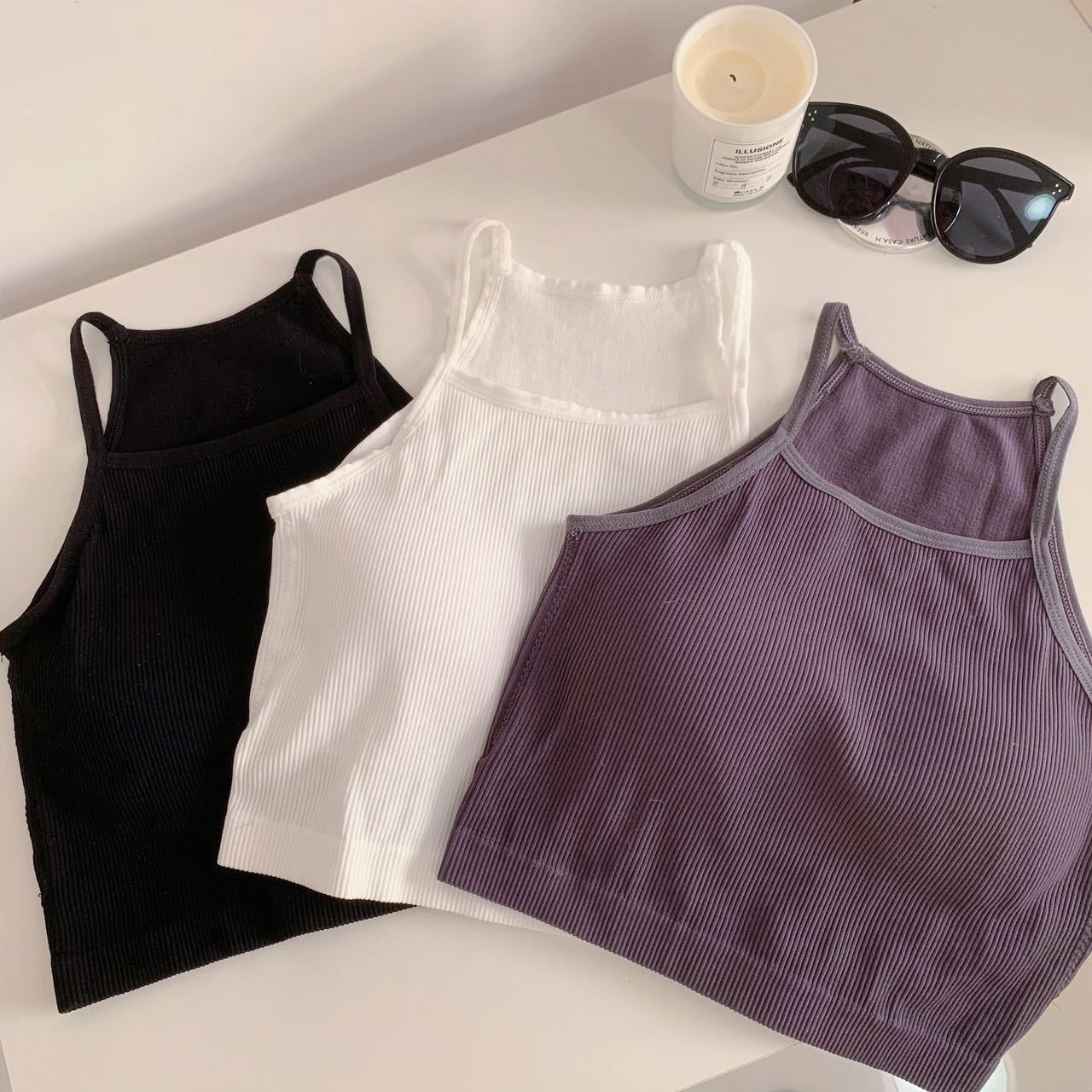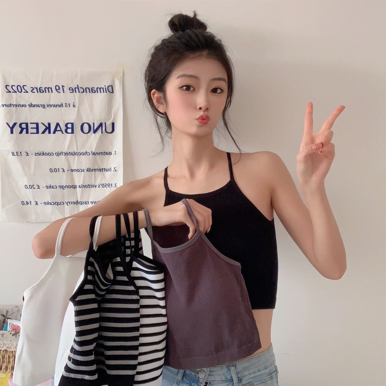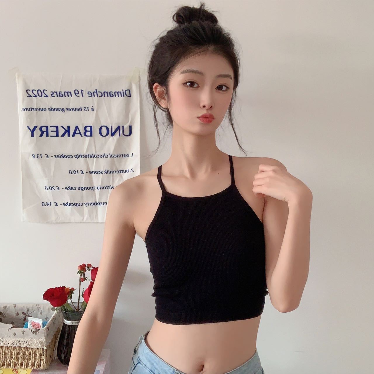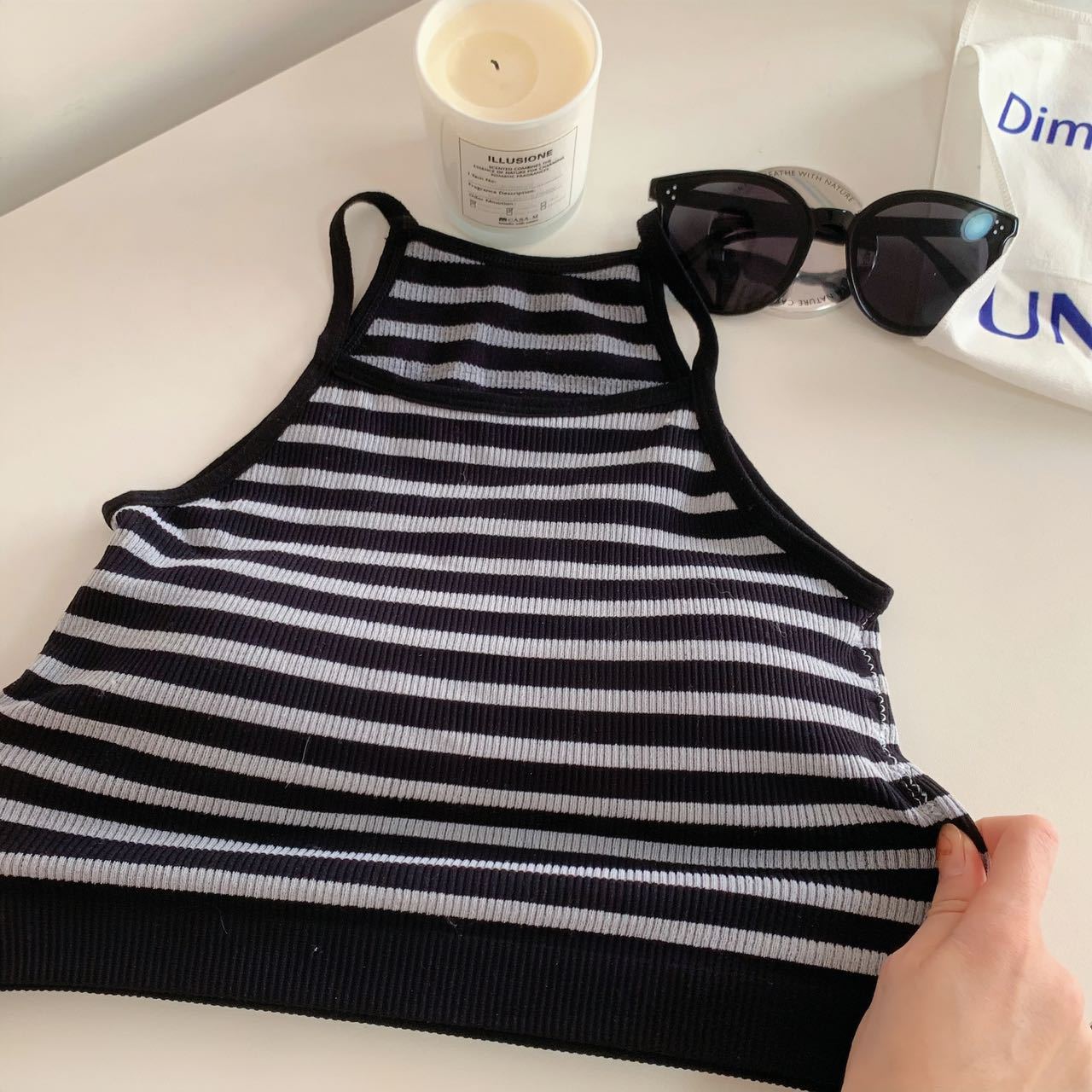 Chaleco de mujer Spice Girl con tirantes finos y almohadilla para el pecho, estilo primavera 2023, con una hermosa espalda y una camisa básica corta a rayas.