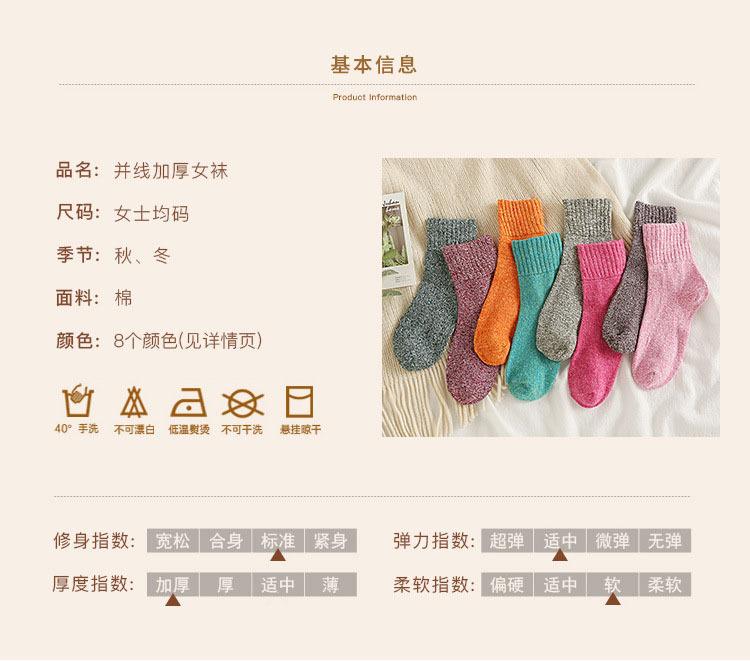 Calcetines de otoño e invierno para mujer, estilo japonés, de algodón grueso y paralelo, de color sólido, con aguja gruesa.