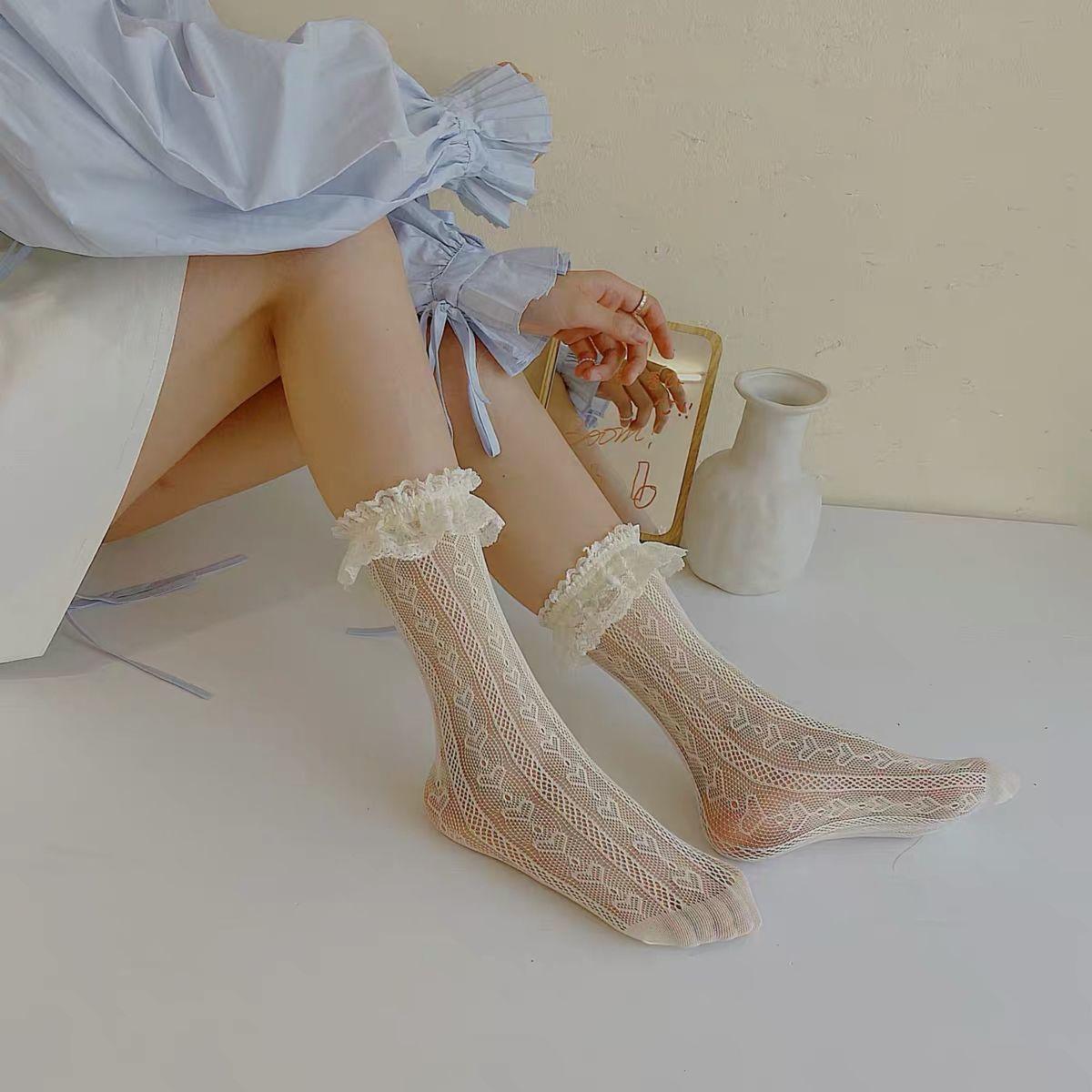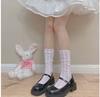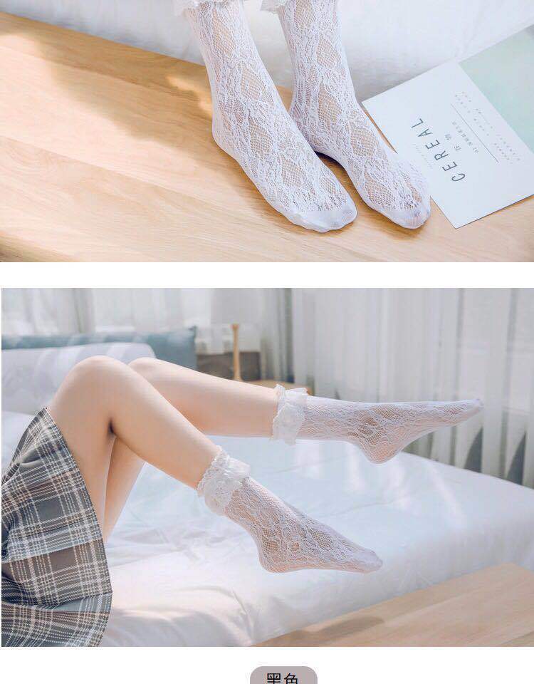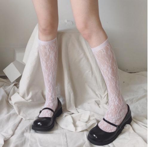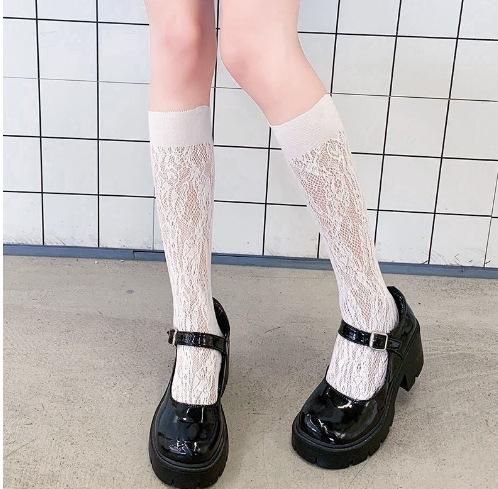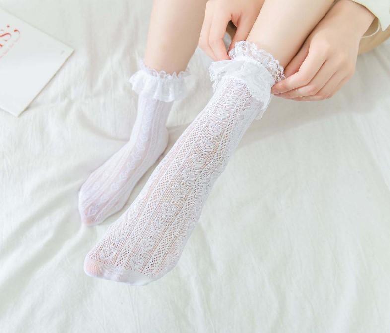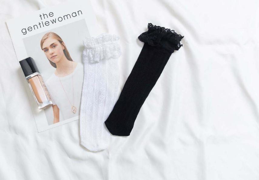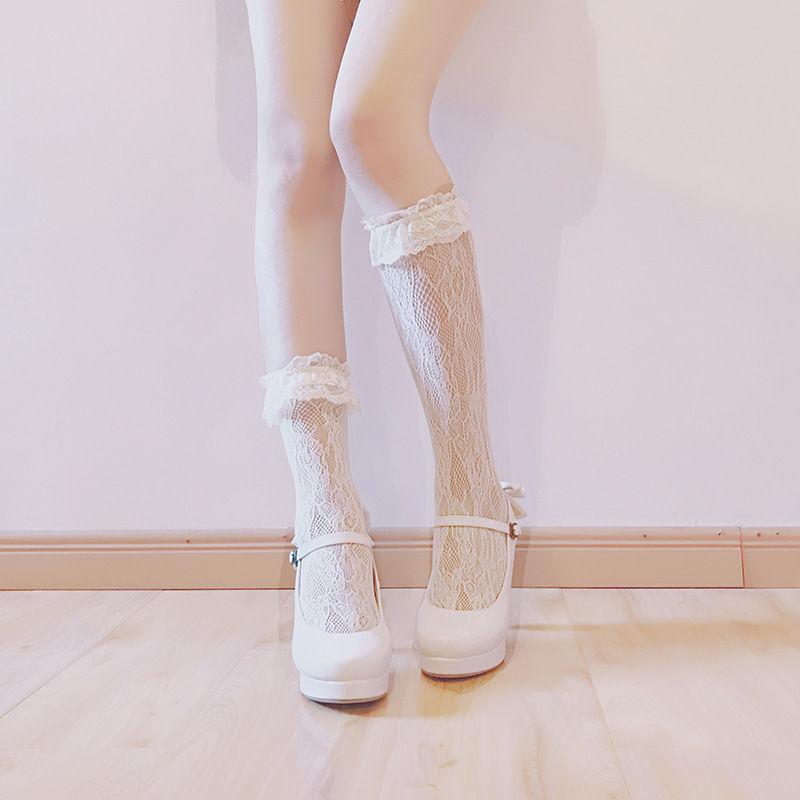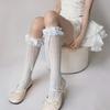 Calcetines de Lolita de encaje blanco hasta la pantorrilla para mujer, calcetines de media pierna de encaje japonés JK, medias de Lolita de media pierna