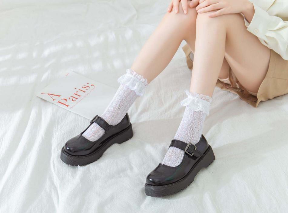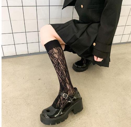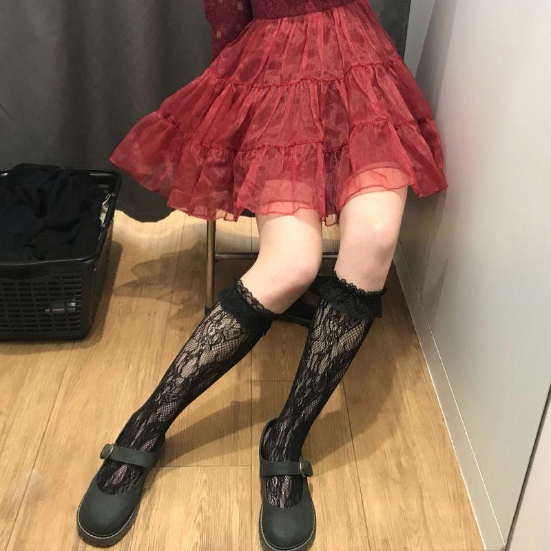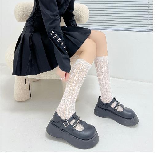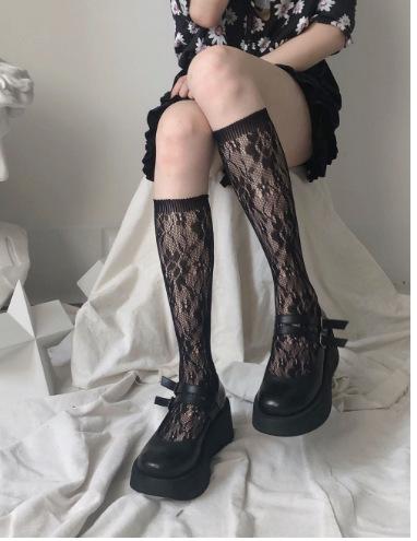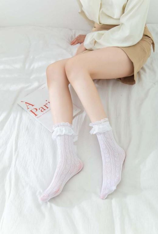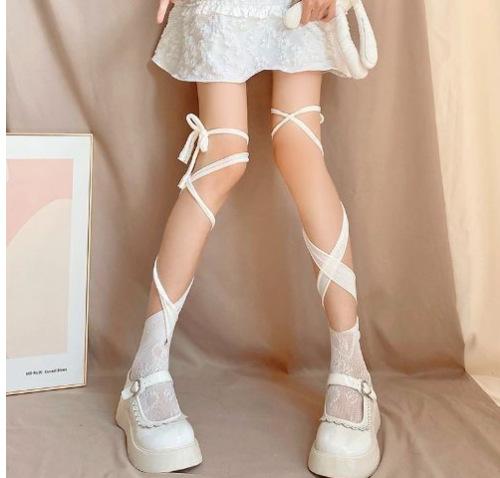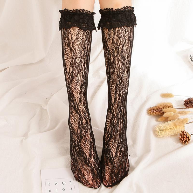 Calcetines de Lolita de encaje blanco hasta la pantorrilla para mujer, calcetines de media pierna de encaje japonés JK, medias de Lolita de media pierna