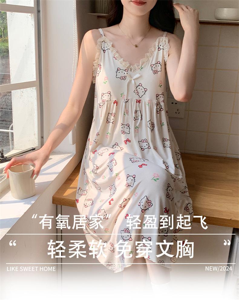 El Nuevo Camisón de Amazon para Mujer de la Tienda Antigua, de Tirantes, Verano, Fino, Dulce y Cómodo, Se Puede Usar Fuera del Traje (con almohadilla para el pecho)
