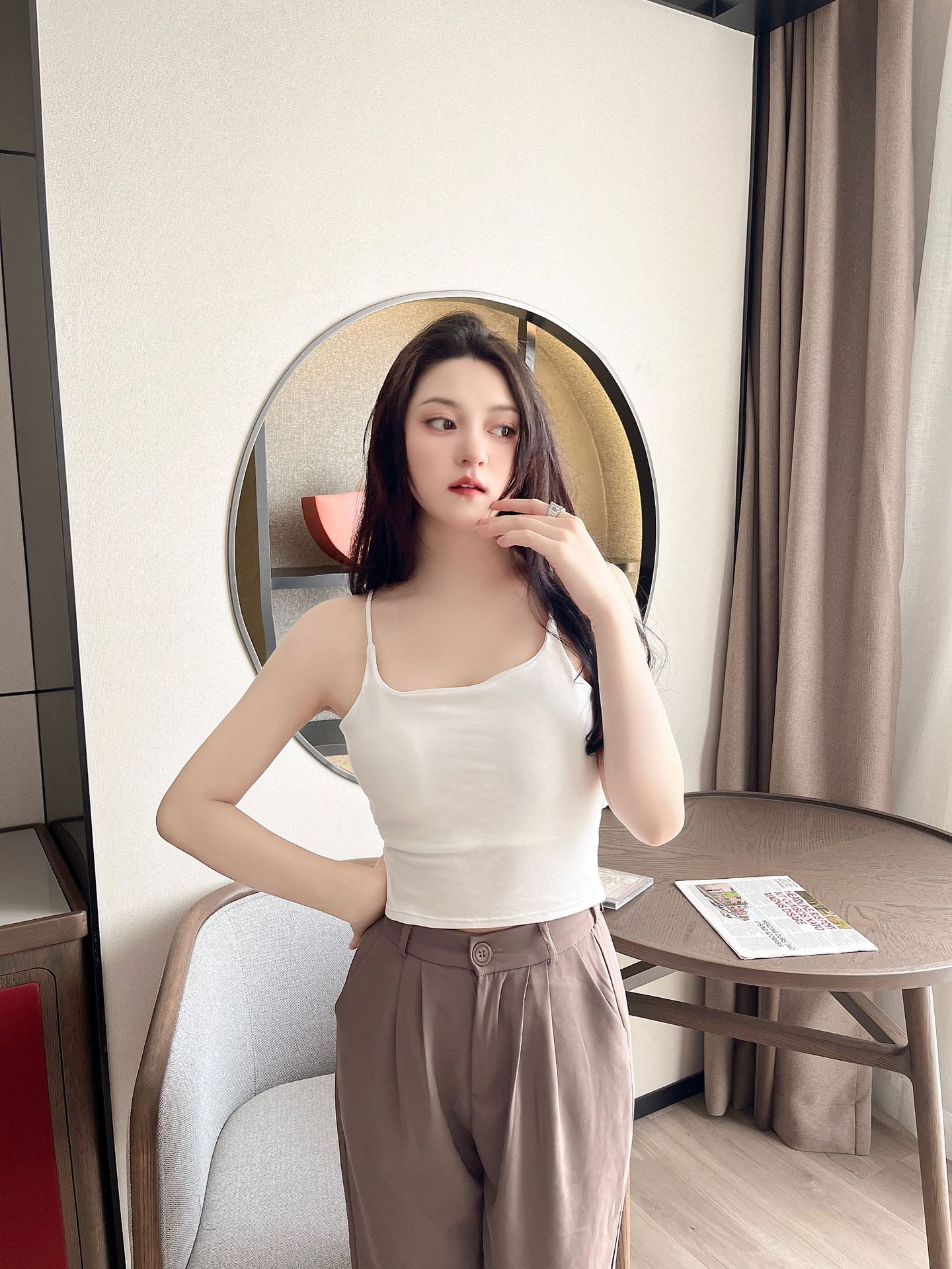 Camisola de Algodón Puro de Verano con Espalda Hermosa para Mujer, Sin Mangas, Interior, Íntimos para Fondo, Slim, Top Exterior, Copa Integrada