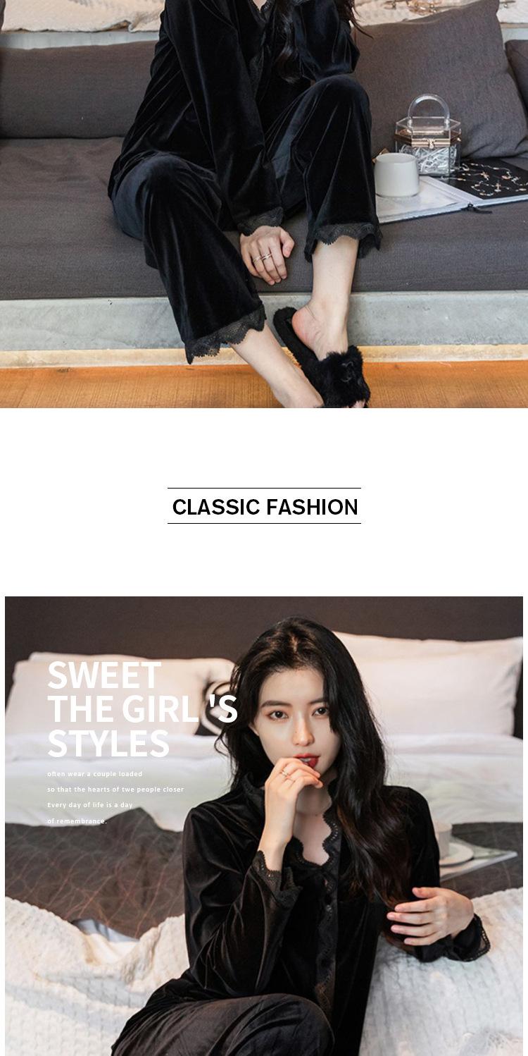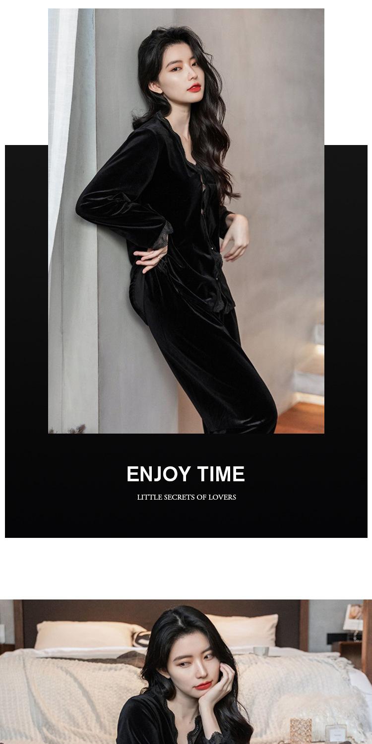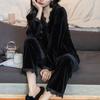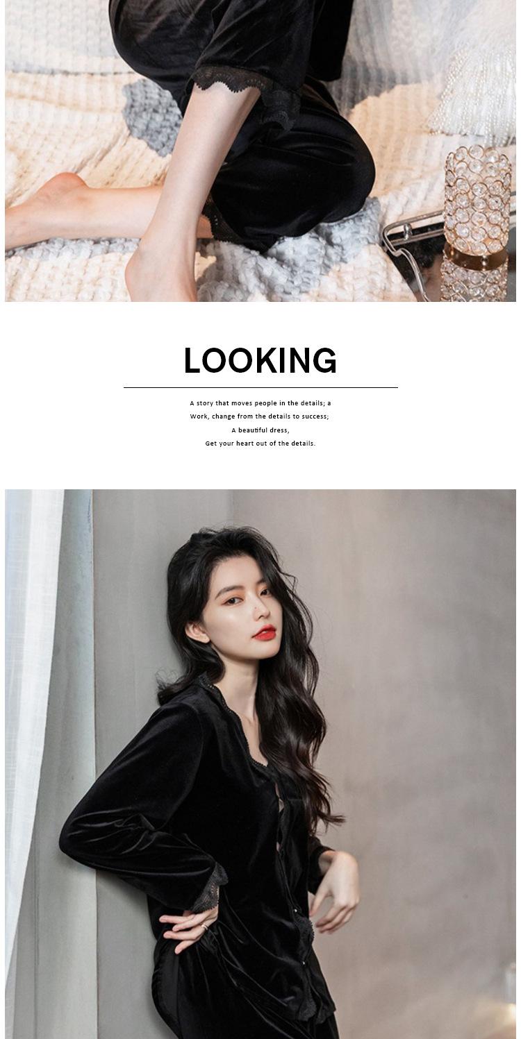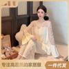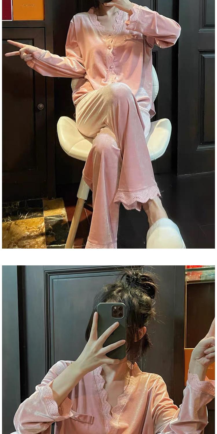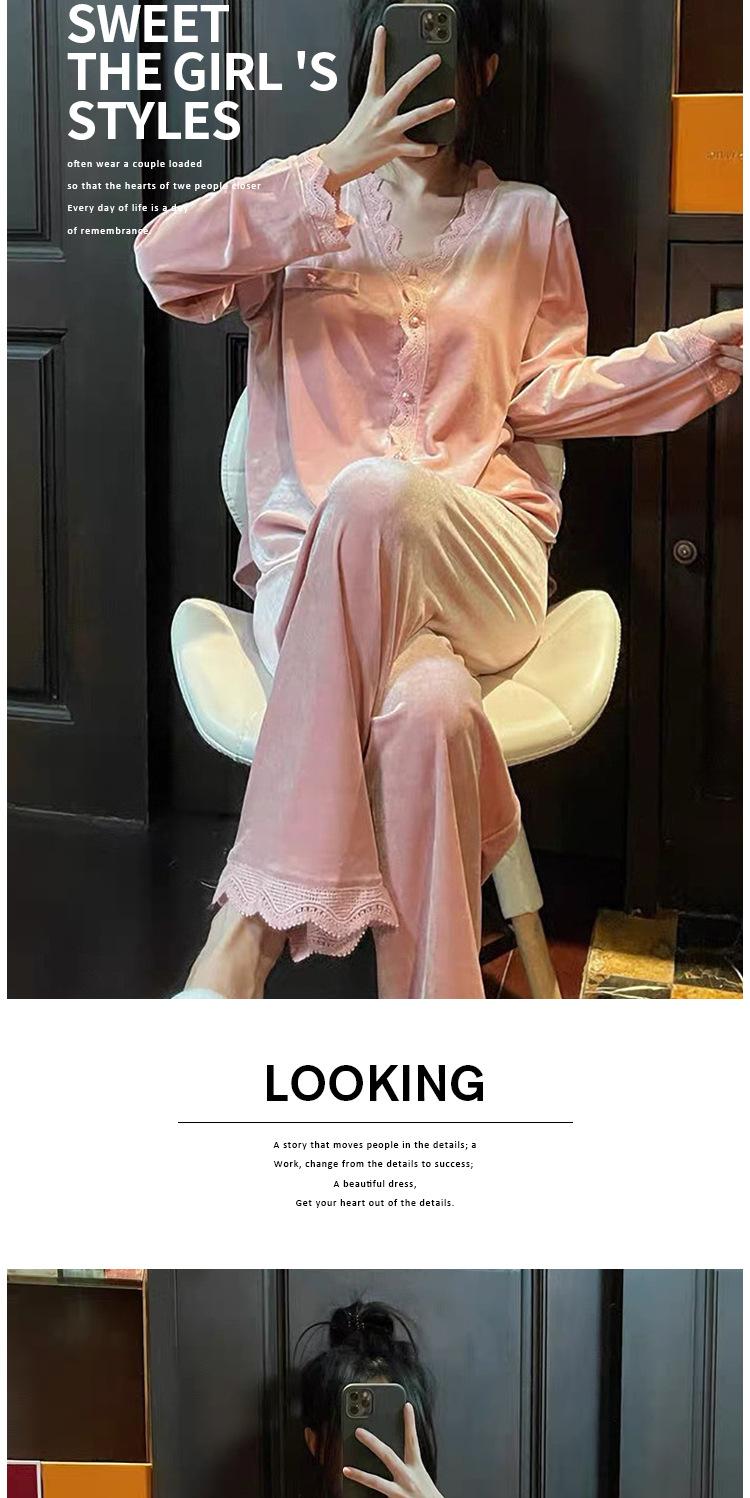 Otoño e invierno nuevo rojo en línea traje de pijama de terciopelo dorado para mujer moda de alta gama temperamento encaje cárdigan ropa de casa al por mayor