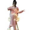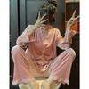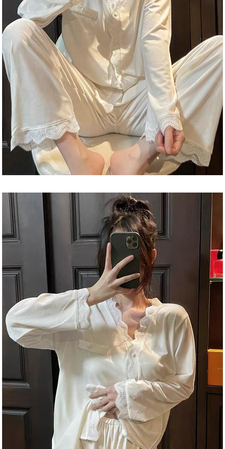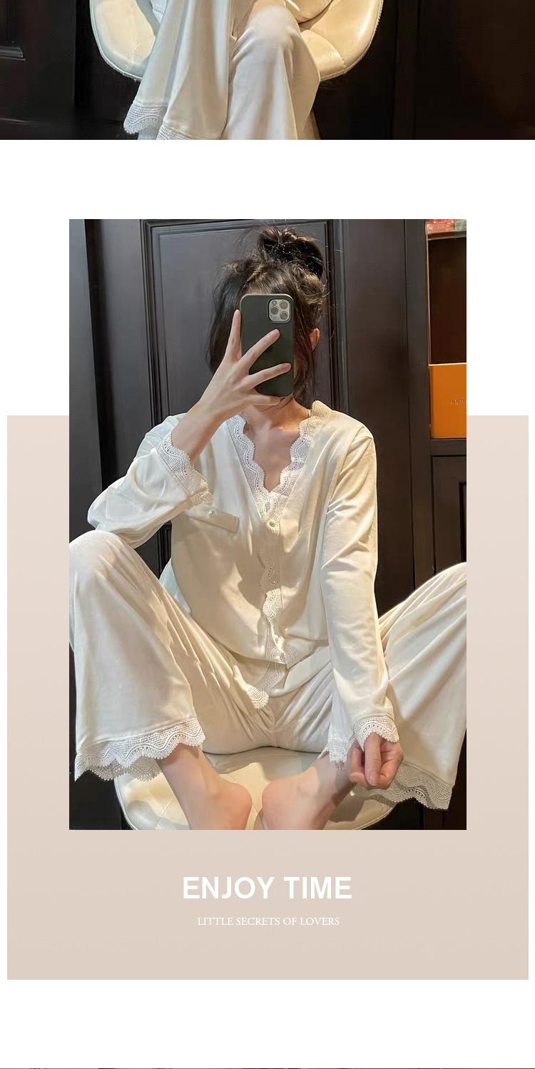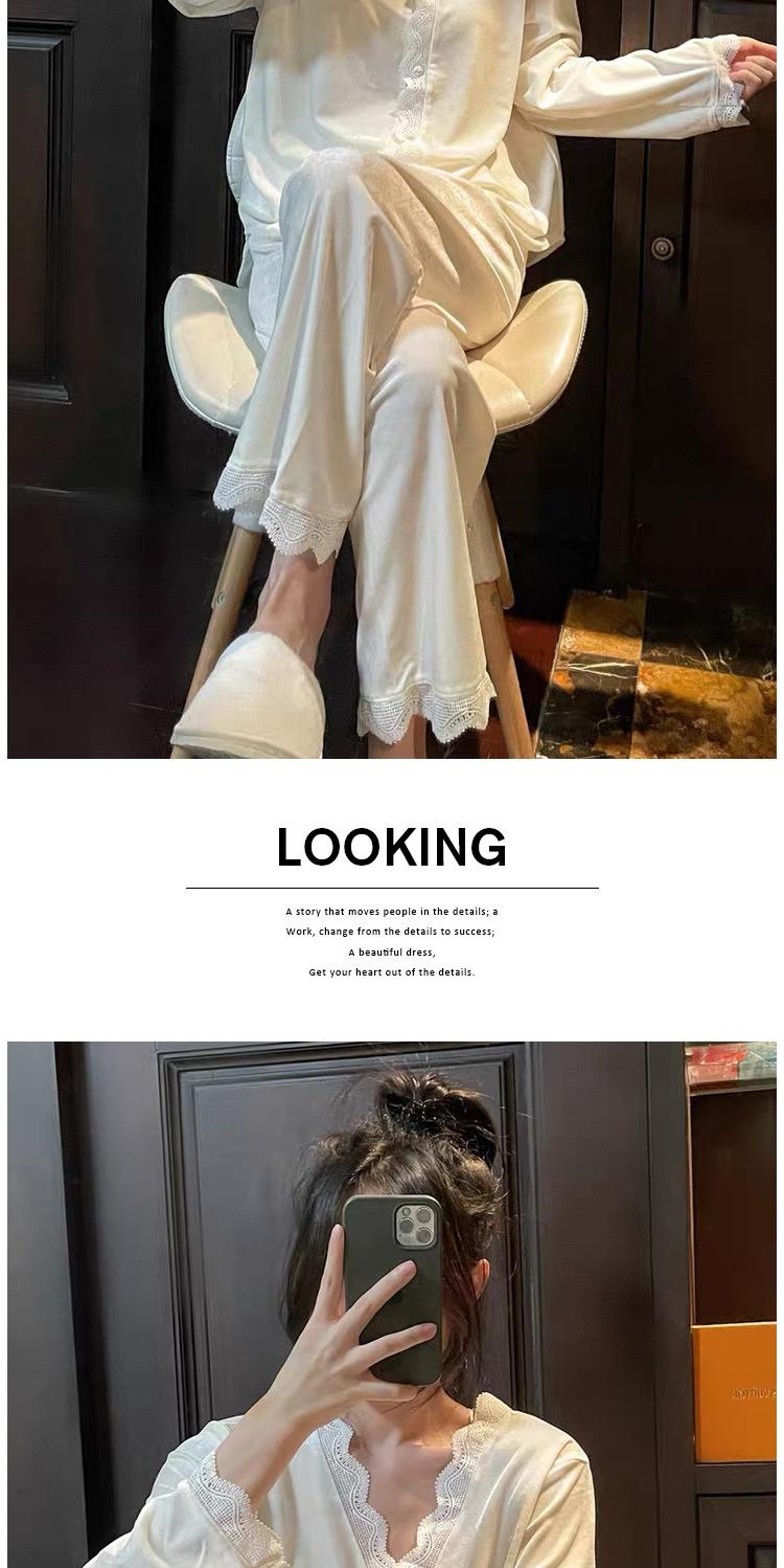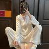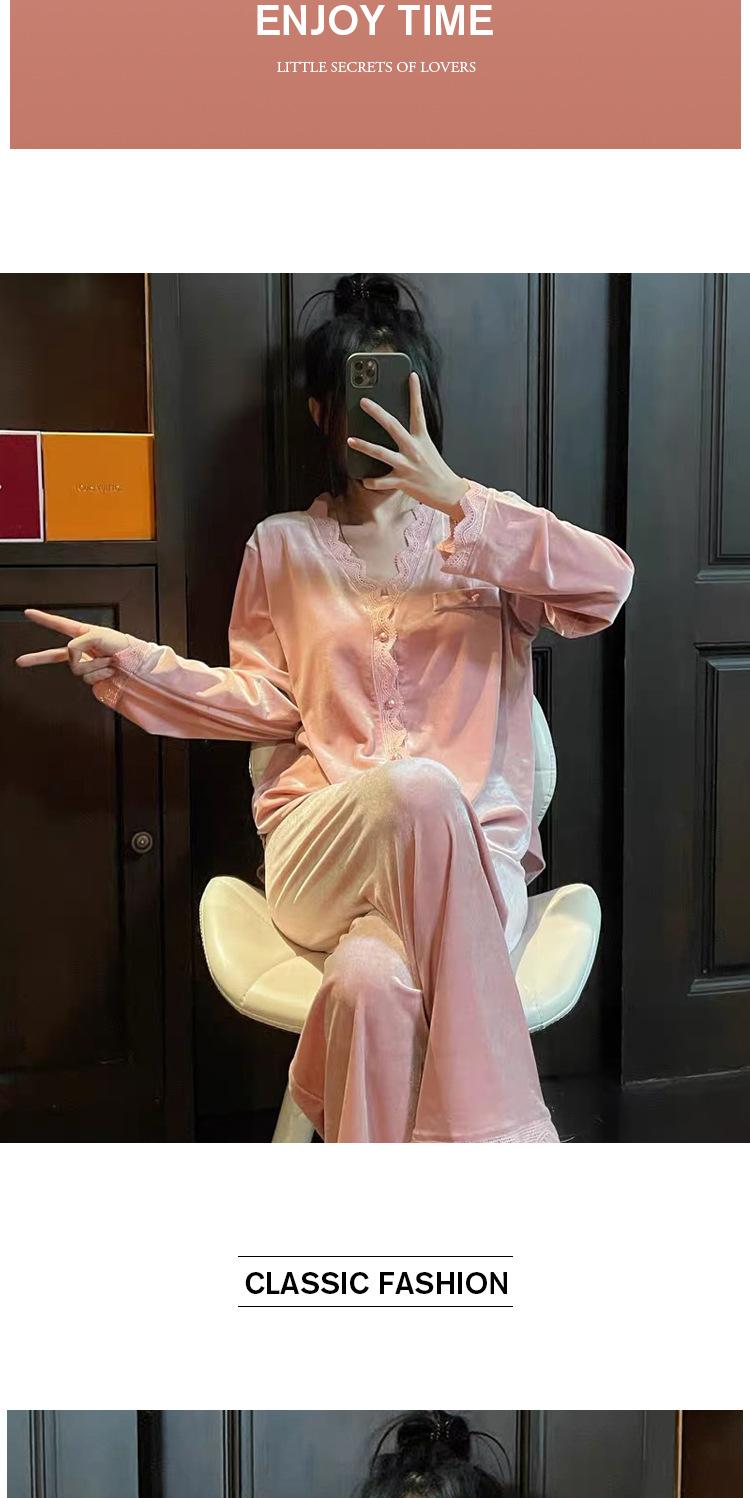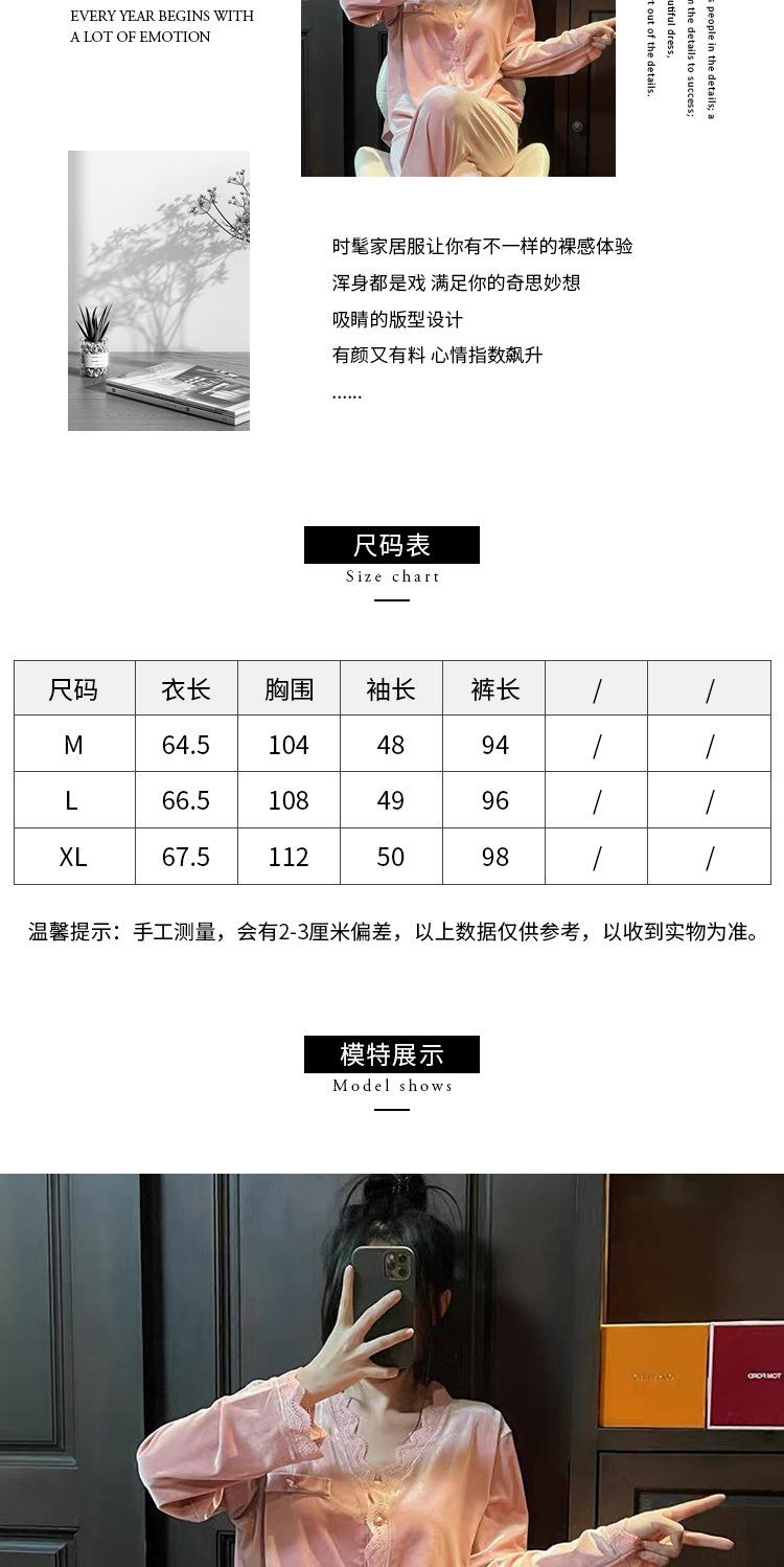 Otoño e invierno nuevo rojo en línea traje de pijama de terciopelo dorado para mujer moda de alta gama temperamento encaje cárdigan ropa de casa al por mayor