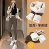 Otoño e invierno Nuevos leggings grises de azafata para mujer, pantalones de una pieza cálidos acolchados de terciopelo, ropa interior tipo pantimedias