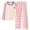 Pijama de algodón para mujer con almohadilla para el pecho, se puede usar al aire libre, jersey de manga larga, pantalones de algodón de estilo coreano de dibujos animados, ropa para el hogar, venta al por mayor de fábrica