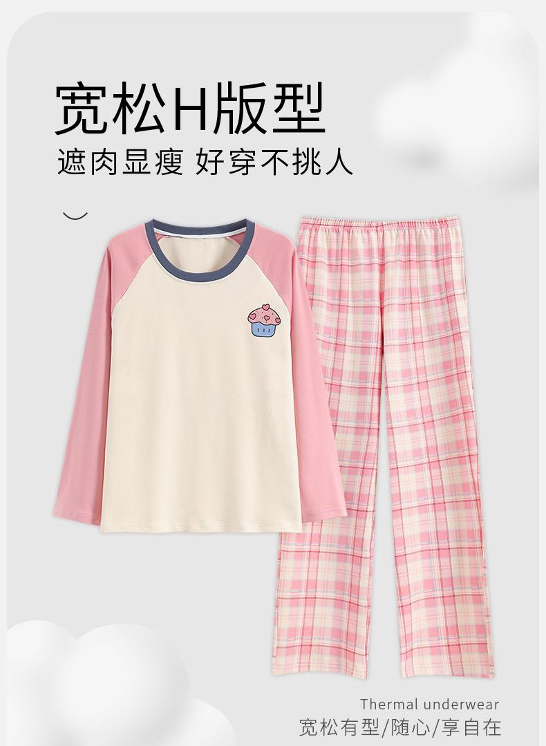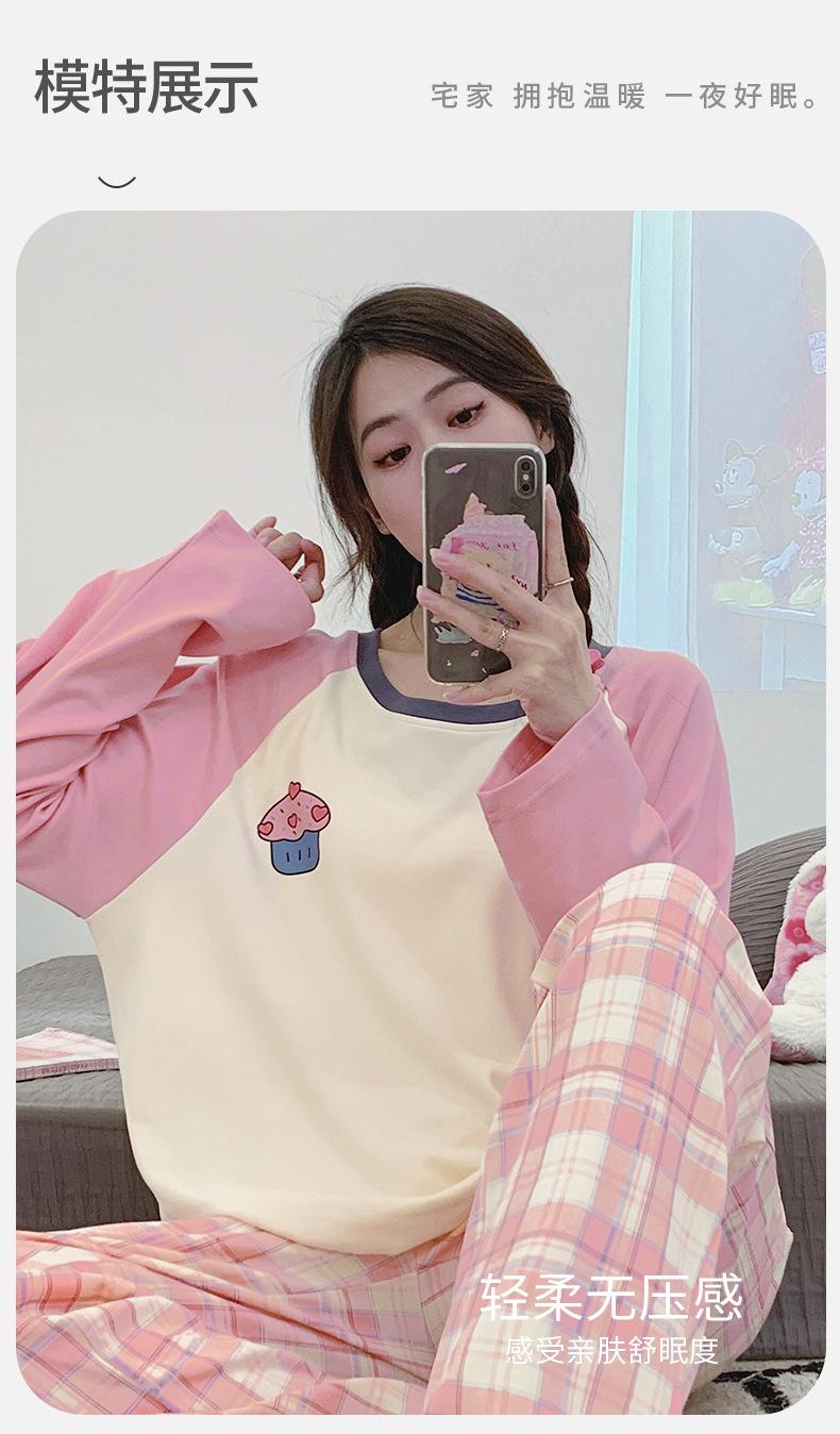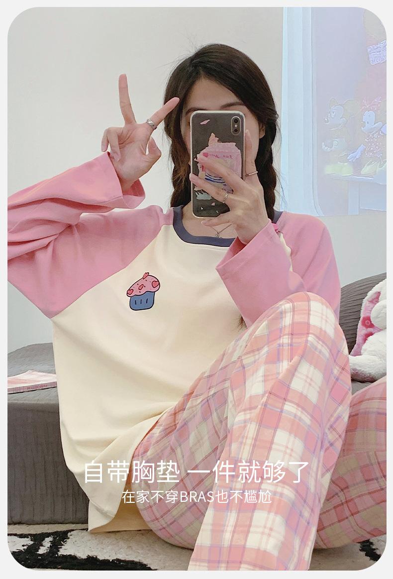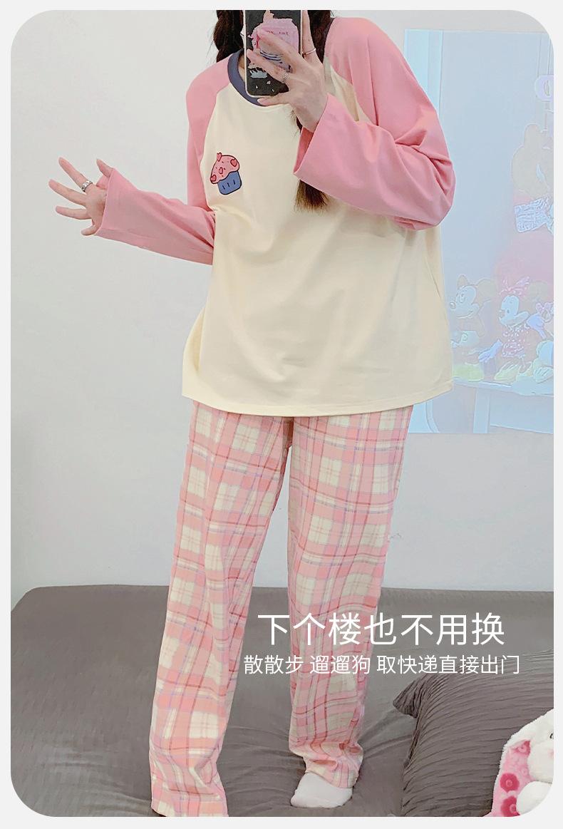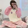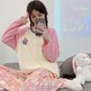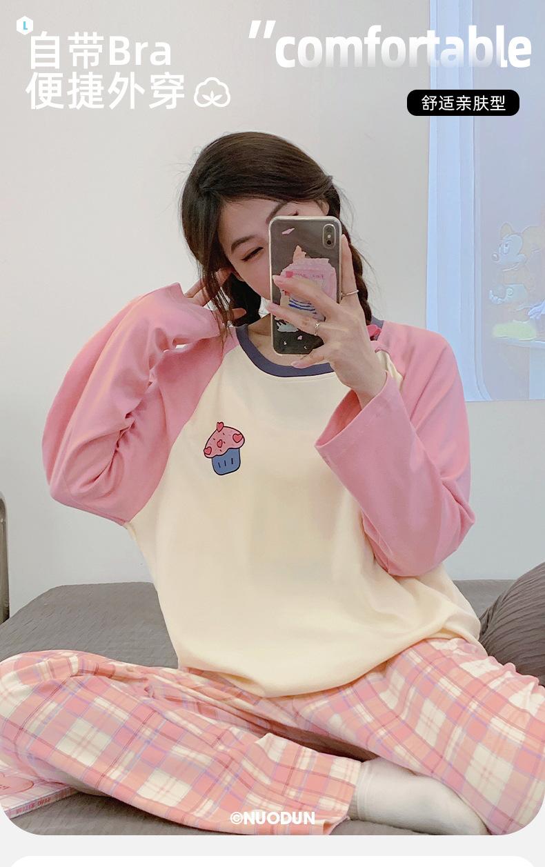 Compra Pijama de algodón para mujer con almohadilla para el pecho, se puede usar al aire libre, jersey de manga larga, pantalones de algodón de estilo coreano de dibujos animados, ropa para el hogar, venta al por mayor de fábrica al por mayor en Joom.pro