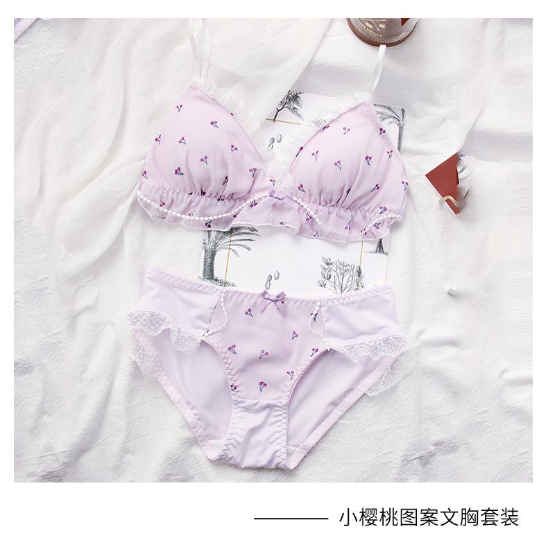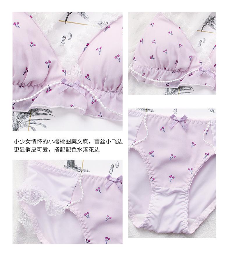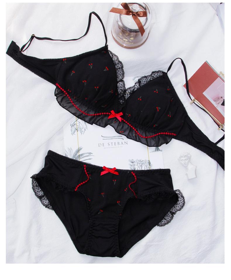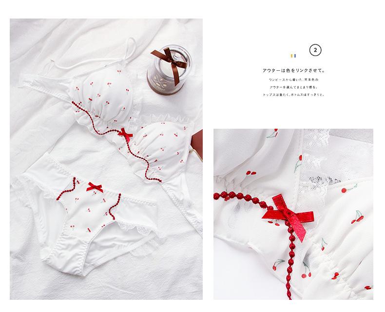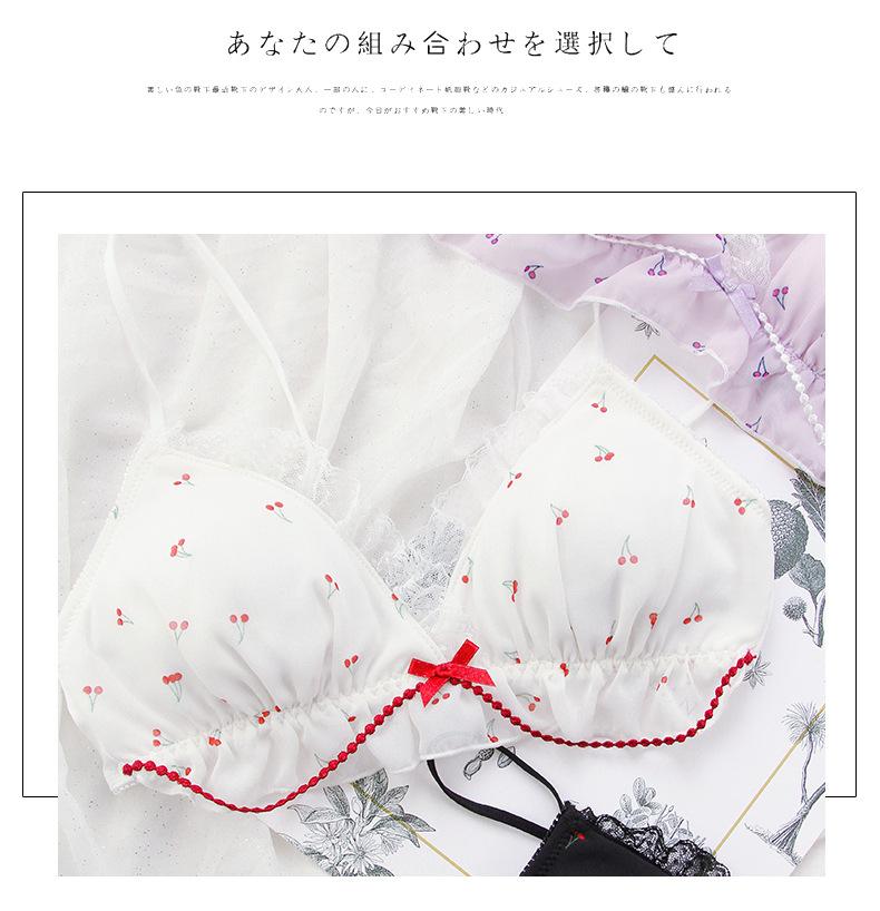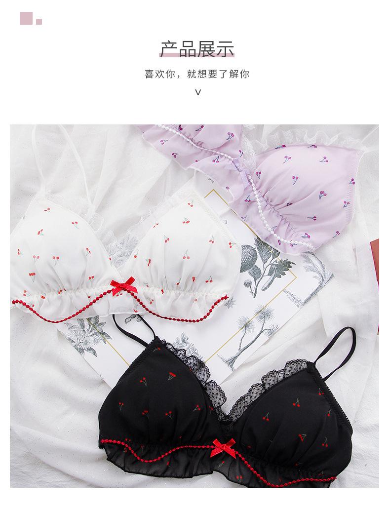 El brasier con estampado de cerezas con un aire juvenil y dobladillo de encaje lo hace más juguetón y lindo