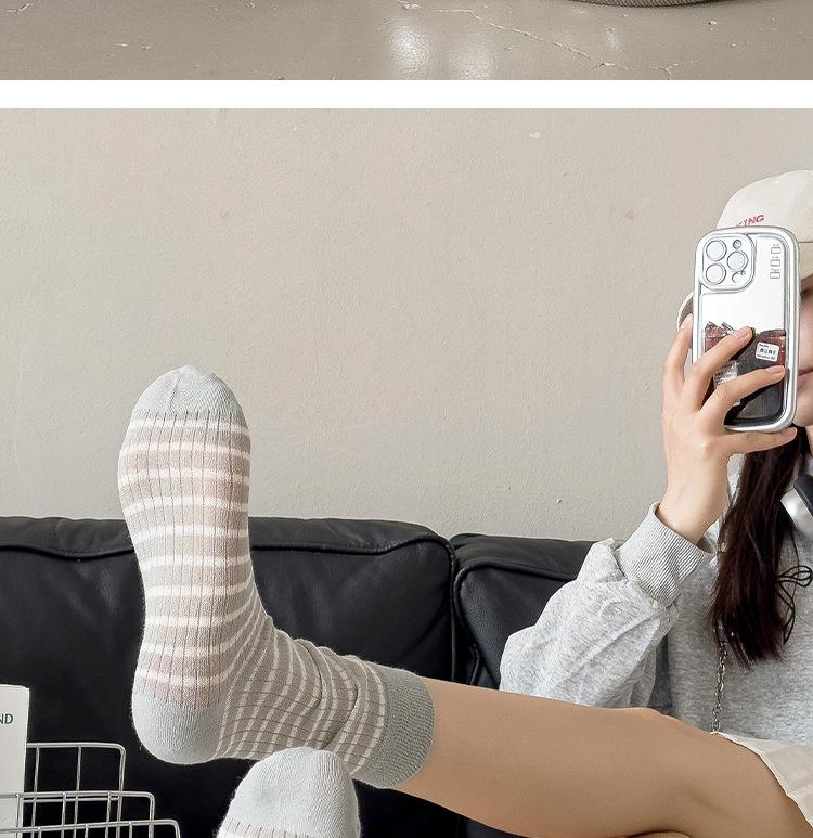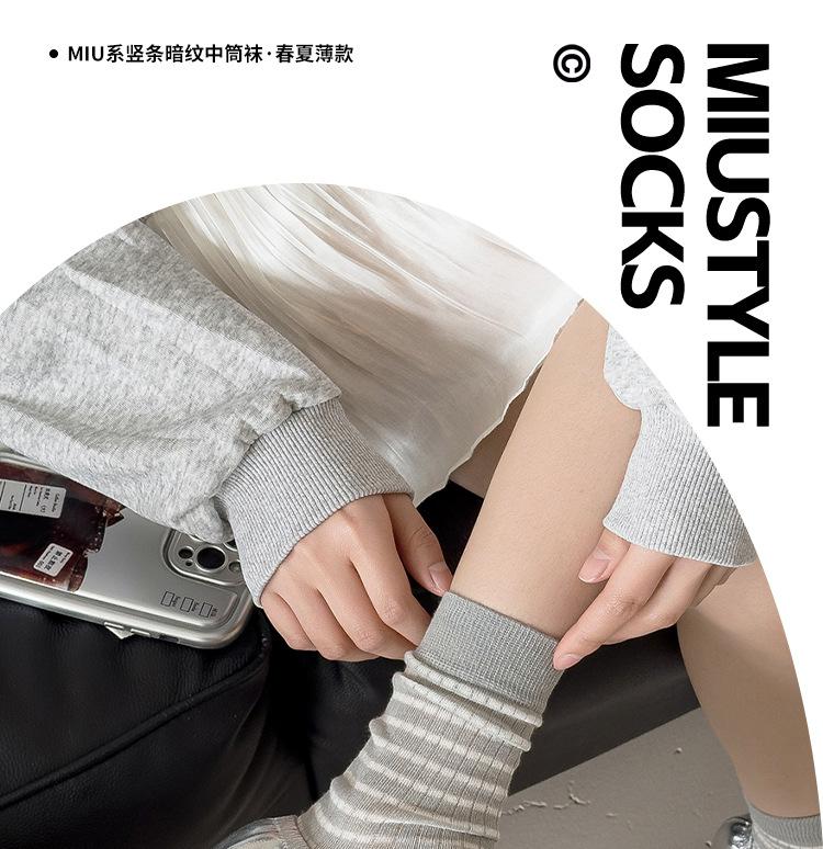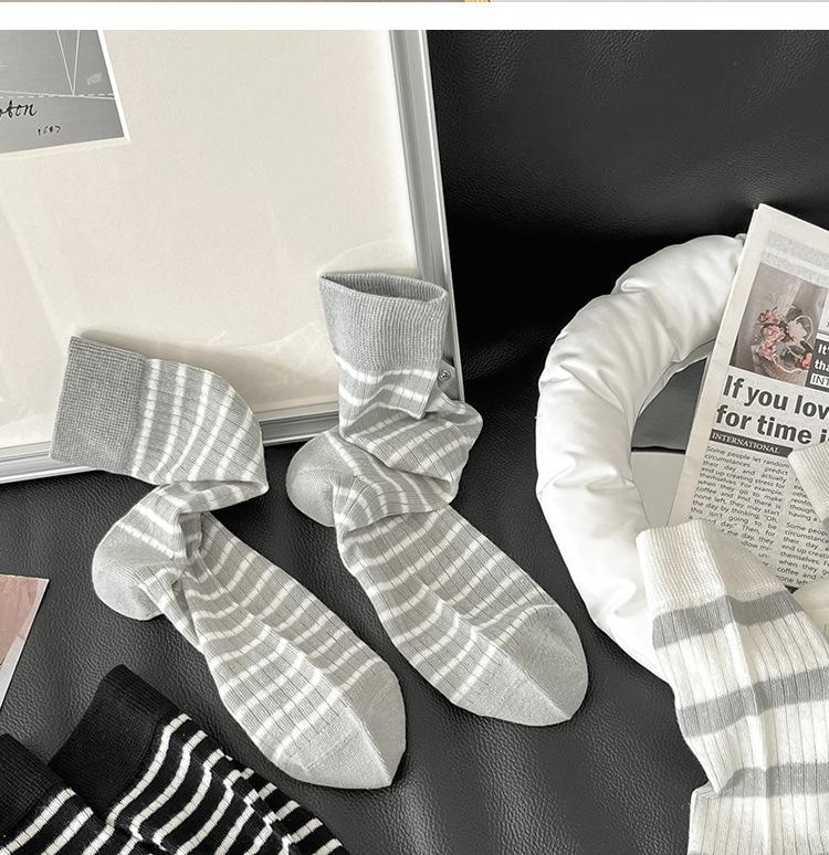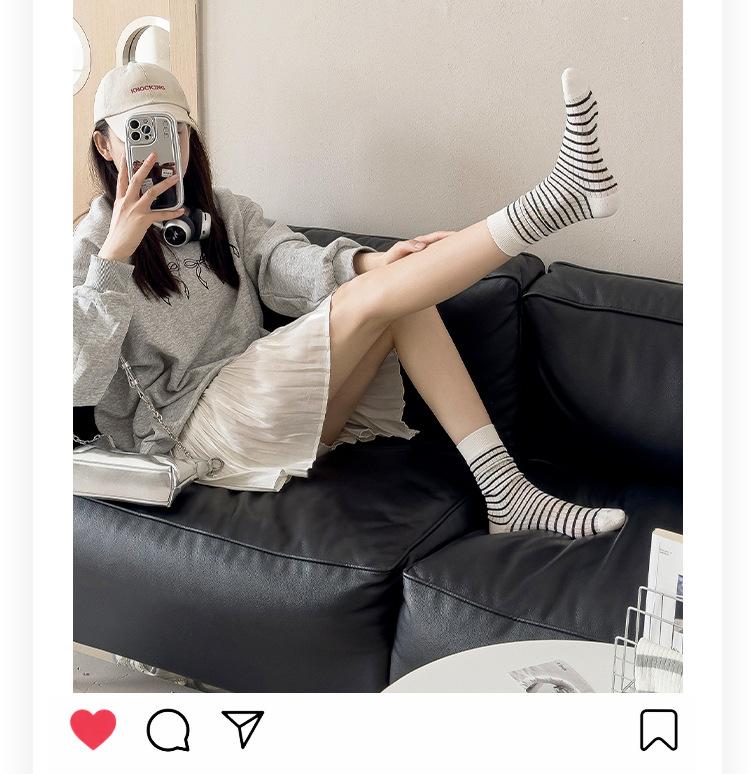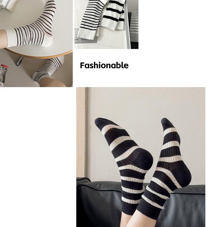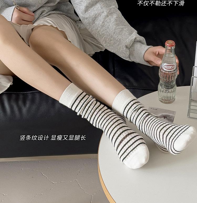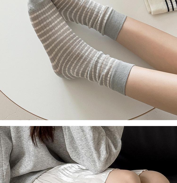 Calcetines de mujer de primavera y verano de algodón fino a rayas de tubo medio calcetines apilados para mujer desodorante absorbente de sudor transpirable calcetines casuales de verano para mujer