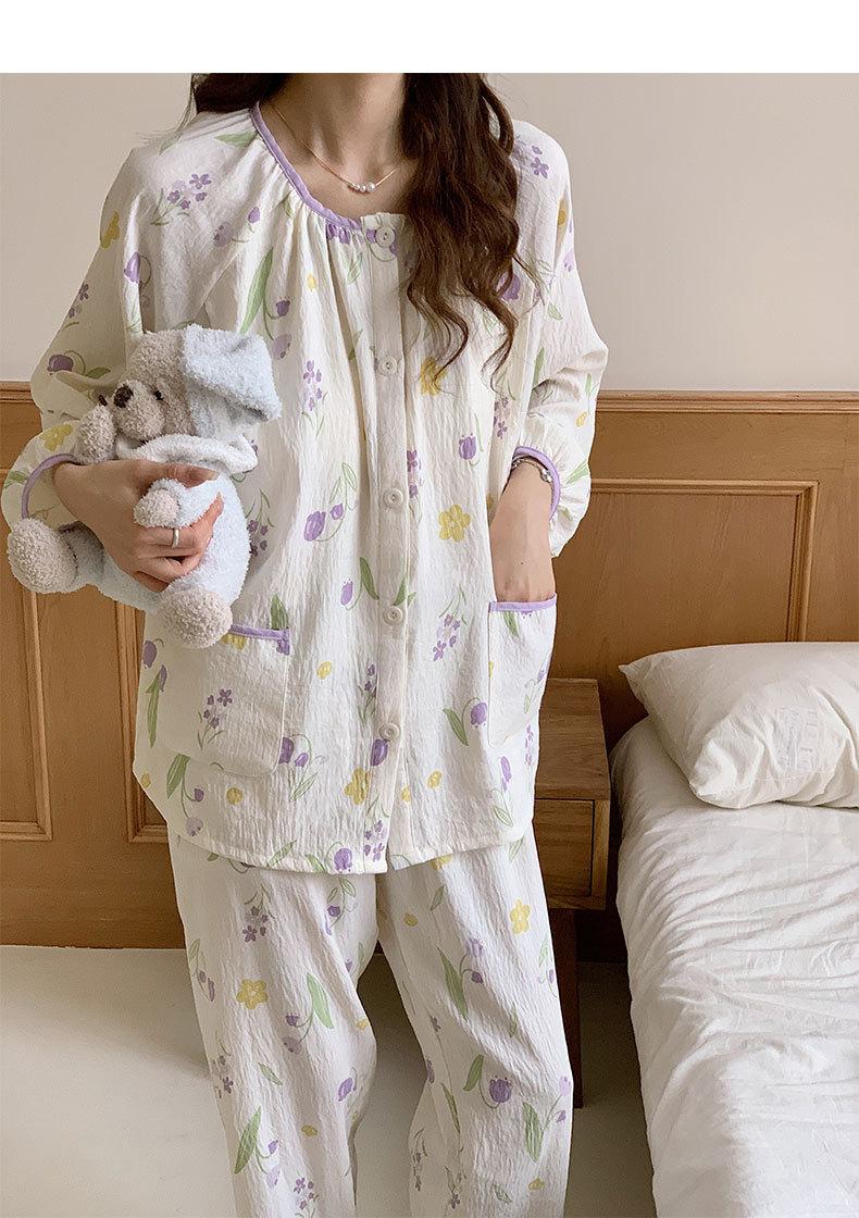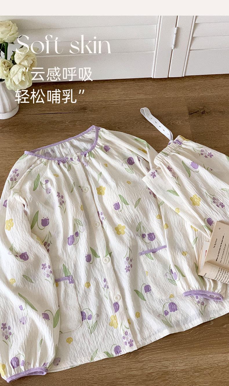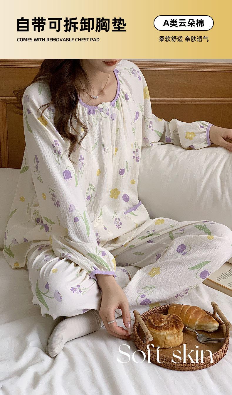 Happy Moon Venta al por Mayor Clase A Traje de Luna Verano Algodón Nube Fino con Almohadilla para el Pecho Mujeres Embarazadas Postparto Lactancia Traje para el Hogar