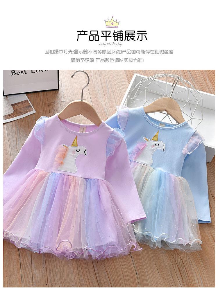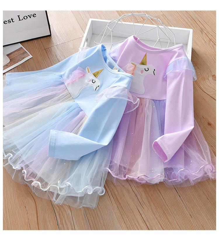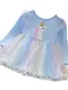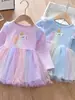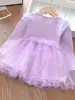 Vestido para niñas 2024, nuevo vestido de princesa occidental, estilo coreano, para niñas, primavera y otoño, de malla, vestido de manga larga para bebés y niños.
