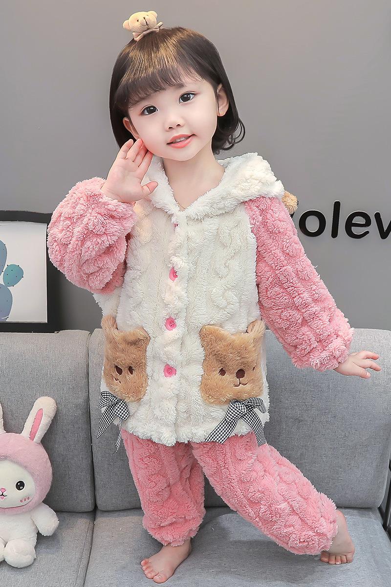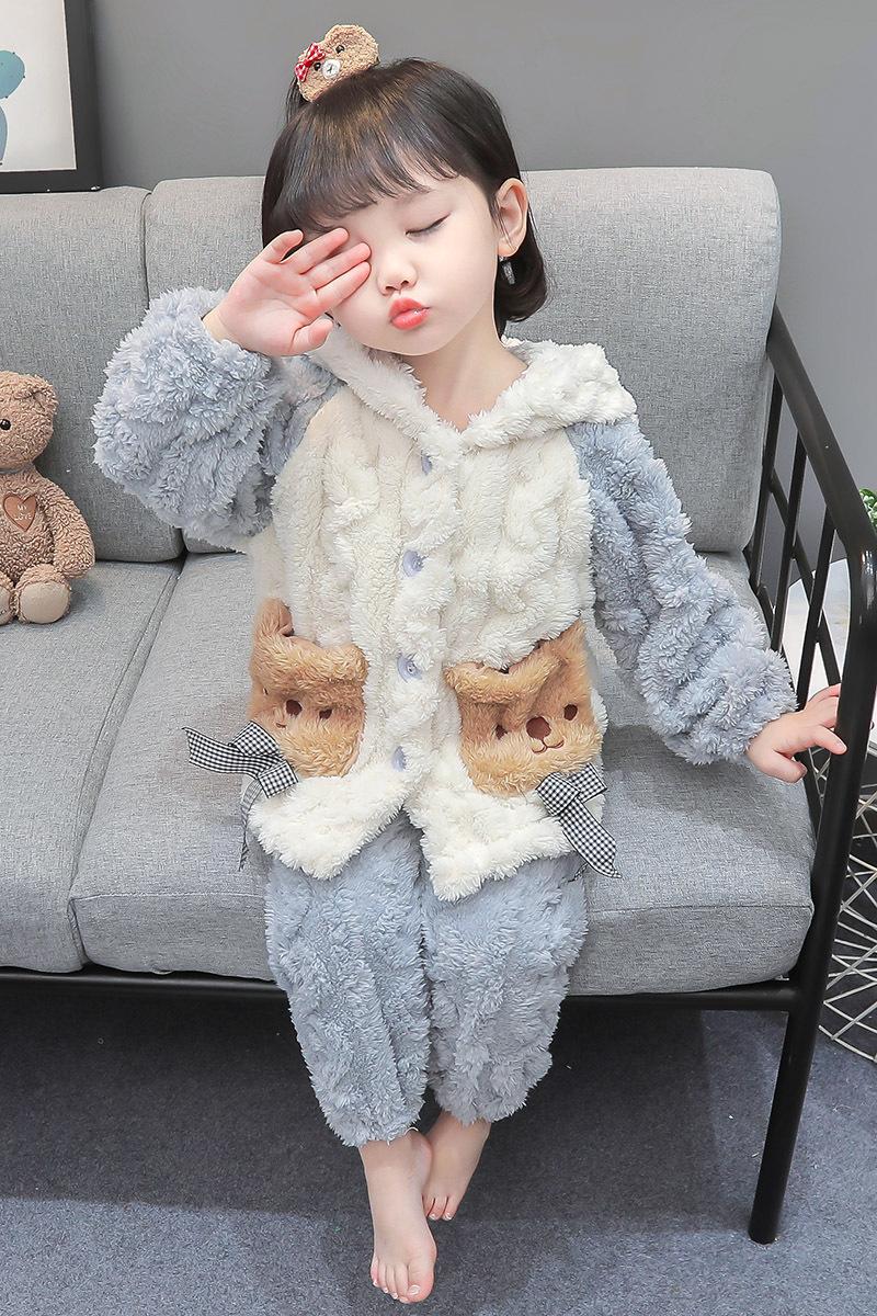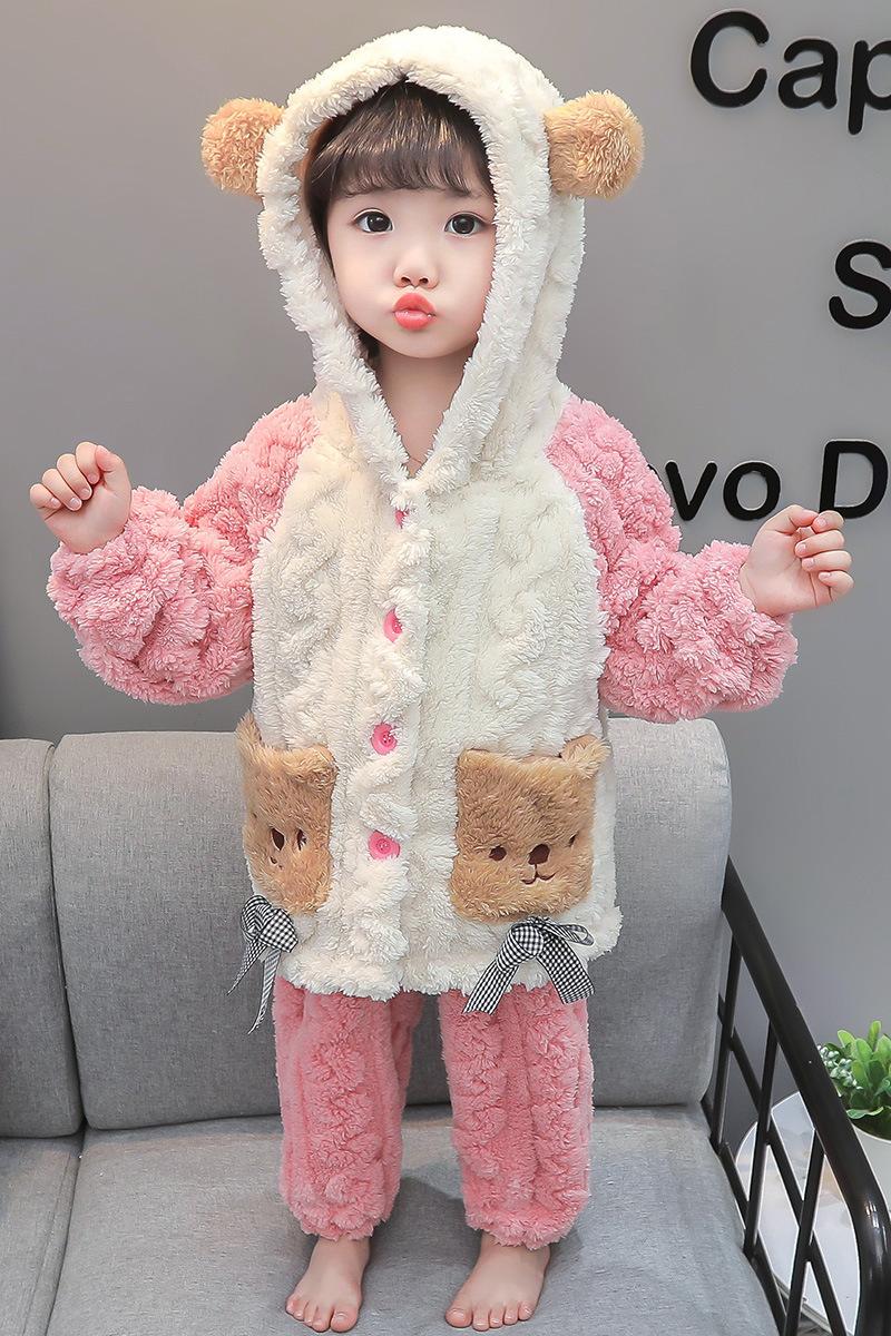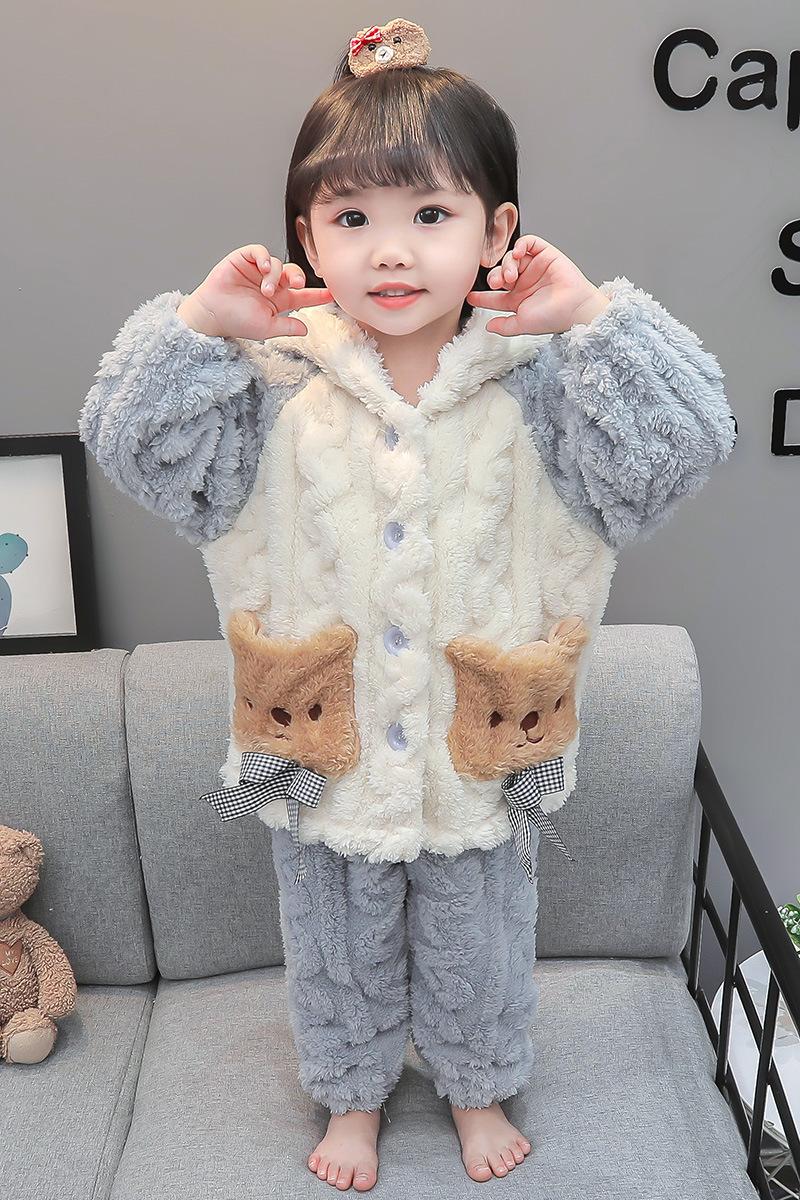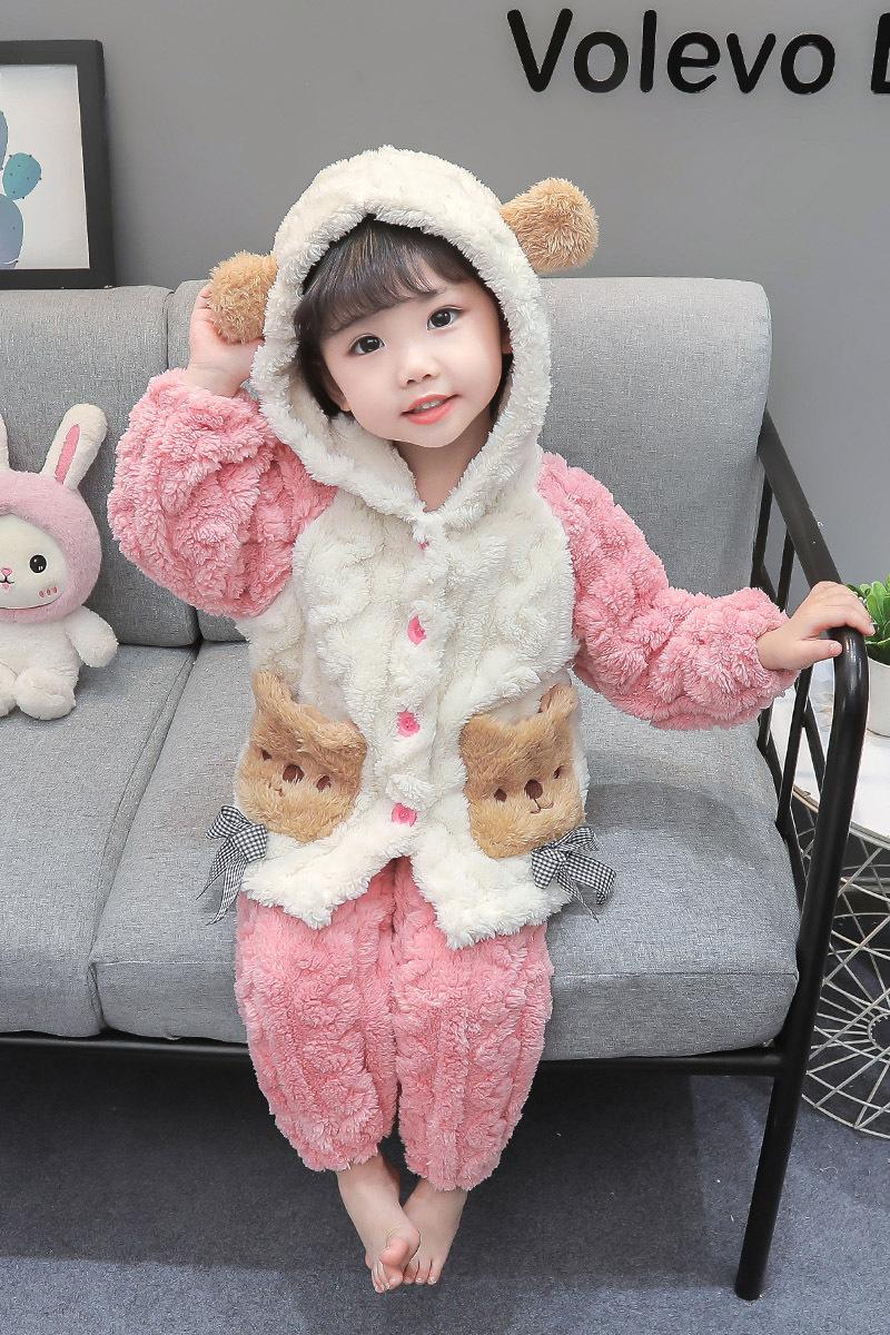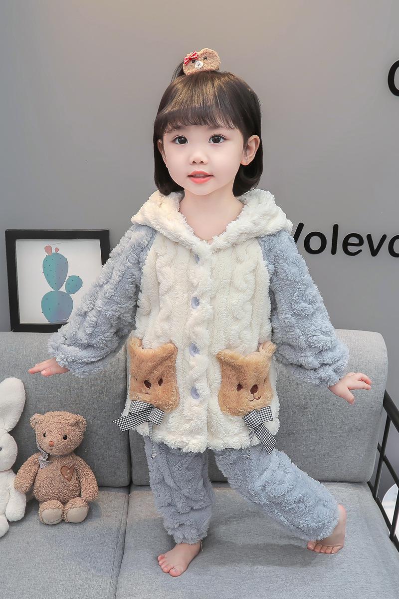 Pijamas para niños Franela Otoño e Invierno Niños y Niñas Forro Polar Coral Engrosado Cálido Dibujos Animados Lindo Estilo Extranjero Ropa para el Hogar