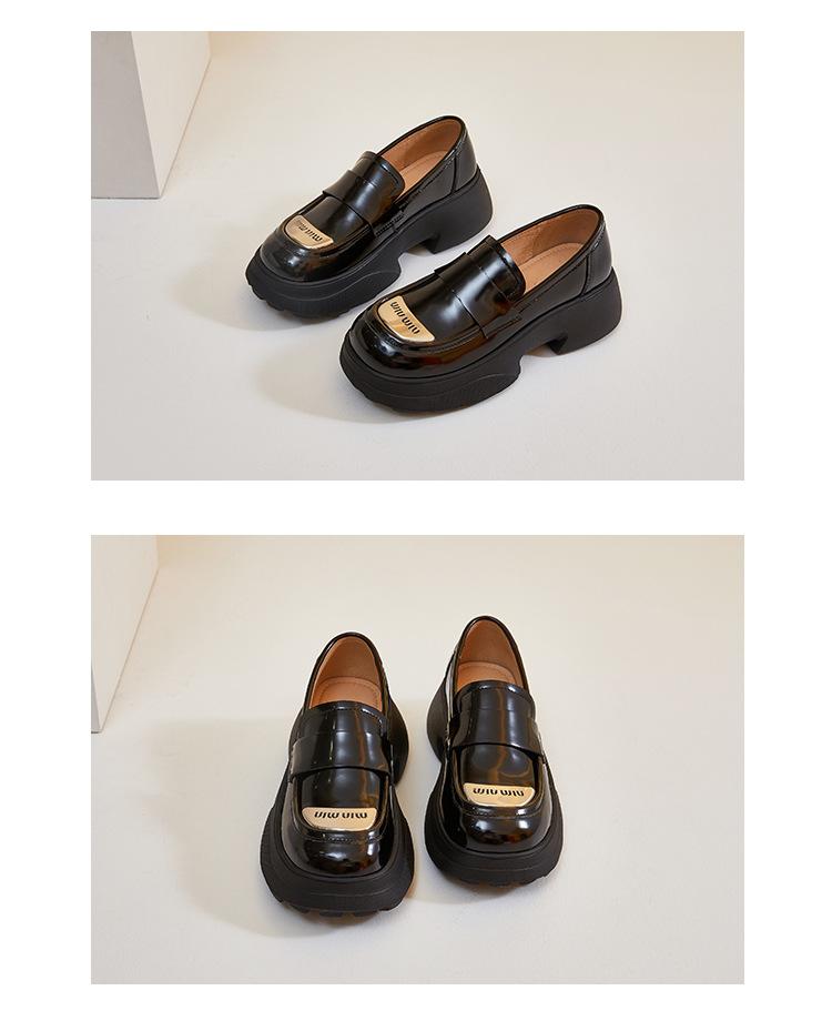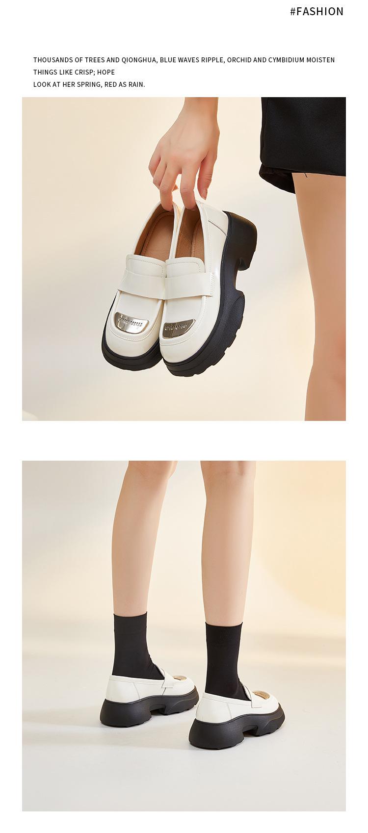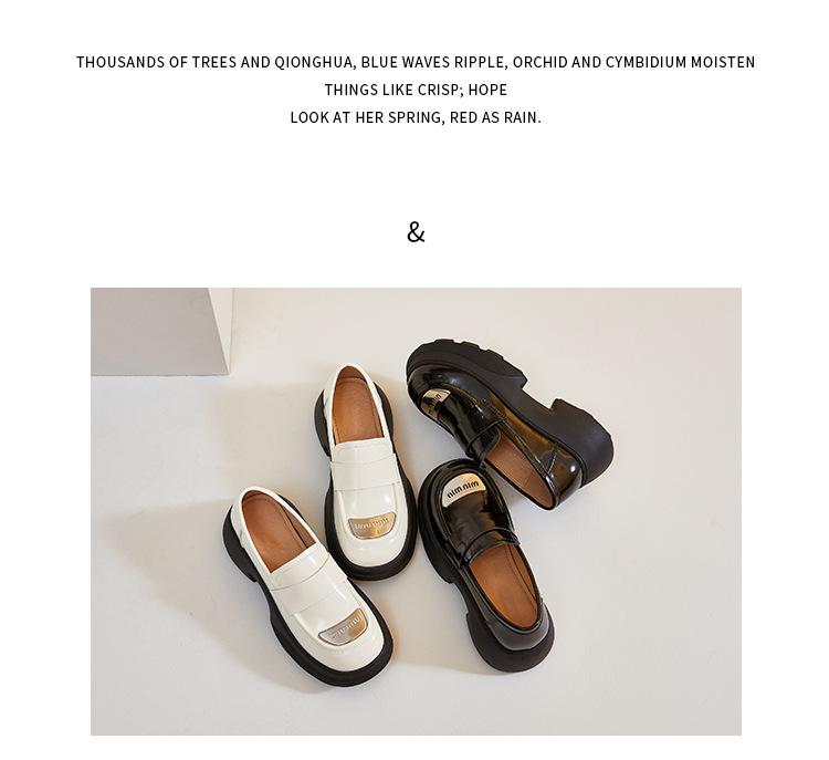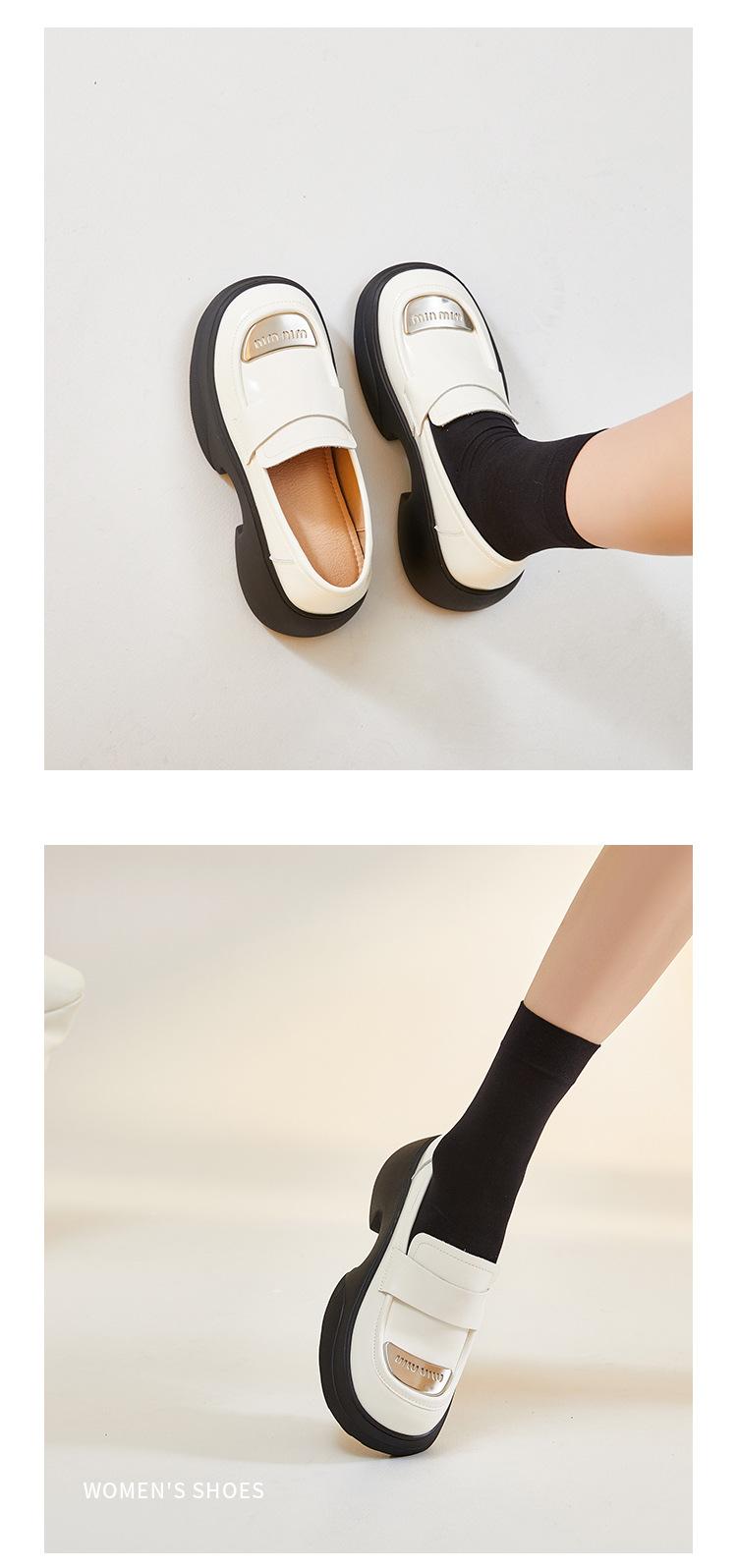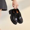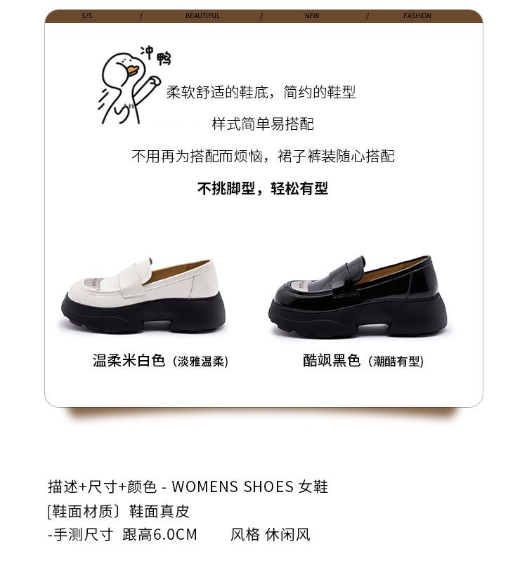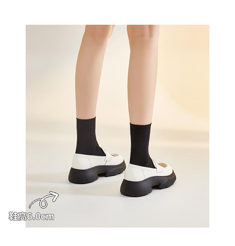 Mocasines de plataforma de cuero genuino para mujer, nuevos zapatos de cuero negro ligeros retro de estilo británico 2023, zapatos de mujer con aumento de altura.