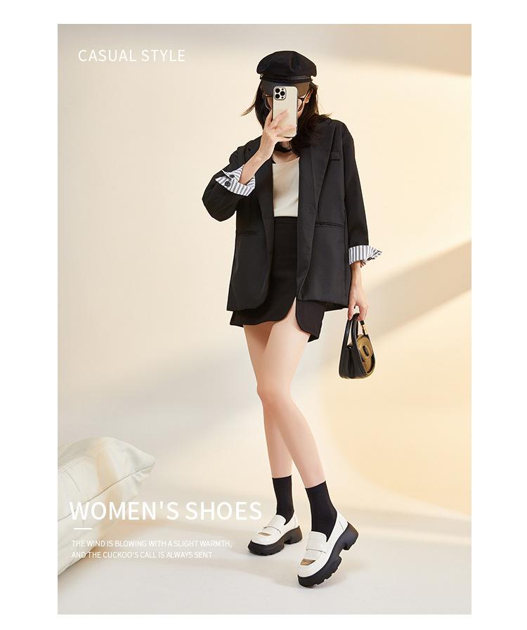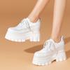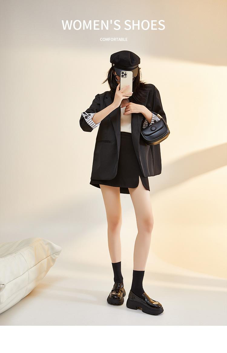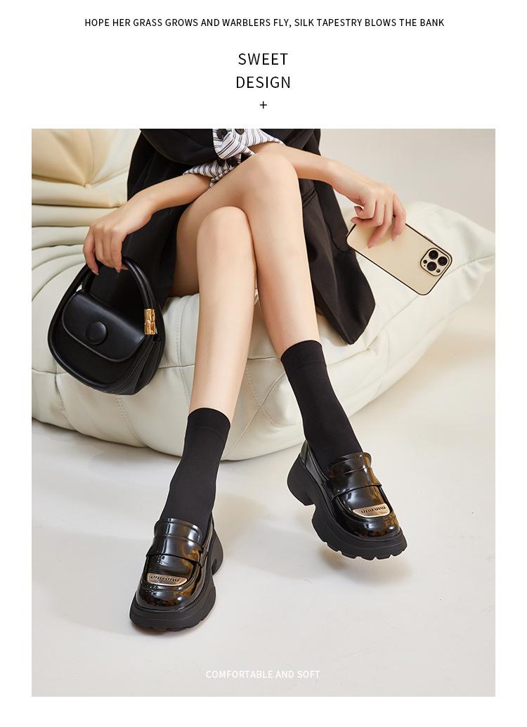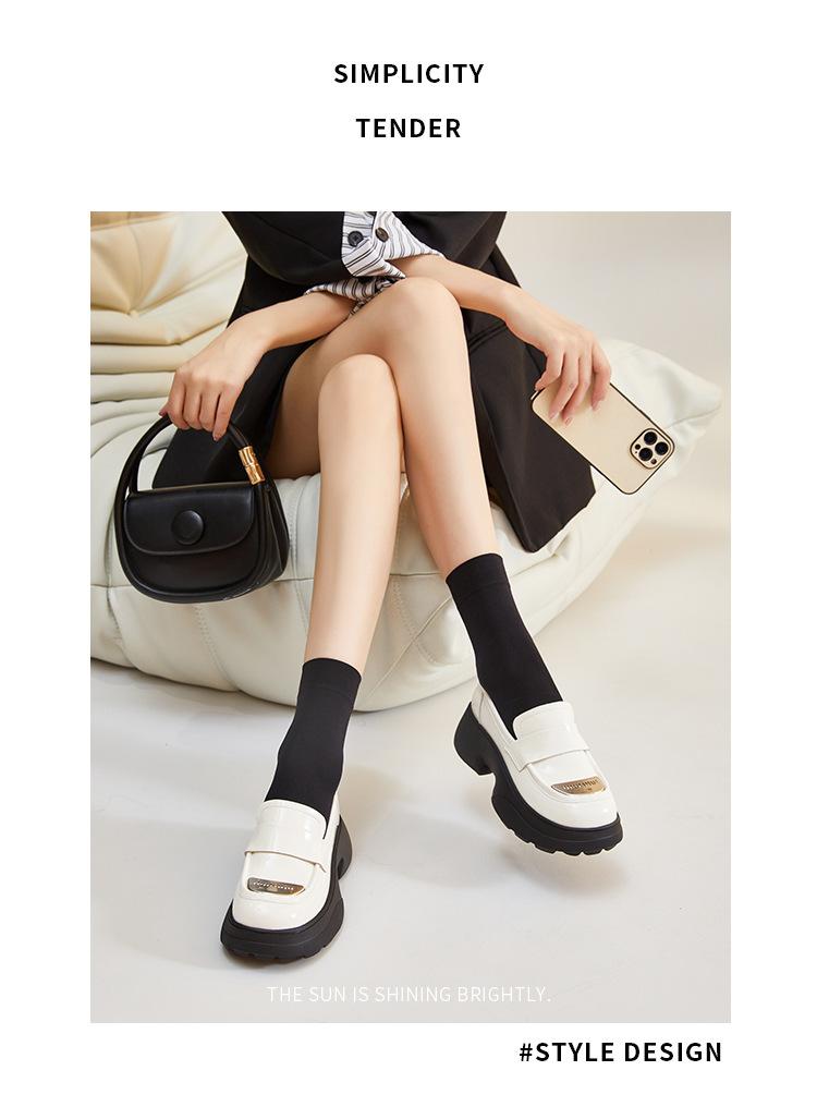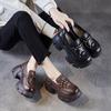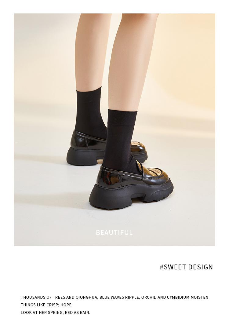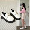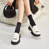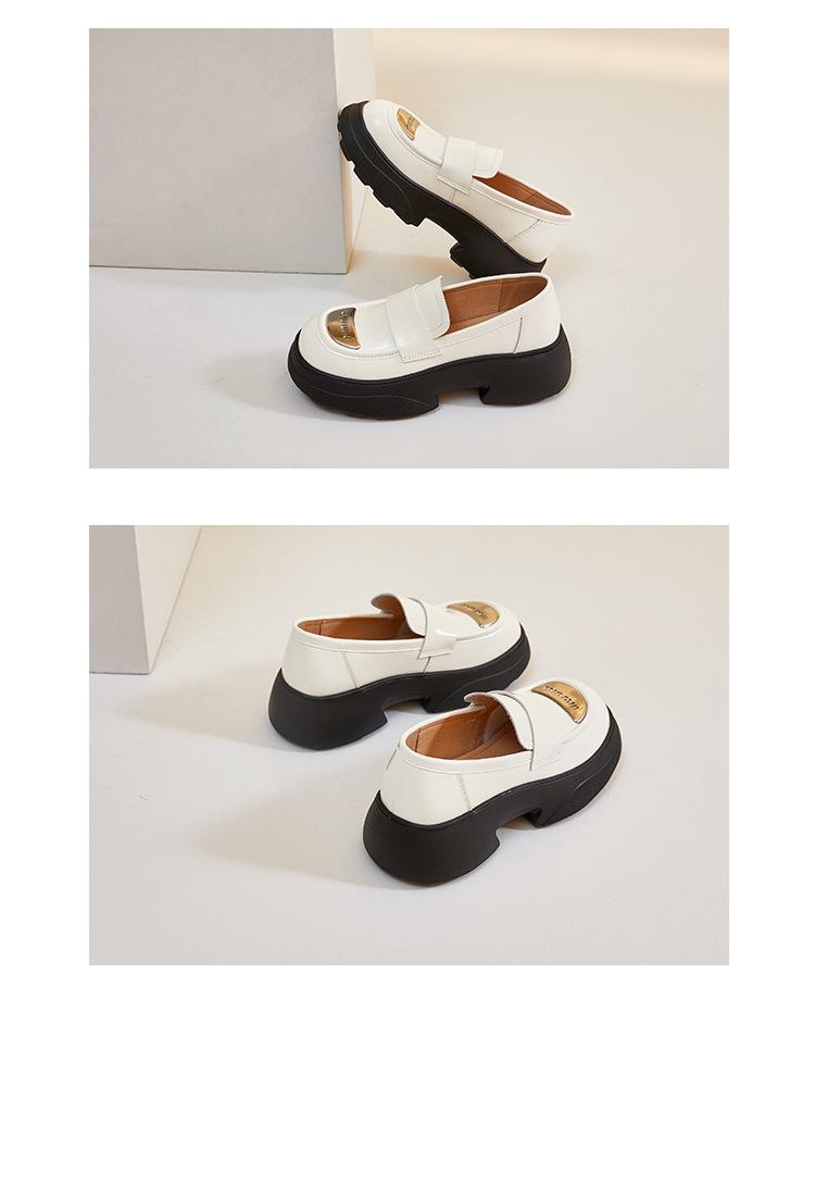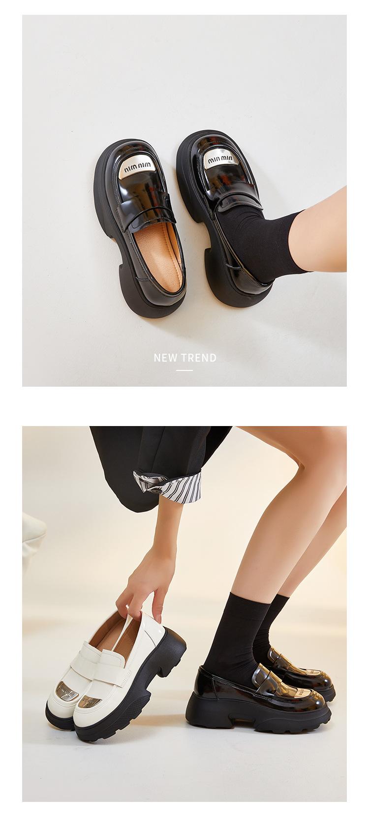 Mocasines de plataforma de cuero genuino para mujer, nuevos zapatos de cuero negro ligeros retro de estilo británico 2023, zapatos de mujer con aumento de altura.