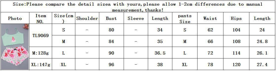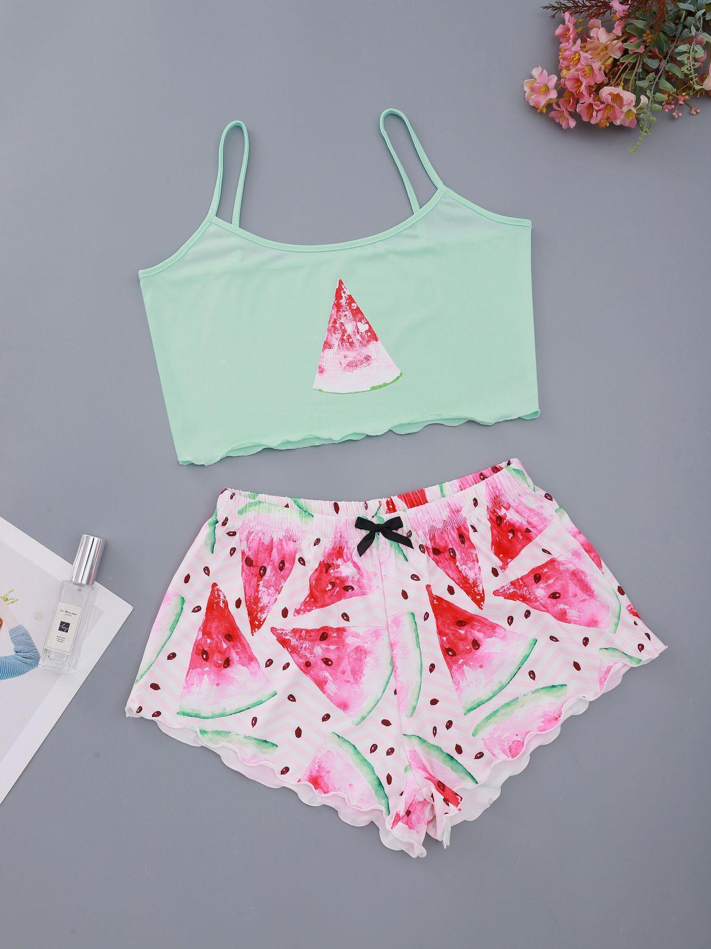 Pijama corto de verano con tirantes finos y estampado de sandía, ropa de casa, TL9069