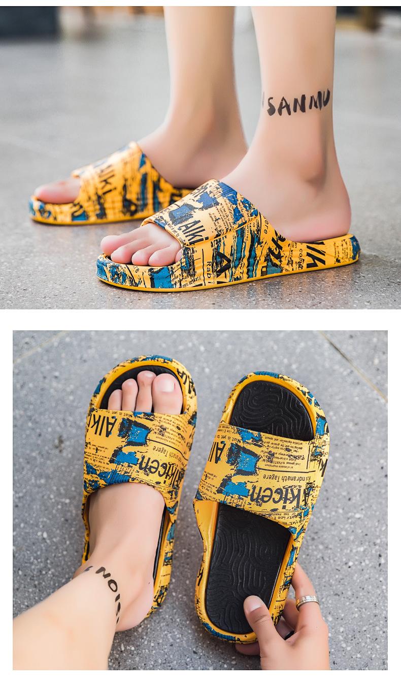 Zapatillas de EVA con estampado a color para amantes de los hombres, sandalias casuales, zapatillas deportivas, zapatillas de playa para el hogar, zapatillas con palabras integradas